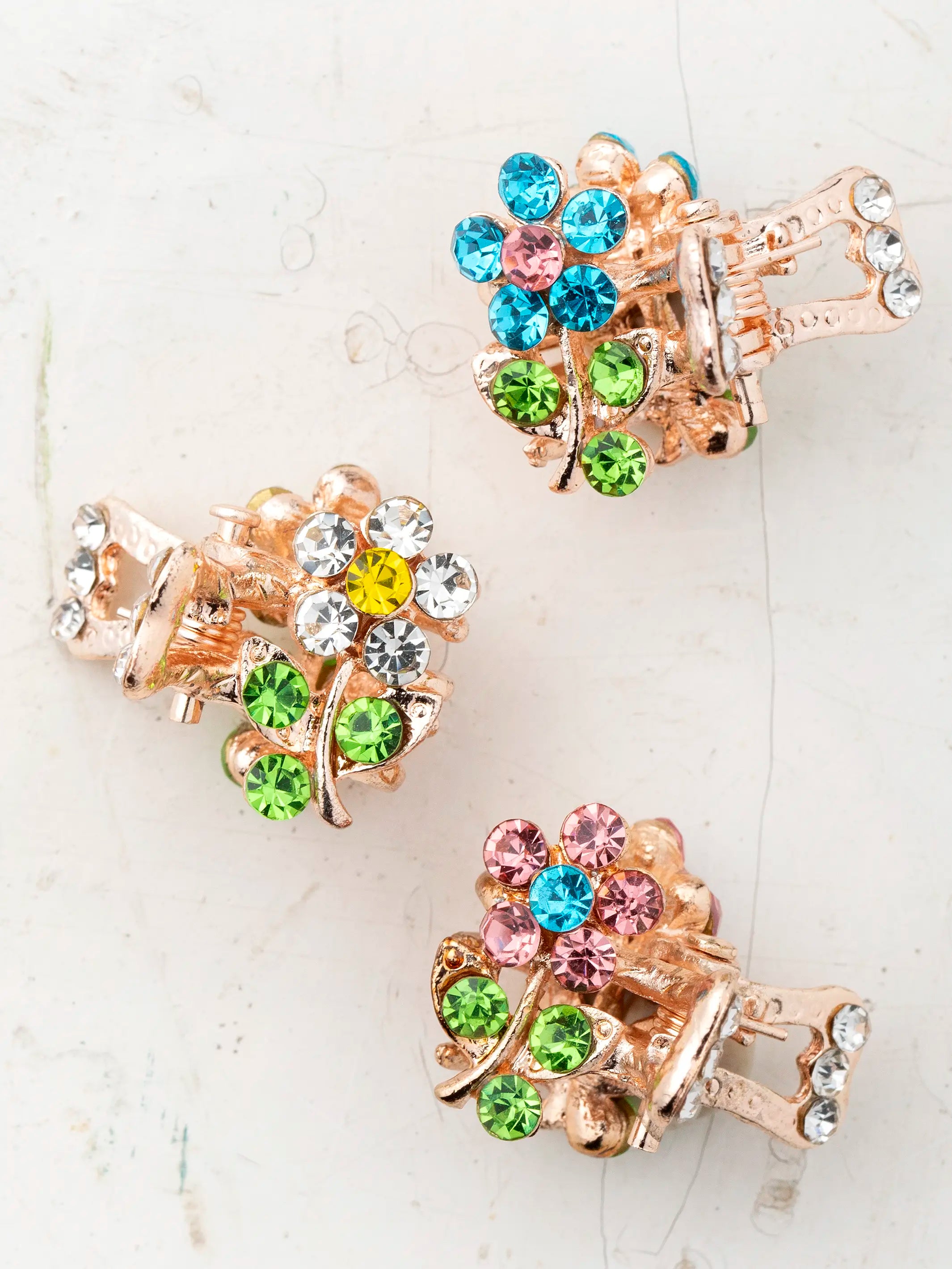 Rhinestone Daisy Claw Clips, Set of 3 - Multicolored