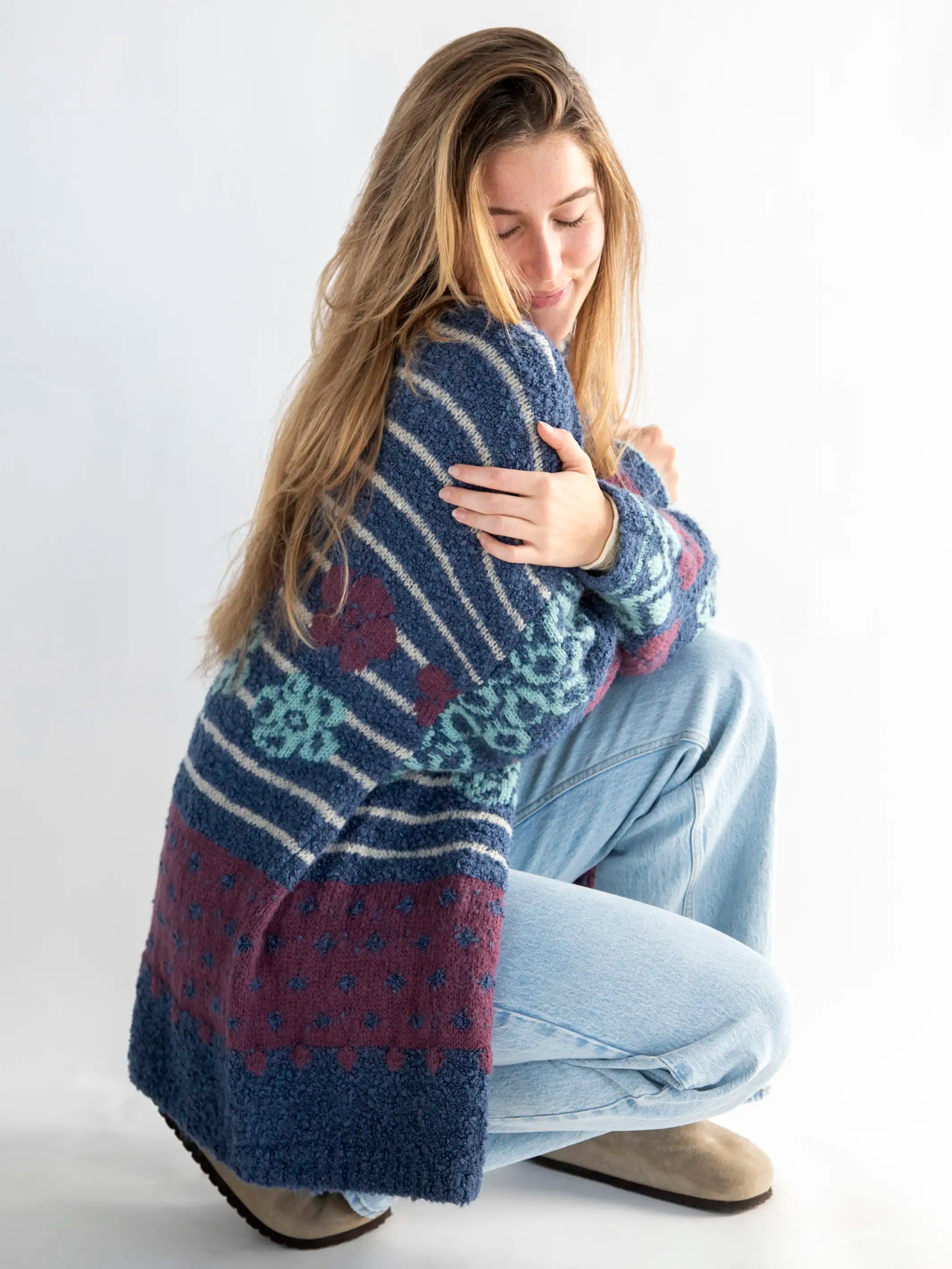Oversized Striped Sweatshirt - Cream Purple Stripes