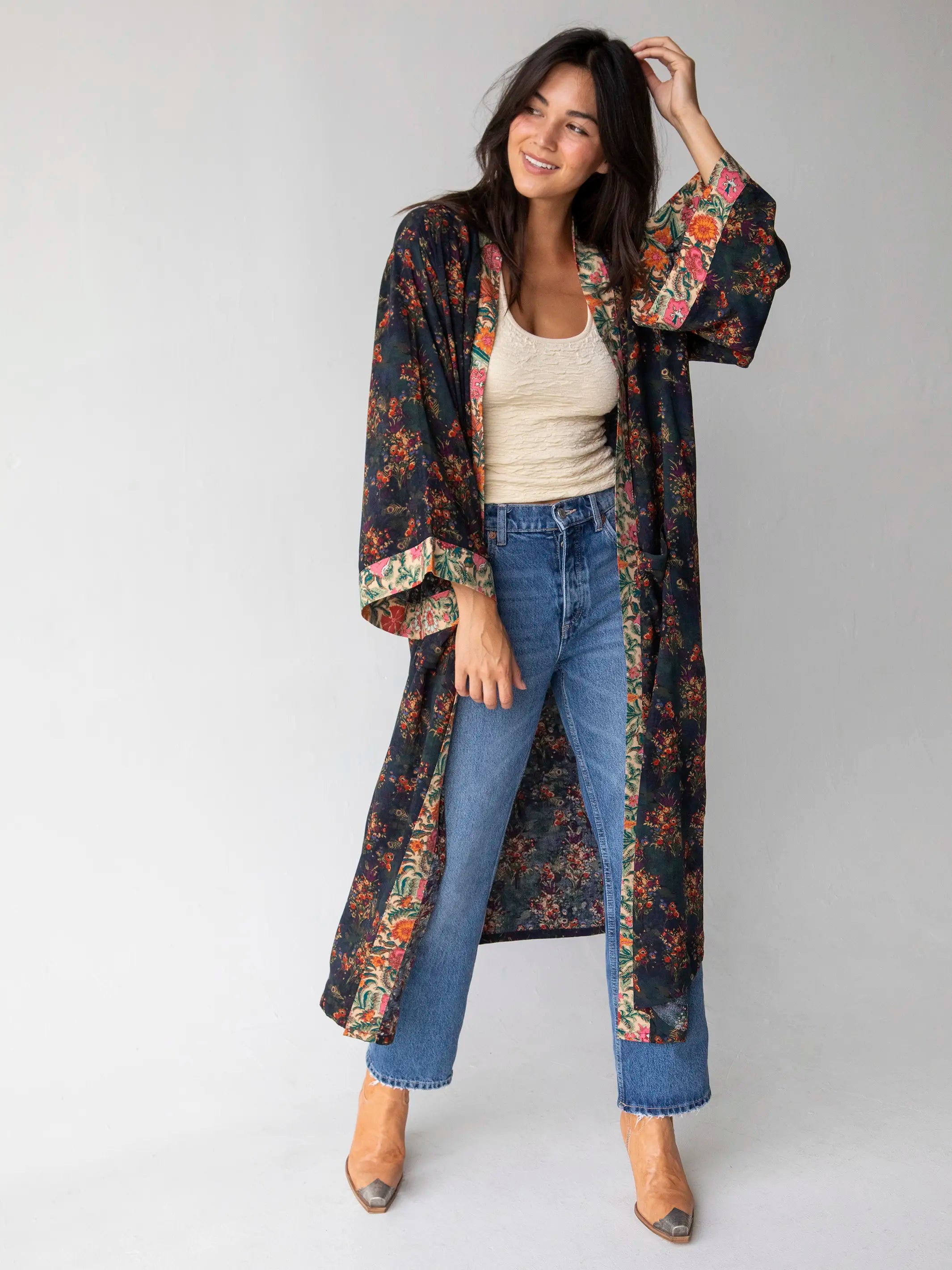Long Cozy Blanket Kimono - Vintage Patchwork
