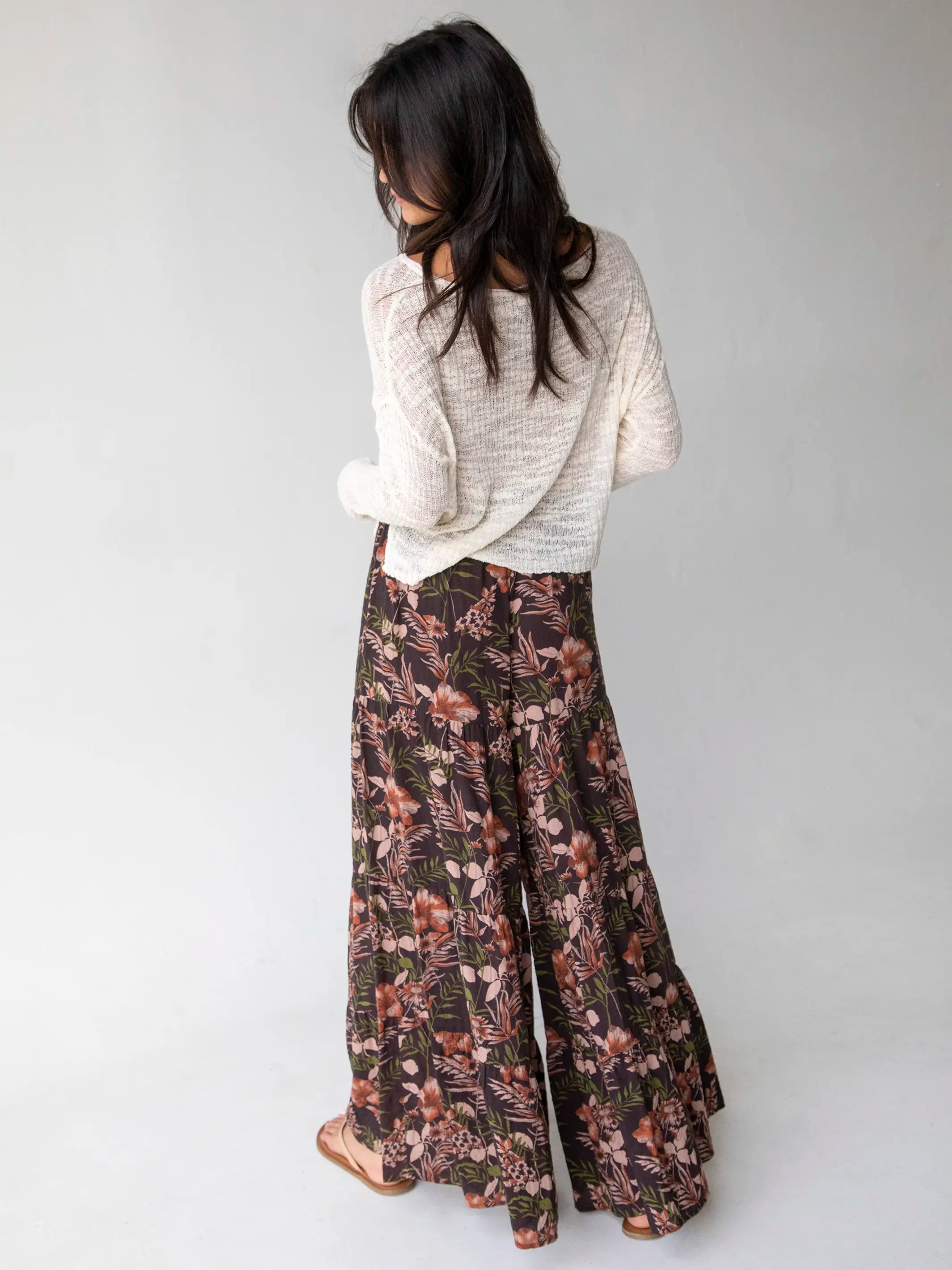 Patti Palazzo Pant - Brown Orange Hibiscus