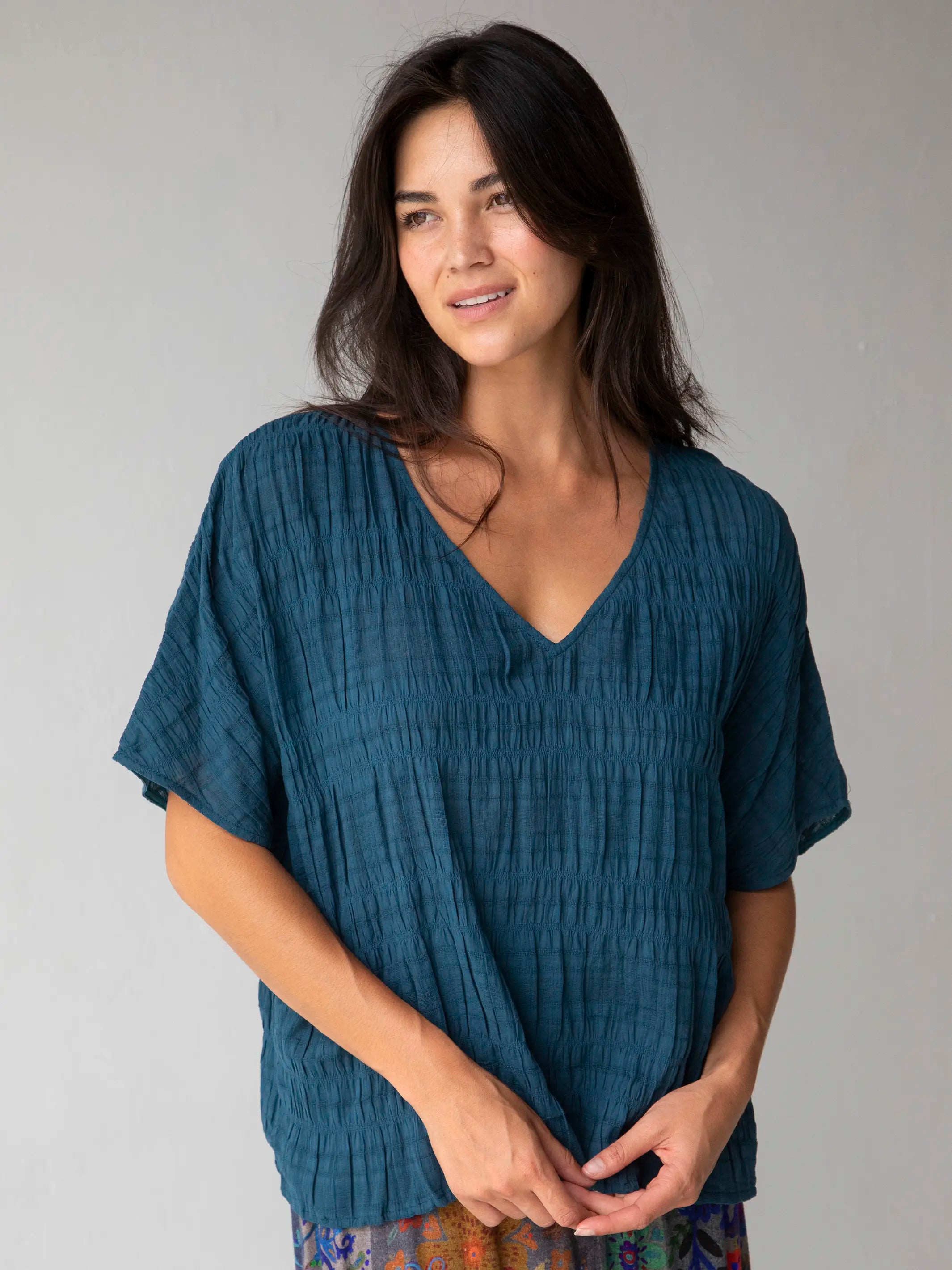 Juliana Mesh Smocked Top - Dark Floral Garden