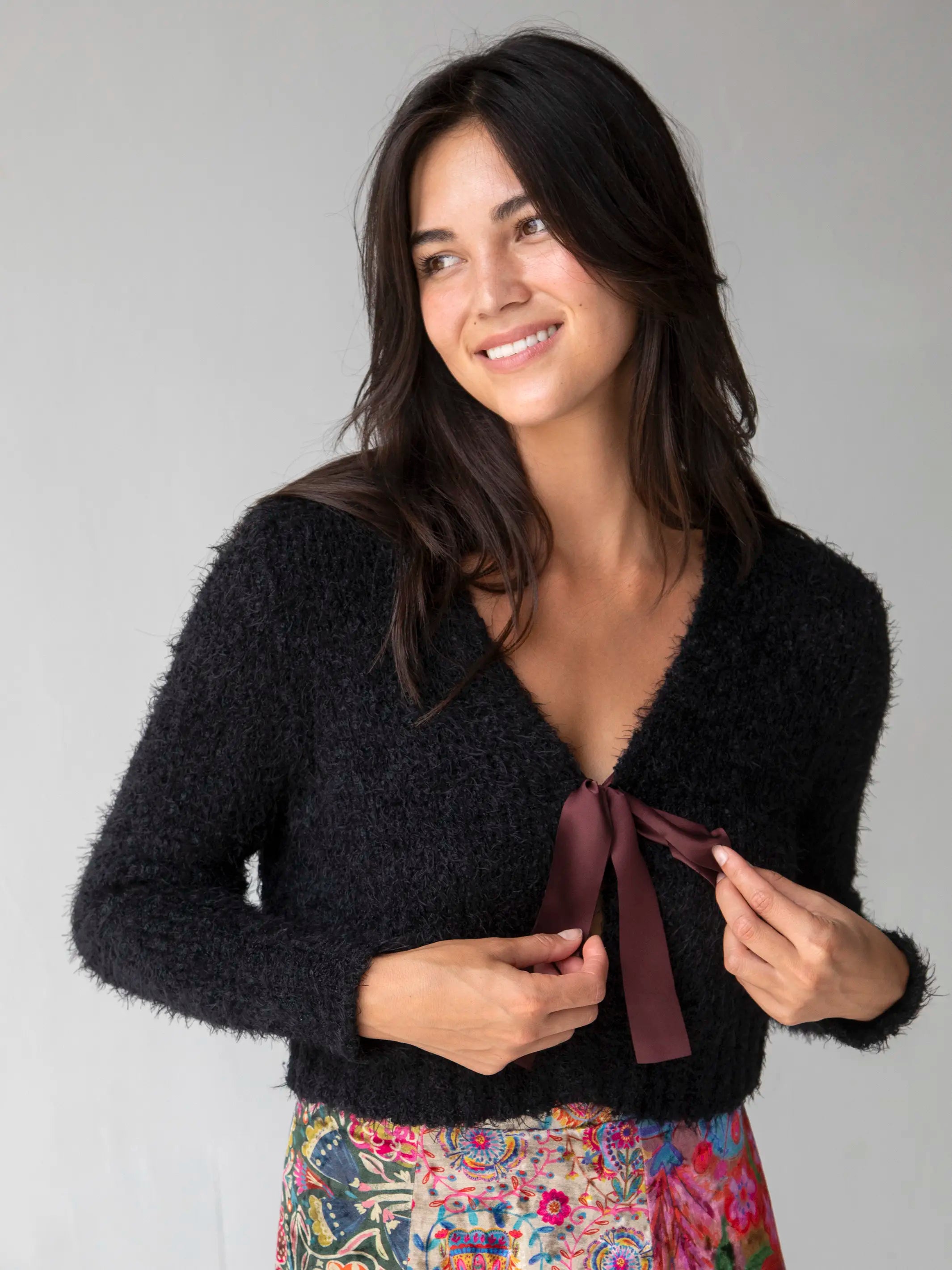 Oh So Soft Tie-Front Cardigan Sweater - Black