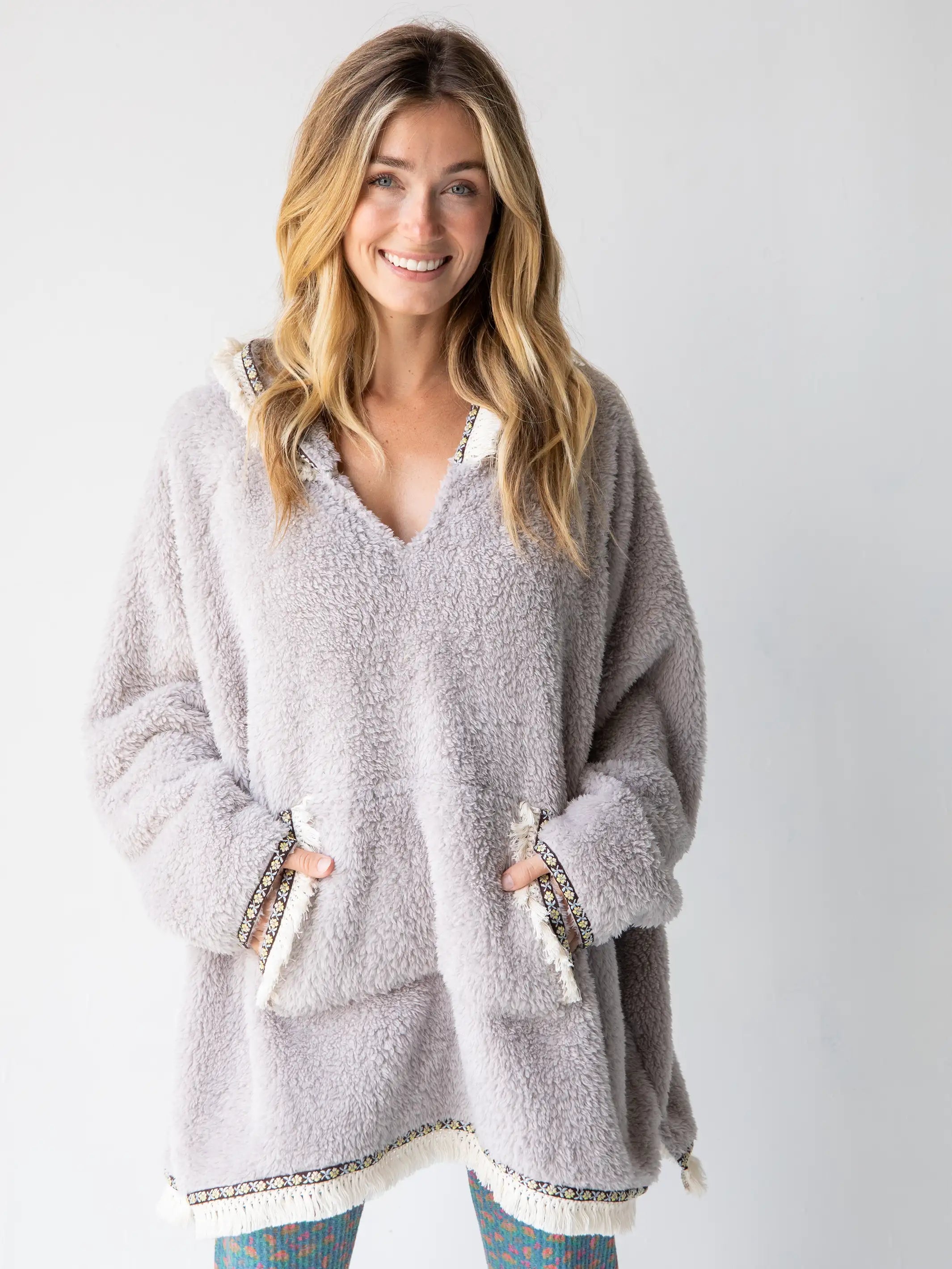 Aida Embroidered Thermal - Heather Grey Thankful & Grateful