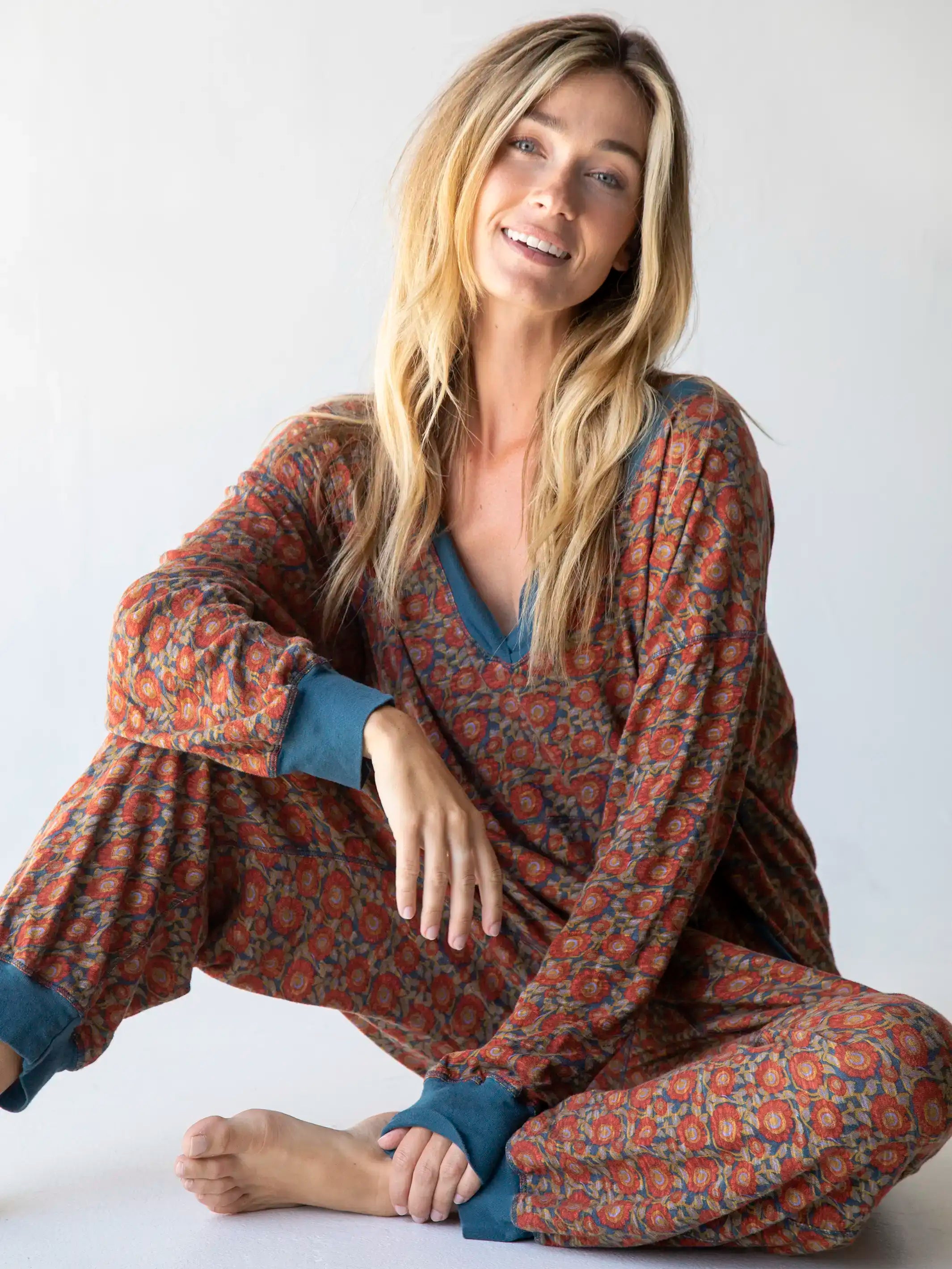 Johnnie Cotton Jumpsuit - Blue Red Vines
