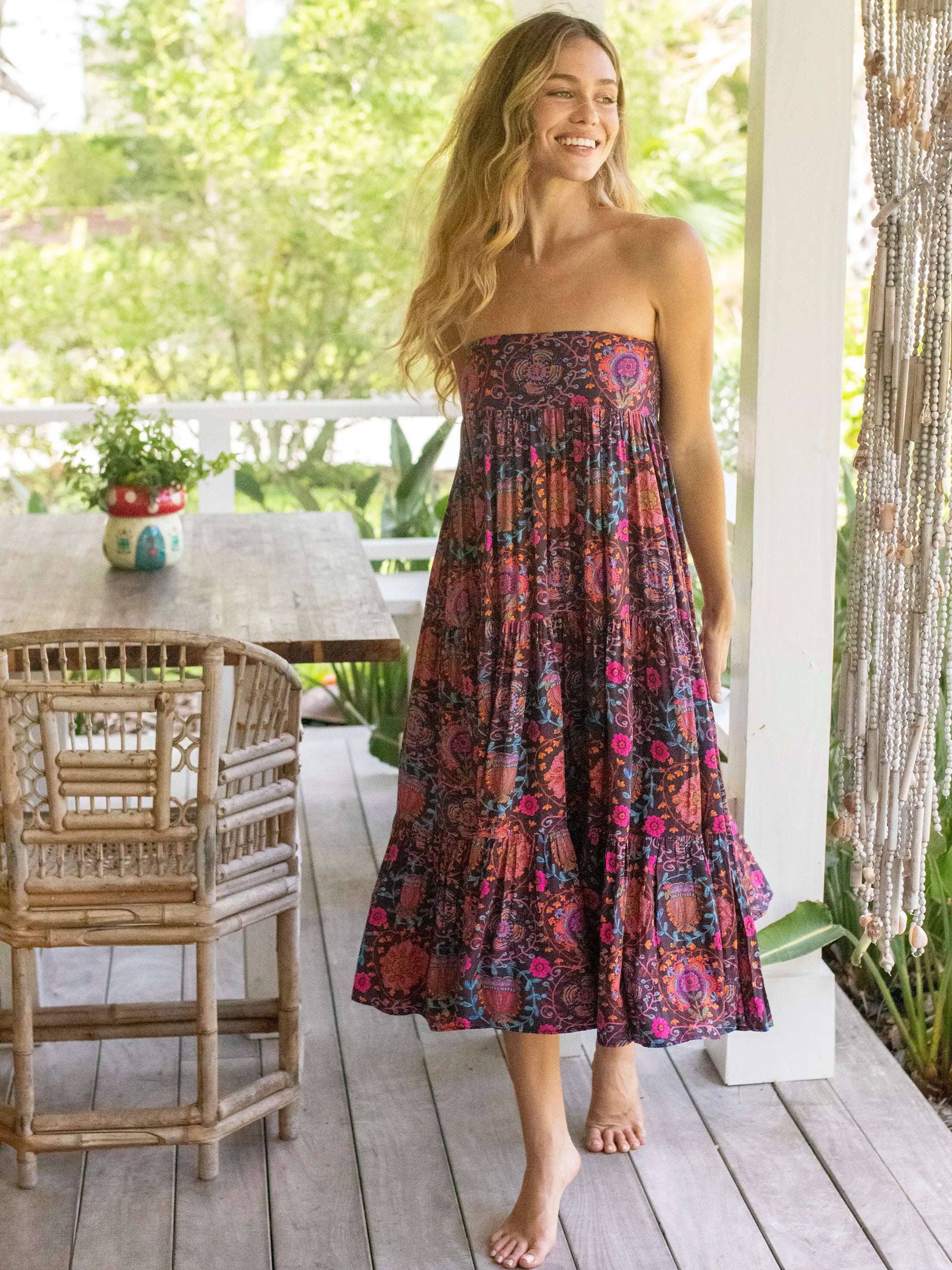 Flora Cotton Convertible Maxi Skirt - Brown Navy Floral