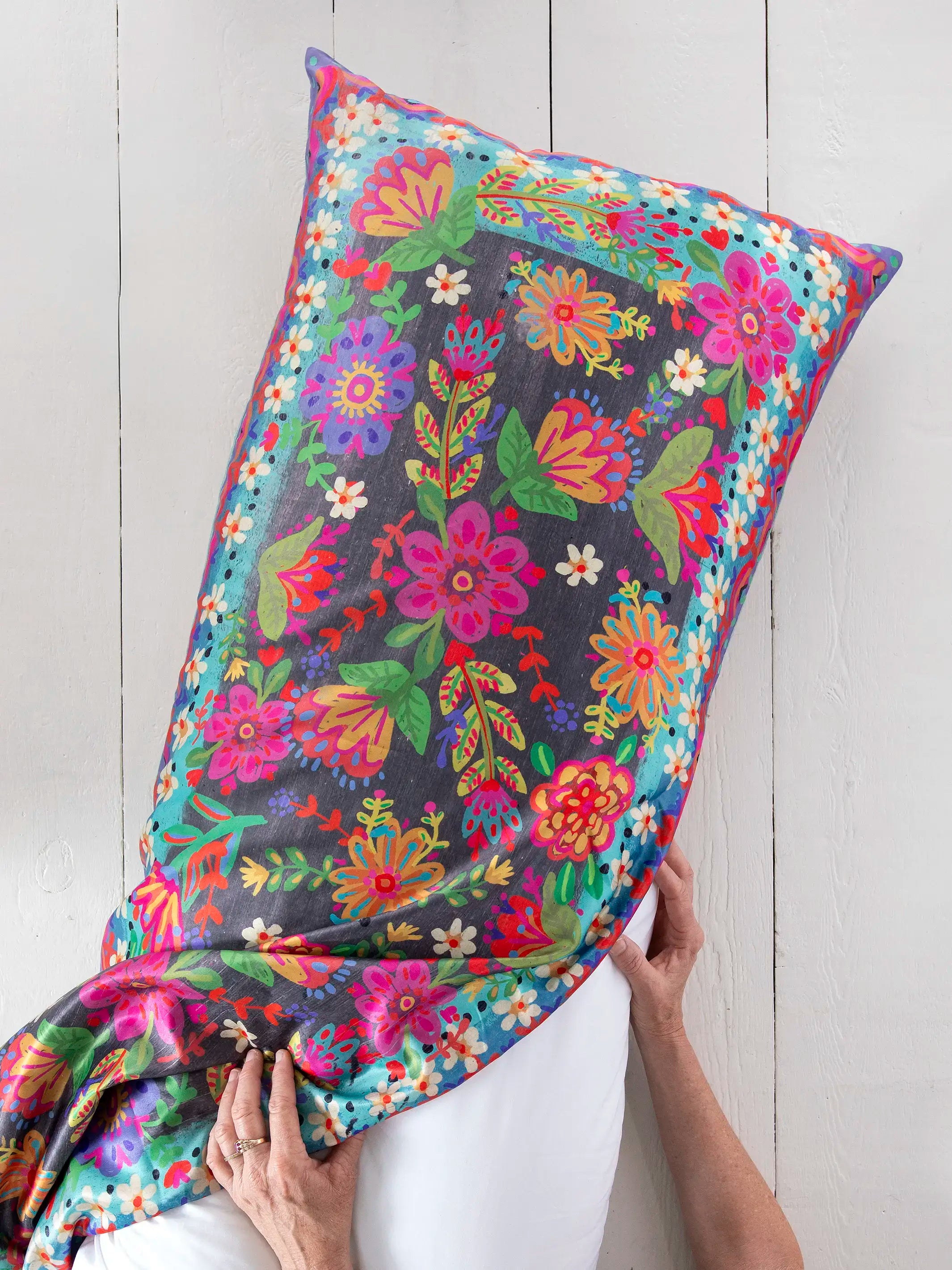 Satin Body Pillow Cover - Pink Daisy Borders