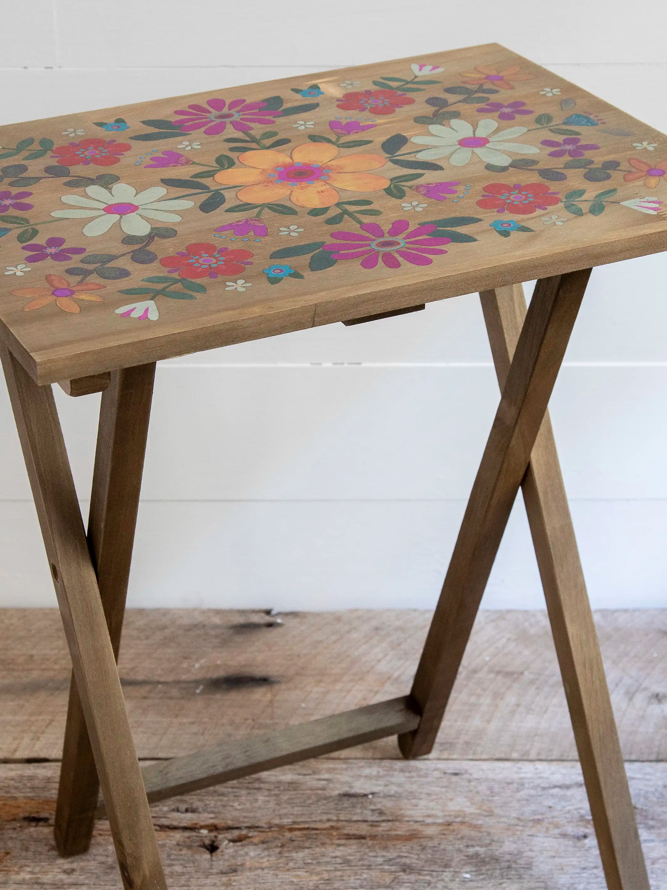Wooden TV Tray Table - Mustard Folk Flower