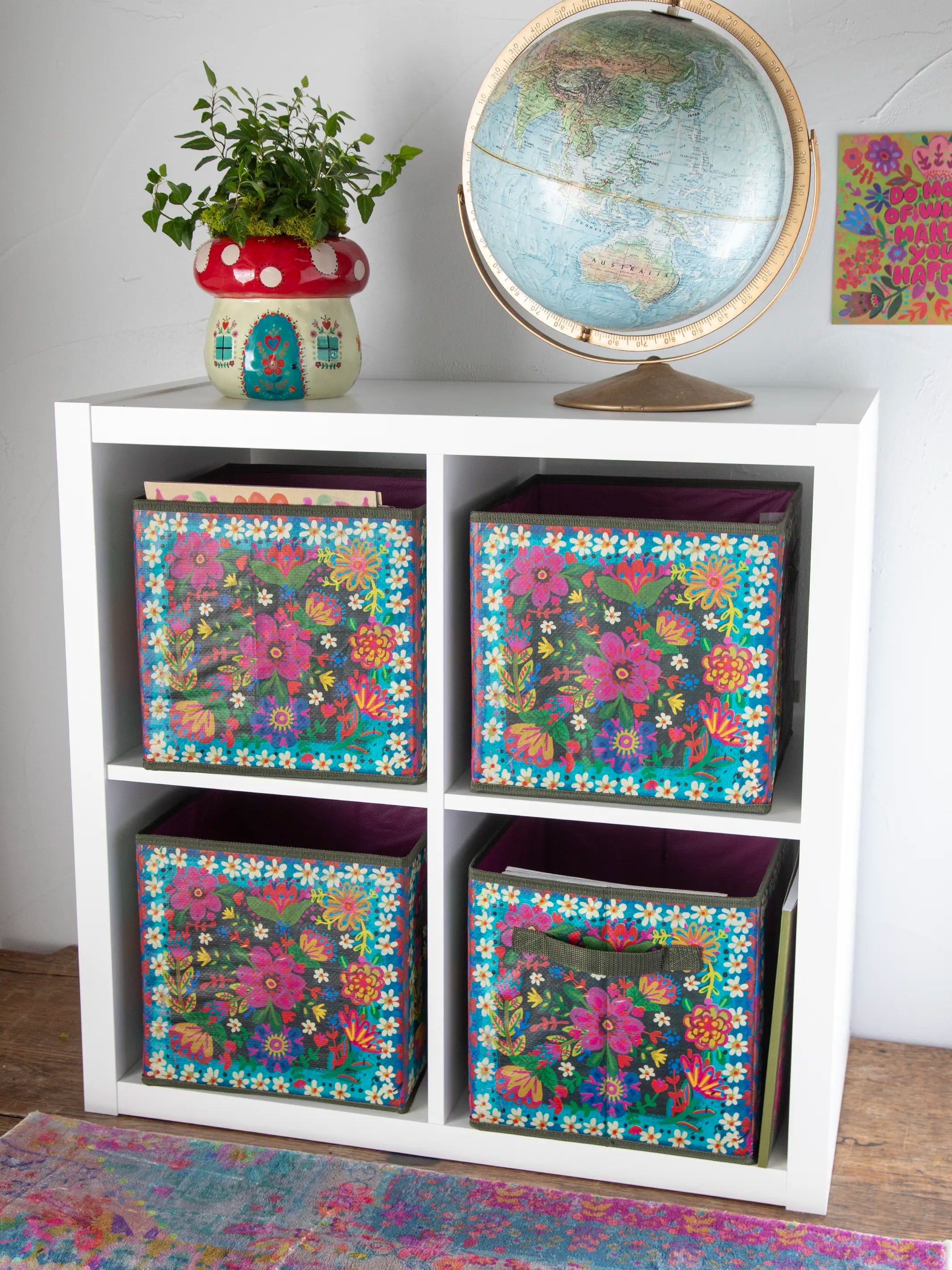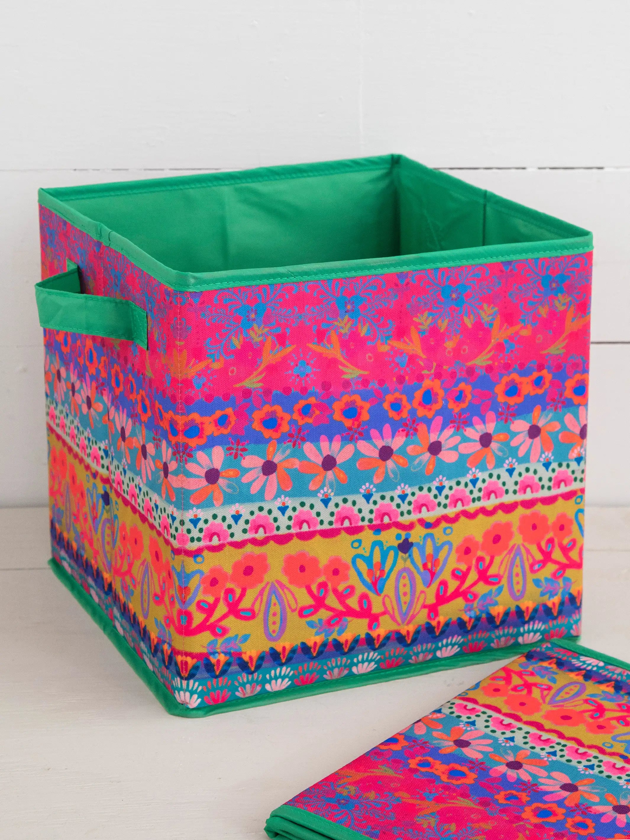 Collapsible Storage Cubes, Set of 2 - Floral Border