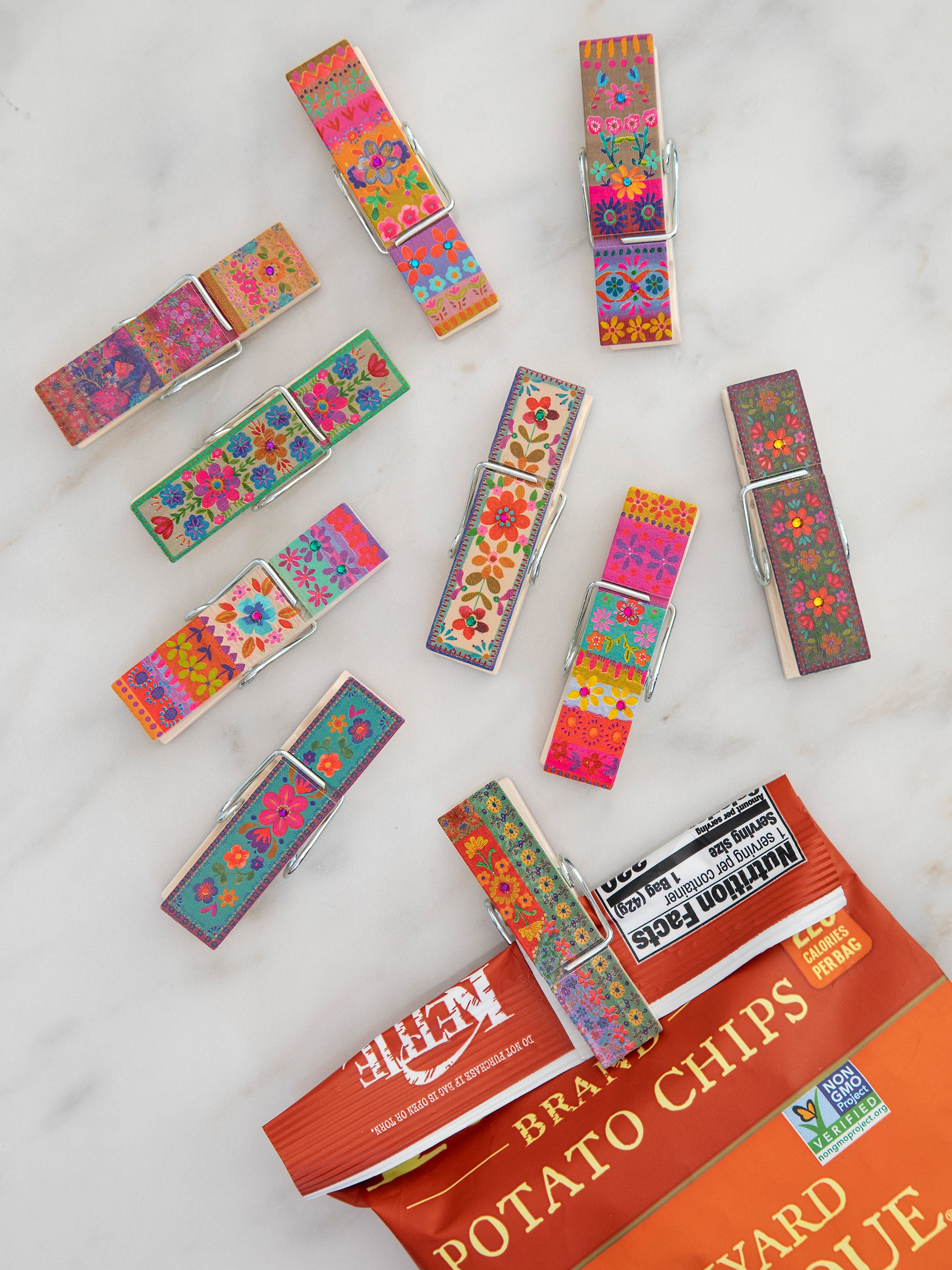Bag Clips, Set of 10 - Folk Borders