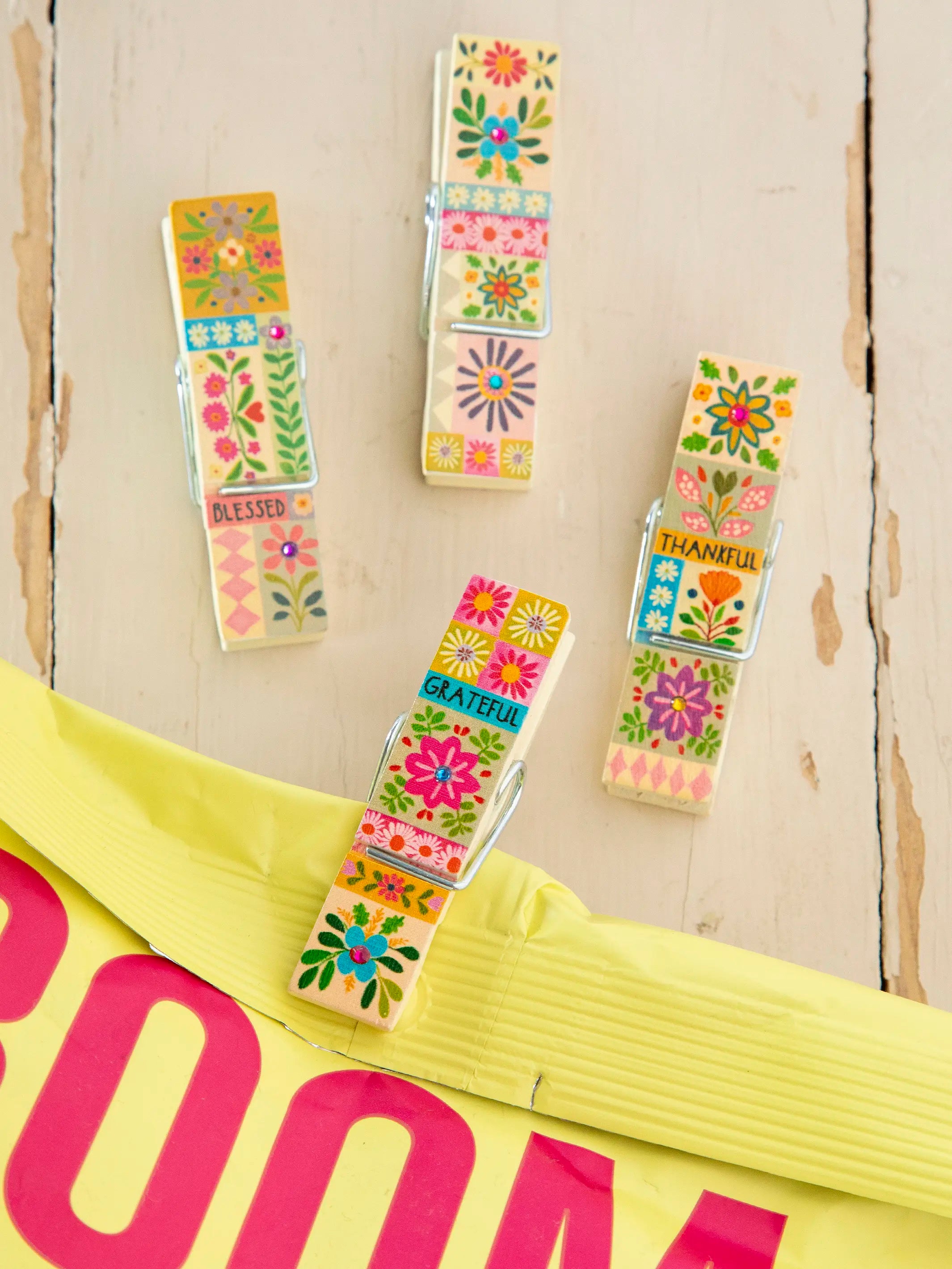 Bag Clips, Set of 4 - Thankful Grateful Blessed