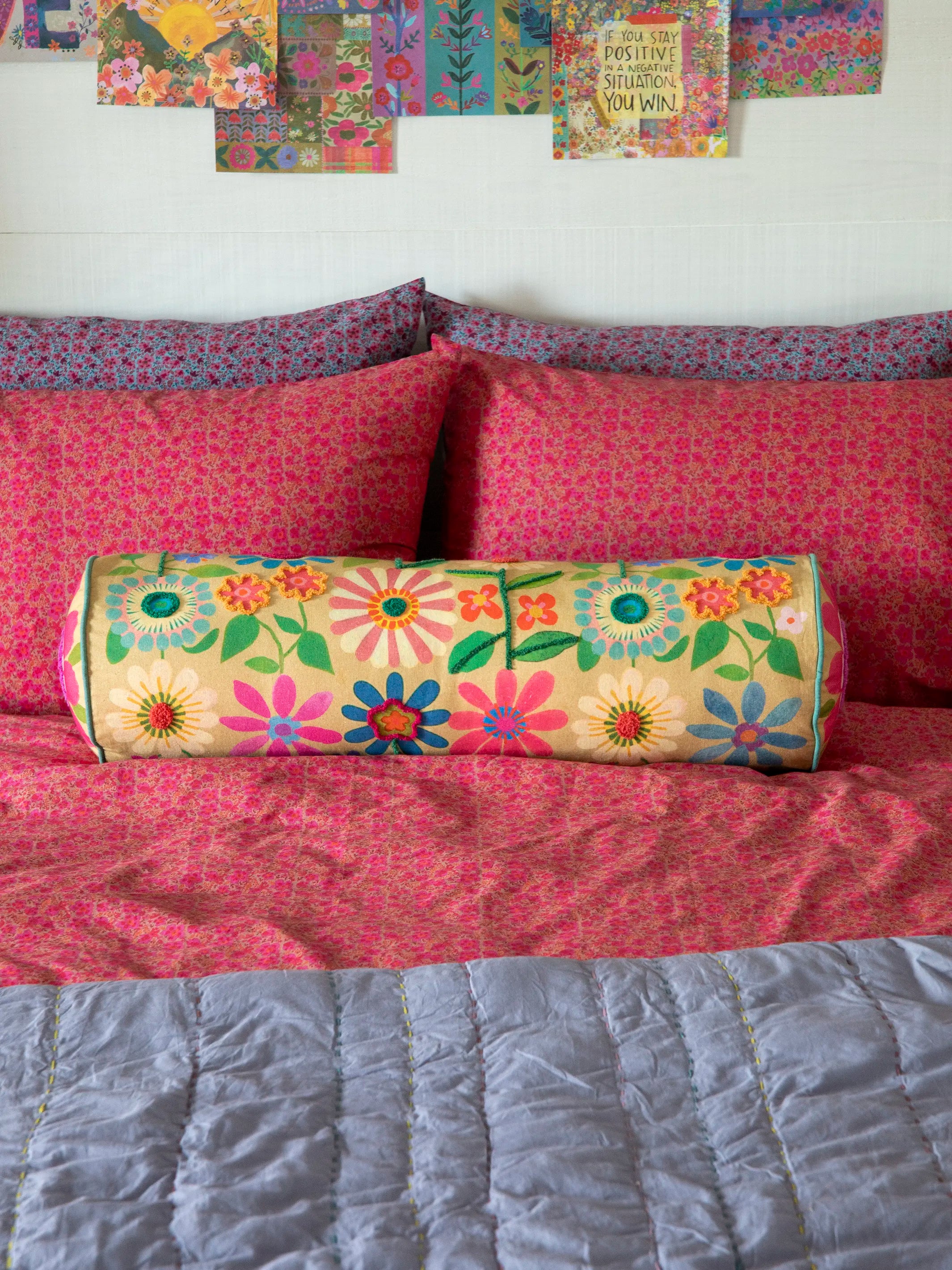 Tufted Bolster Pillow - Folk Flower
