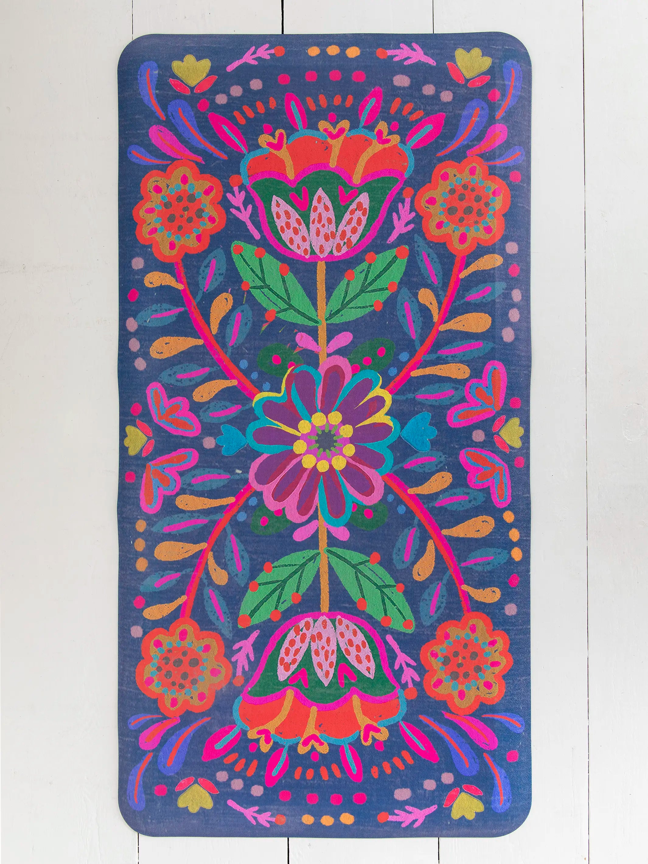Comfy Kitchen Standing Mat - Navy Folk Flower
