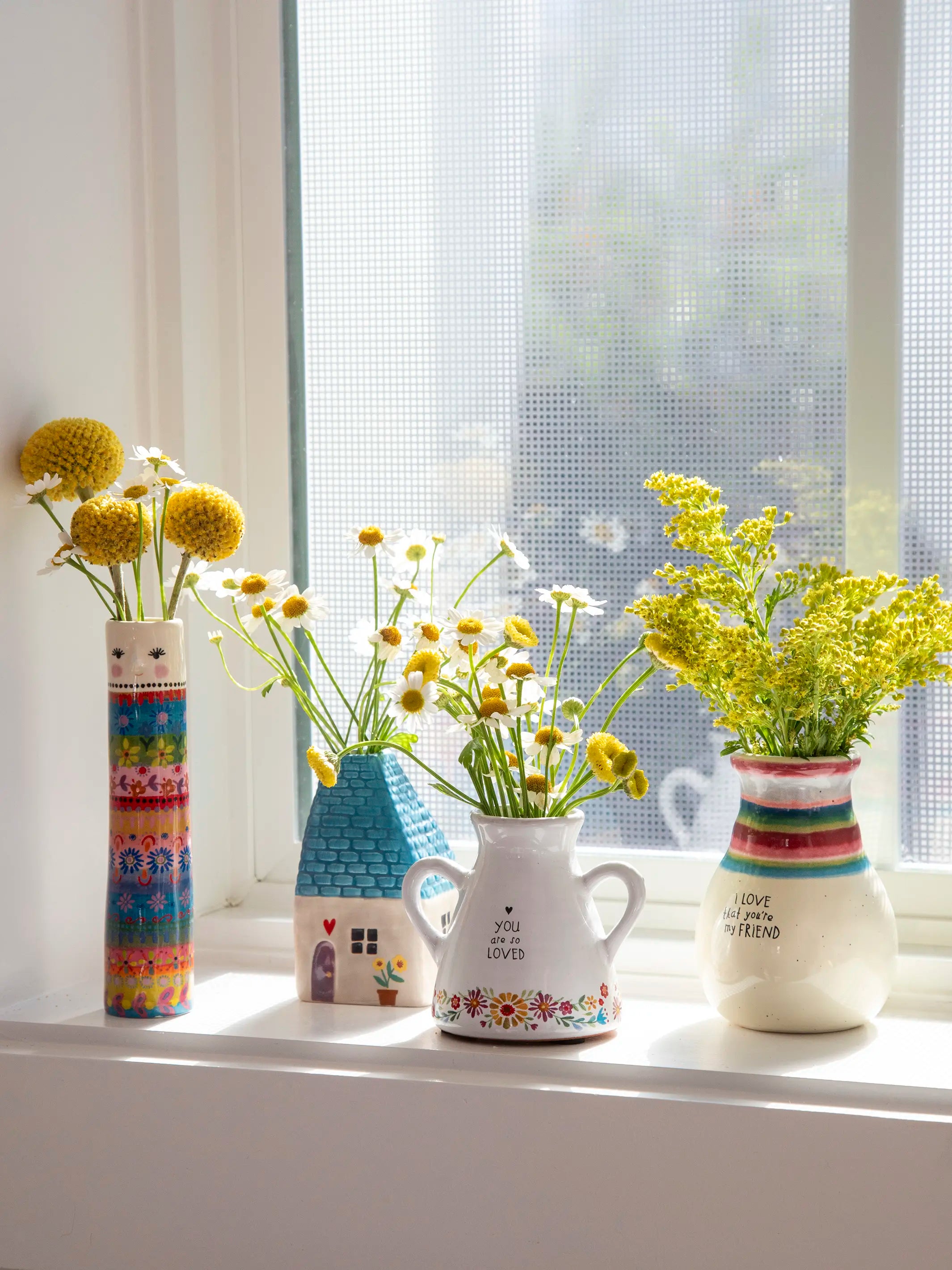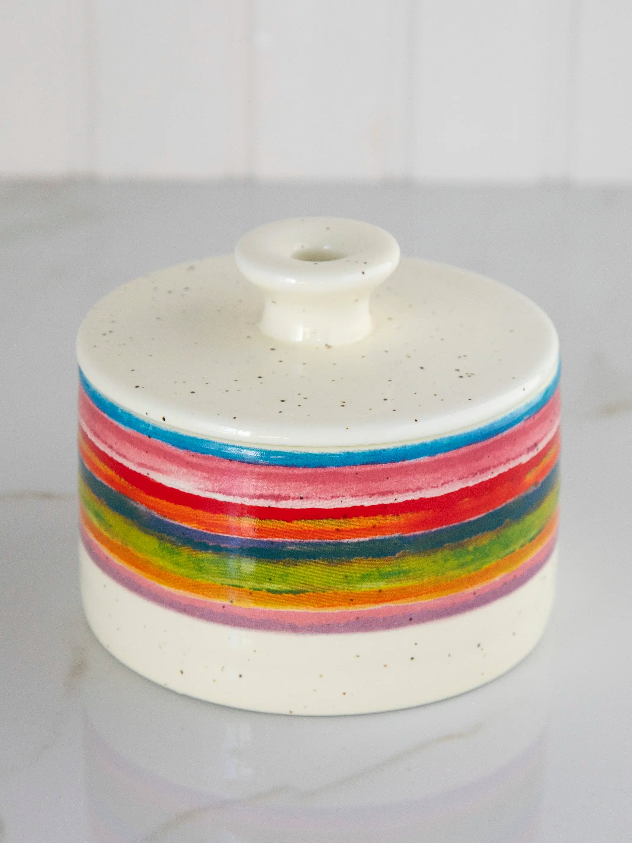 Stainless Steel Bowl - Small Rainbow Floral Rows