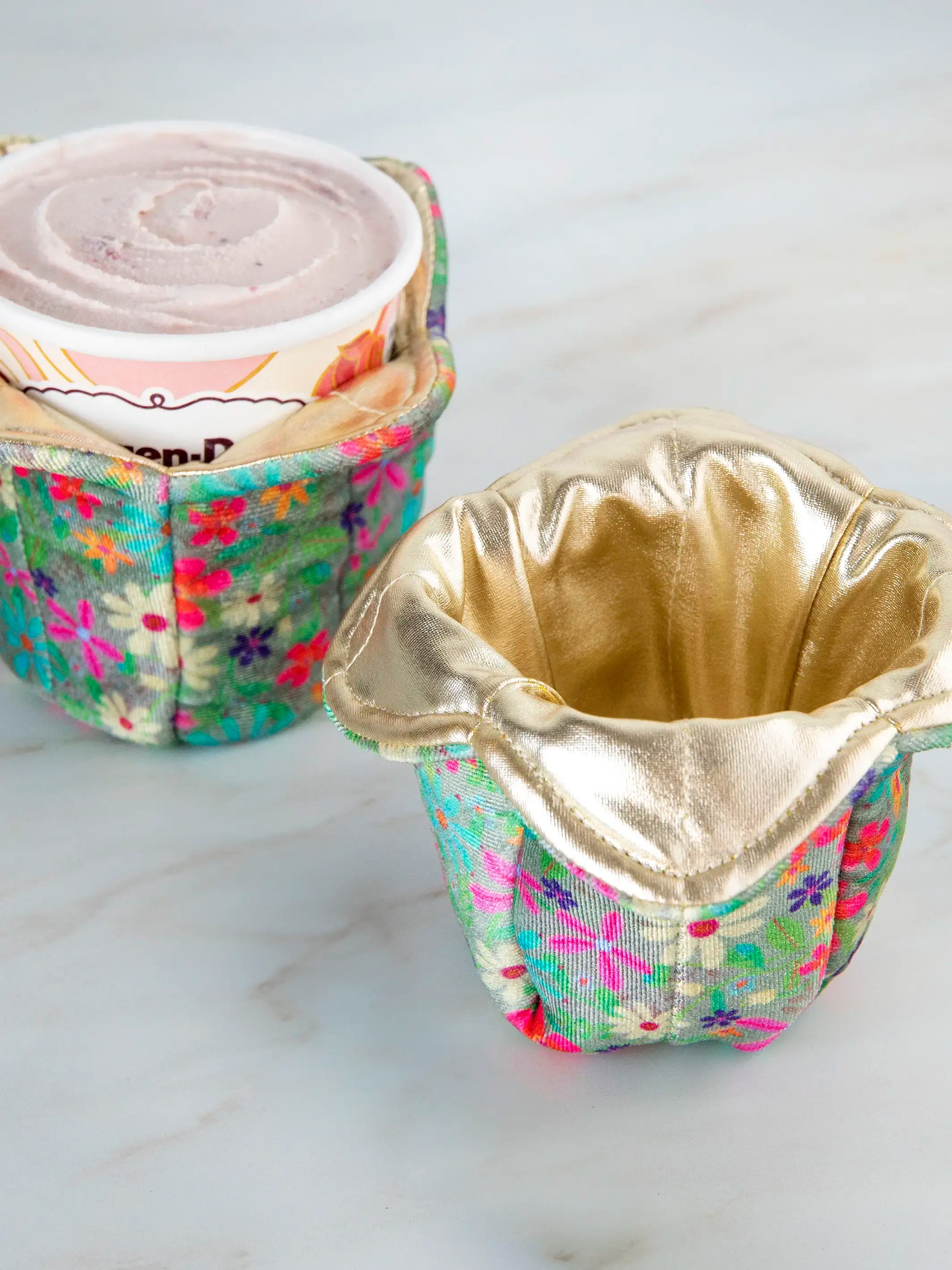 Bake Happy Double-Sided Oven Mitt - Blue Folk Flower Patchwork