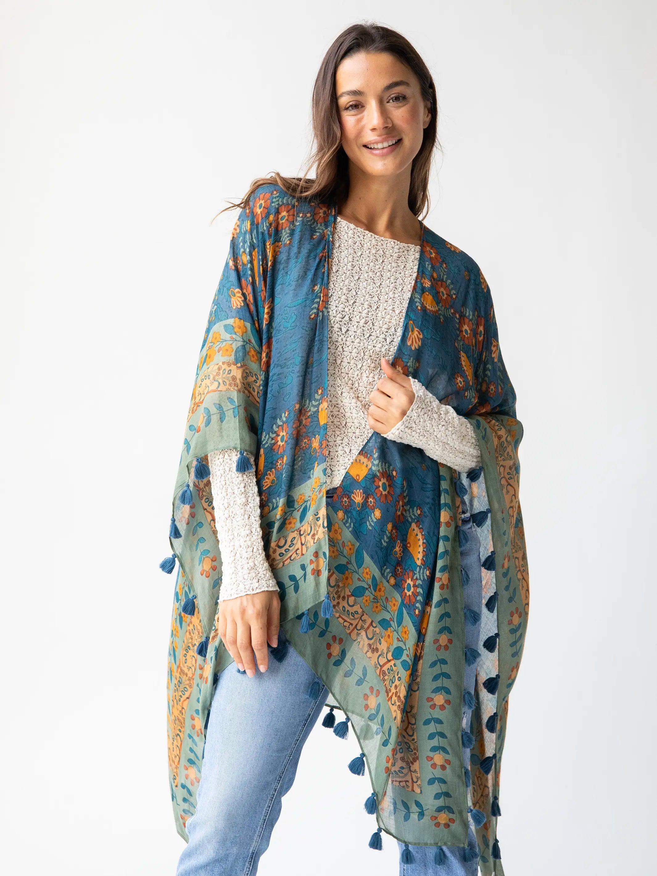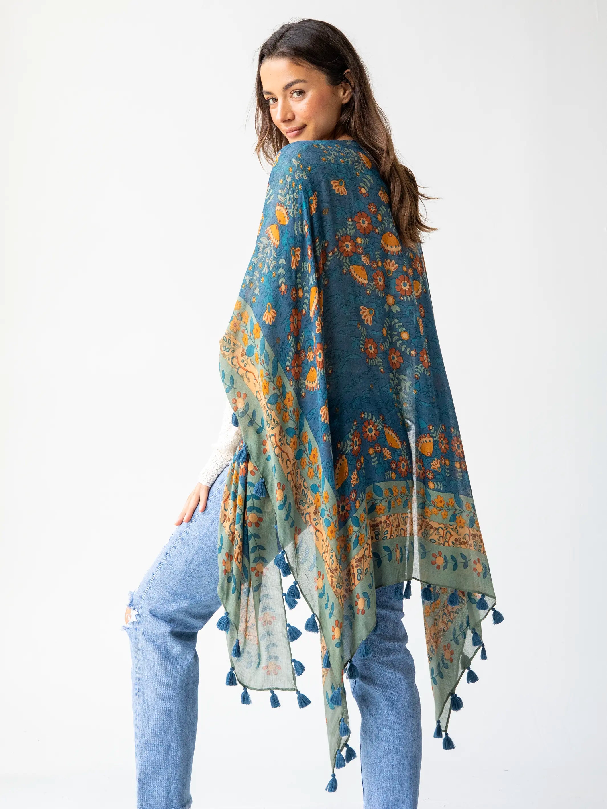 Reversible Gauze Easy V-Neck Top - Light Blue Red Blooms