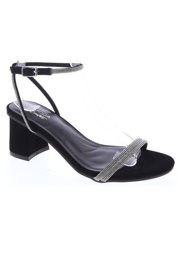 Elevate your style with our Alexa Mid Heels! These stunning ankle strap heels feature a chunky mid heel for comfort and a touch of sparkle with embellished rhinestone straps. The adjustable buckle closure and padded insole make for a perfect fit. True to size and available in metallic colors.
