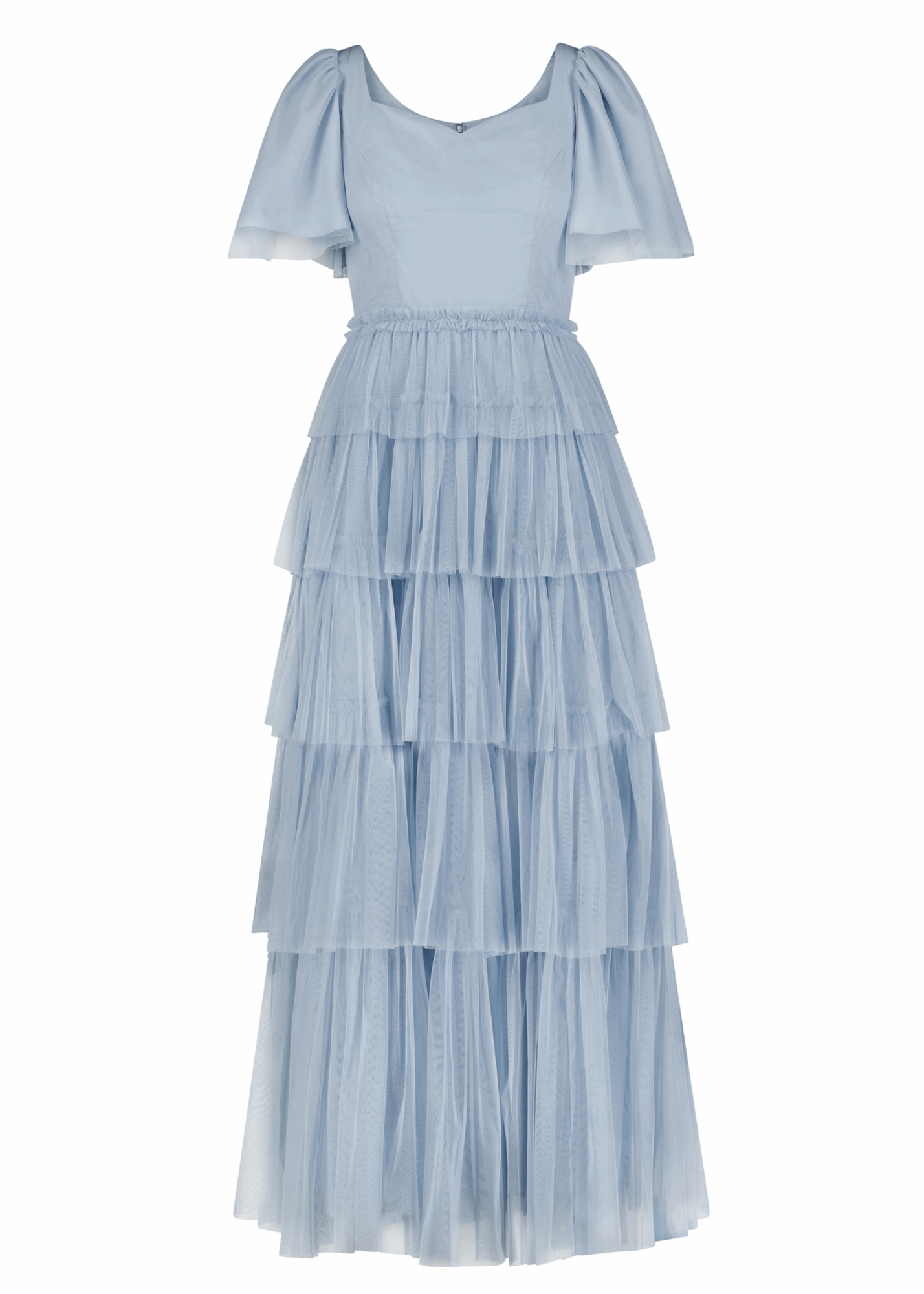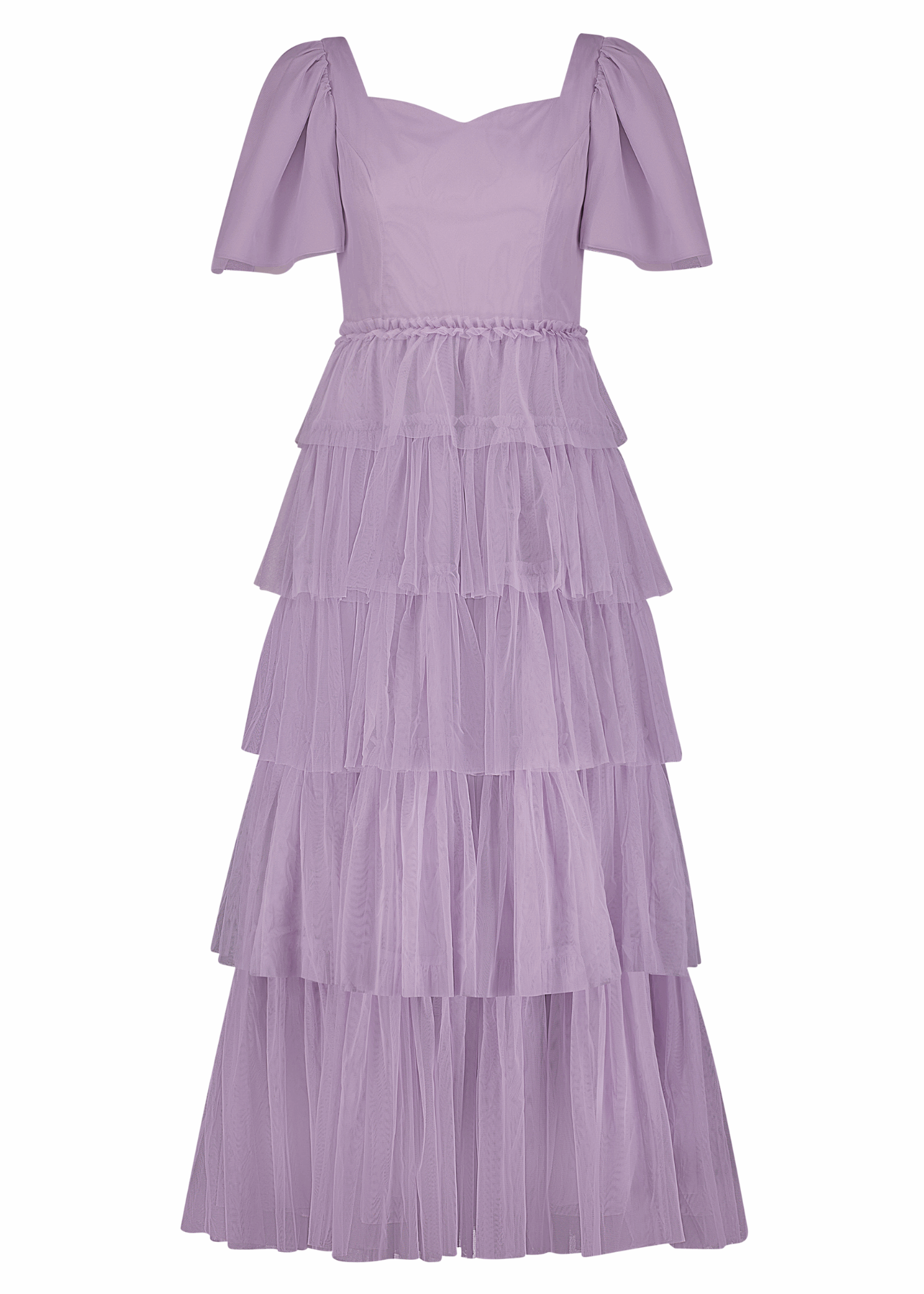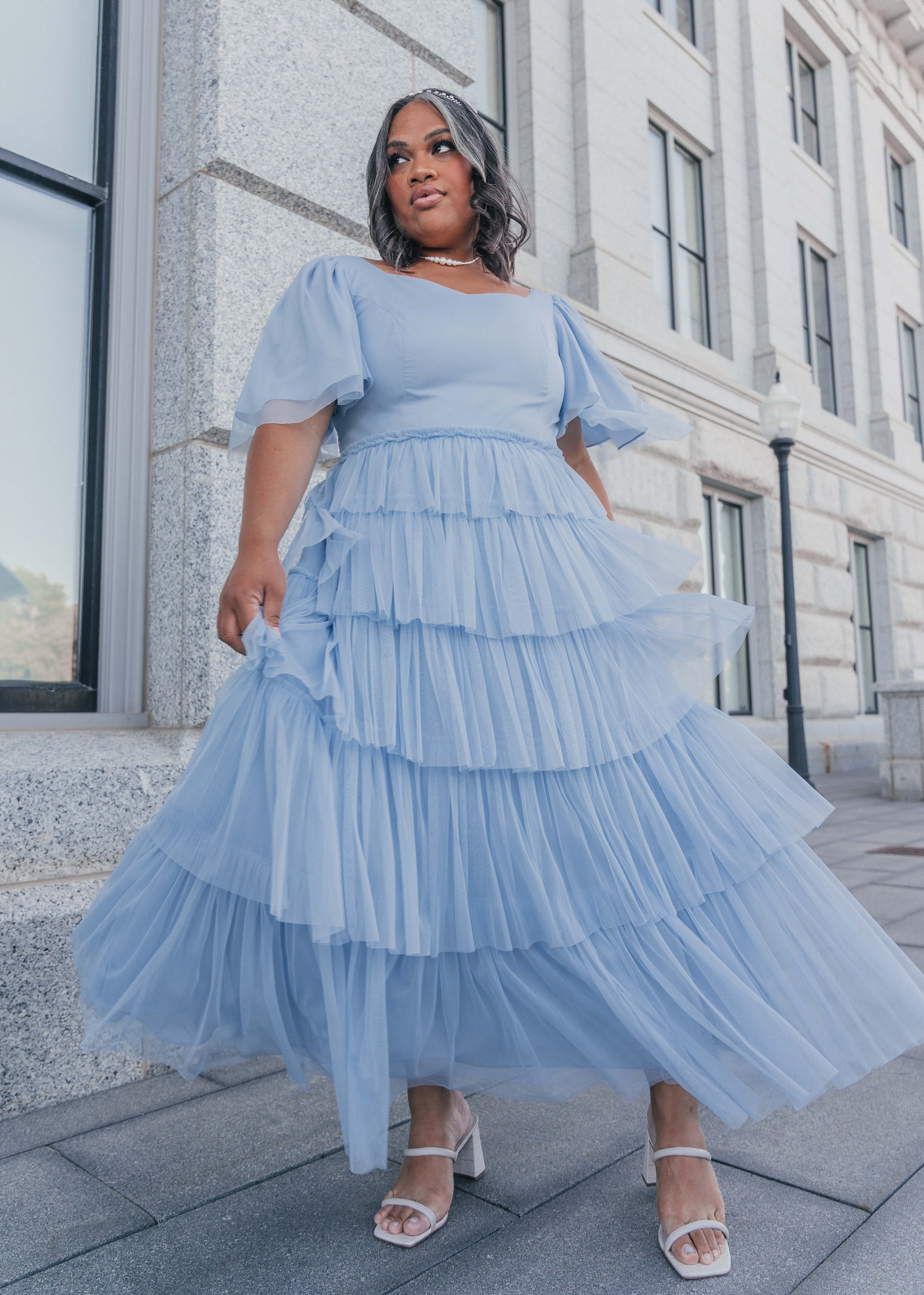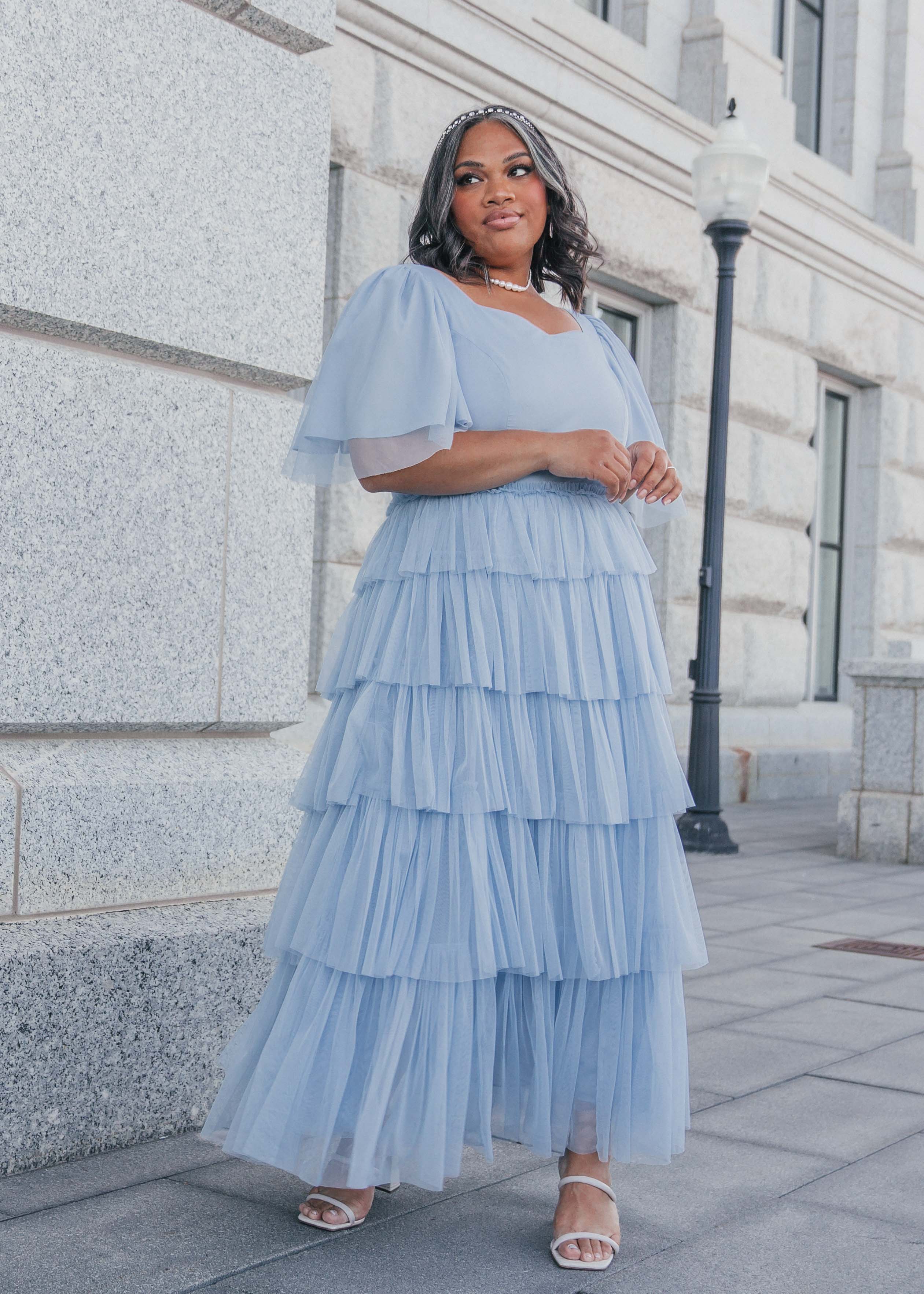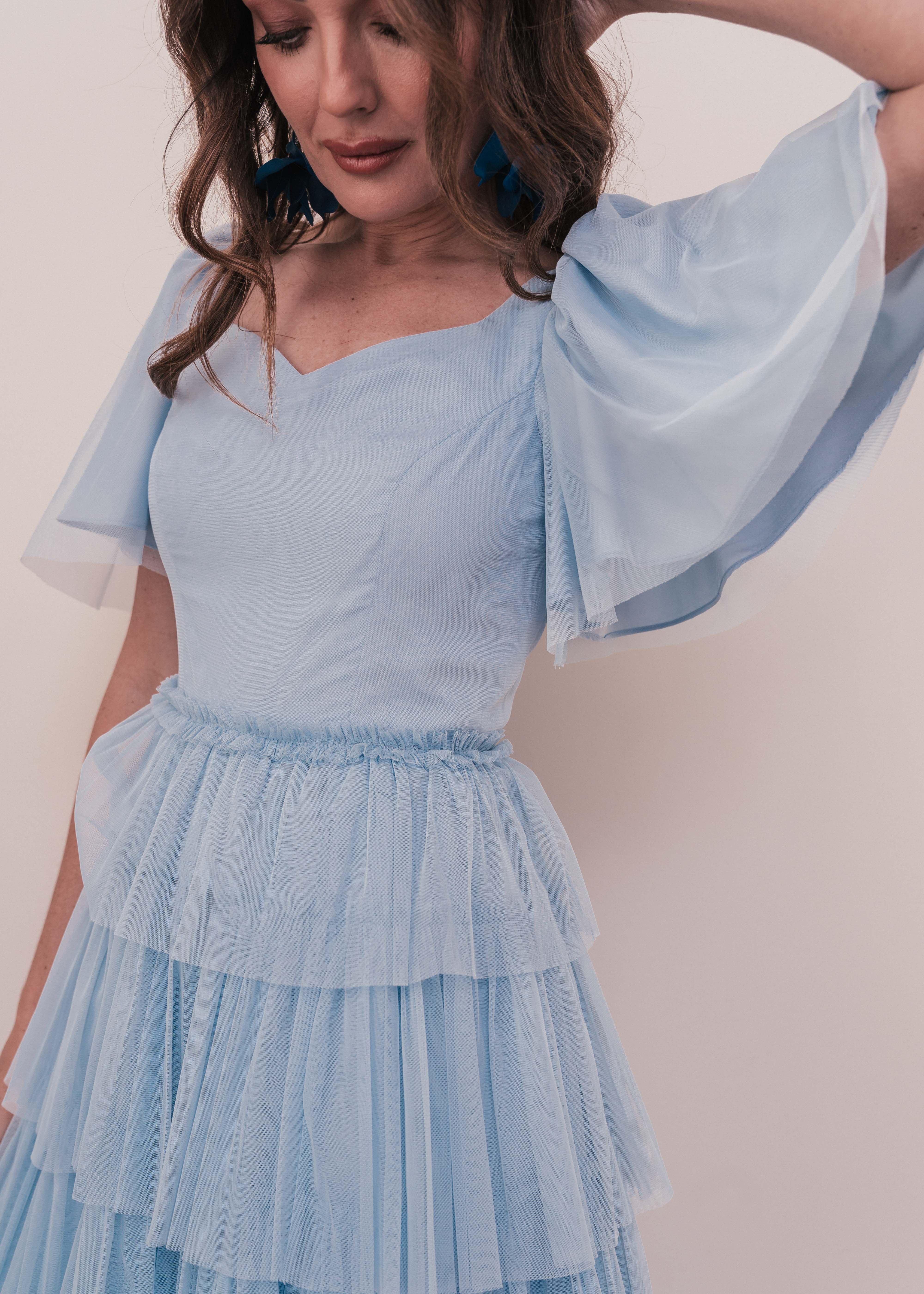 This beautiful maxi would be a stunning addition to your closet. This dress features a sweetheart neckline, flutter sleeves, and beautiful ruffles detailing the skirt and waistline. Pair with sandals, wedges, or heels for the perfect look at any event.