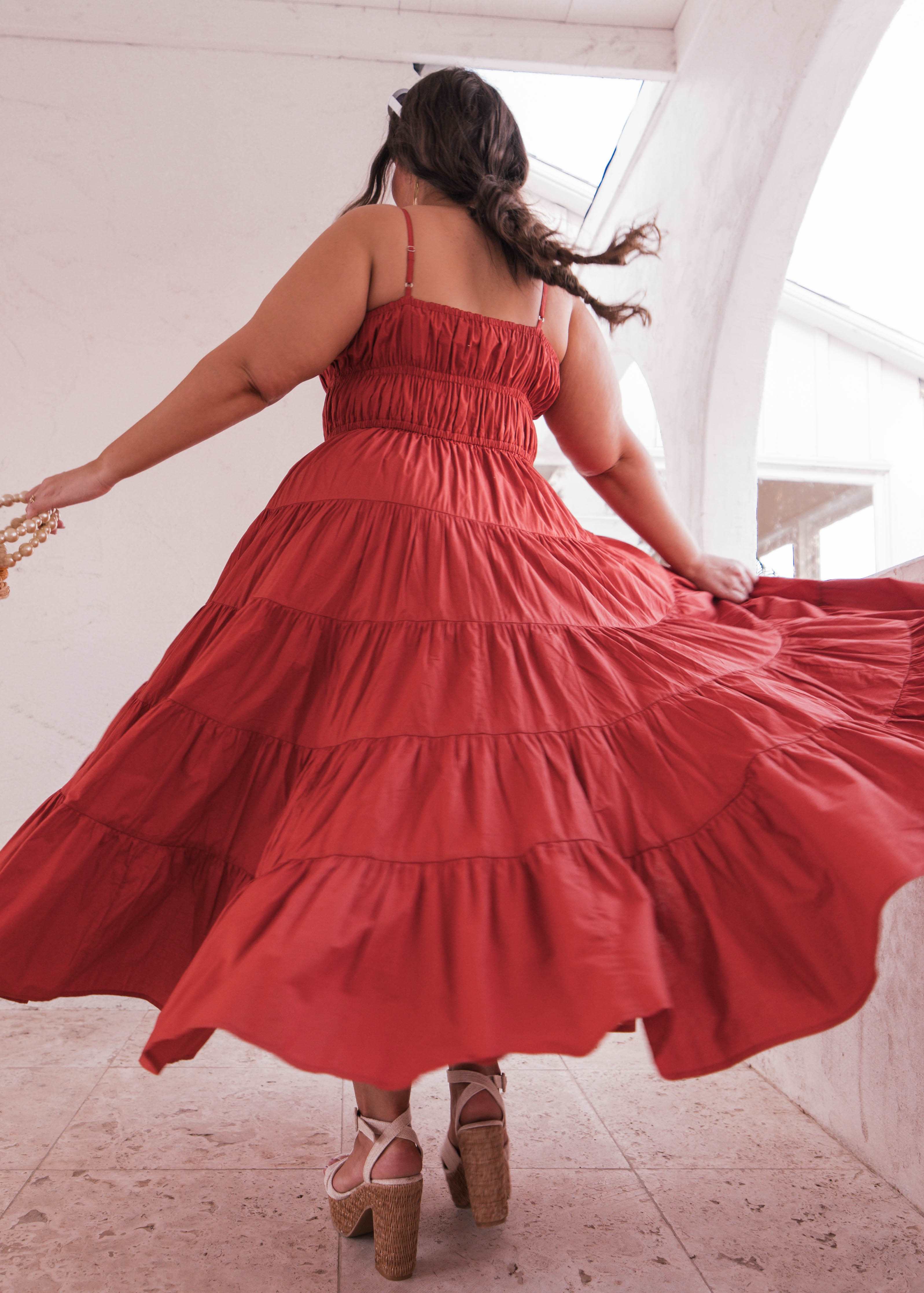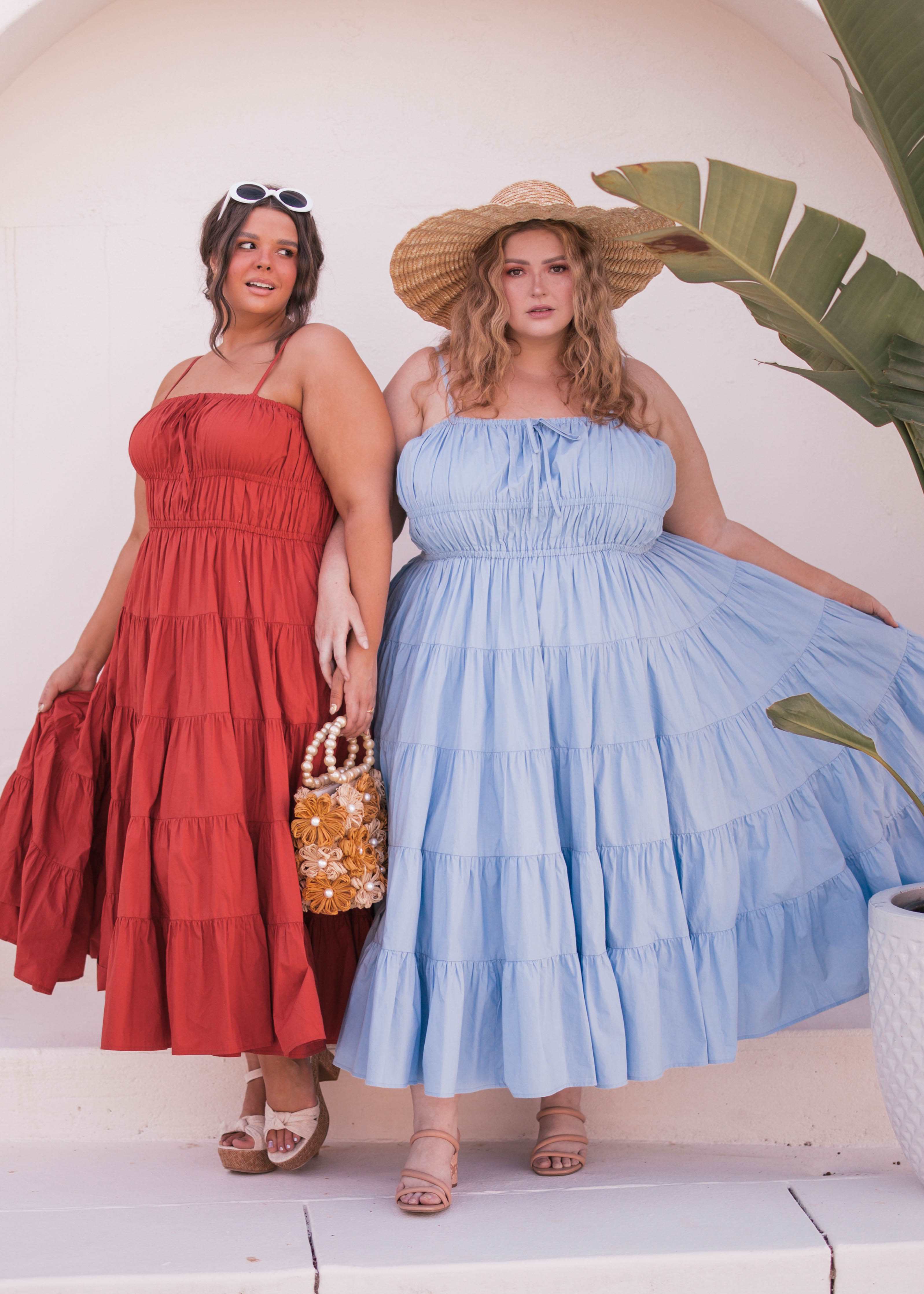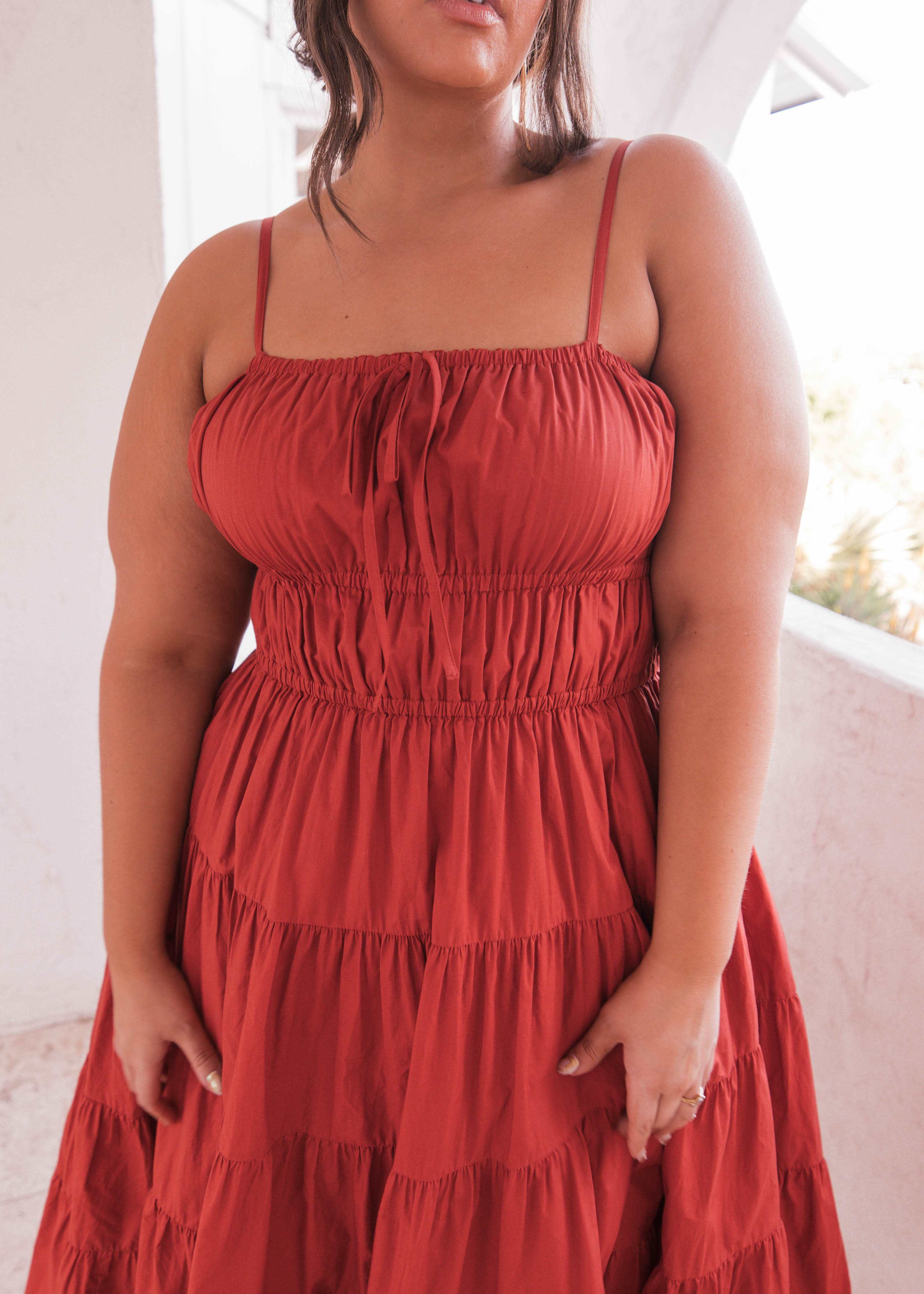 Embrace the serenity of summer nights with our enchanting tiered dress. Crafted for beach-ready elegance, its flowy silhouette and tiered ruched bodice effortlessly capture the essence of a beach babe's dream. Adorned with delicate straps and a charming bow accent on the neckline, this vibrant beauty exudes breezy sophistication, perfect for bonfires by the shore or sunset strolls along the coast.