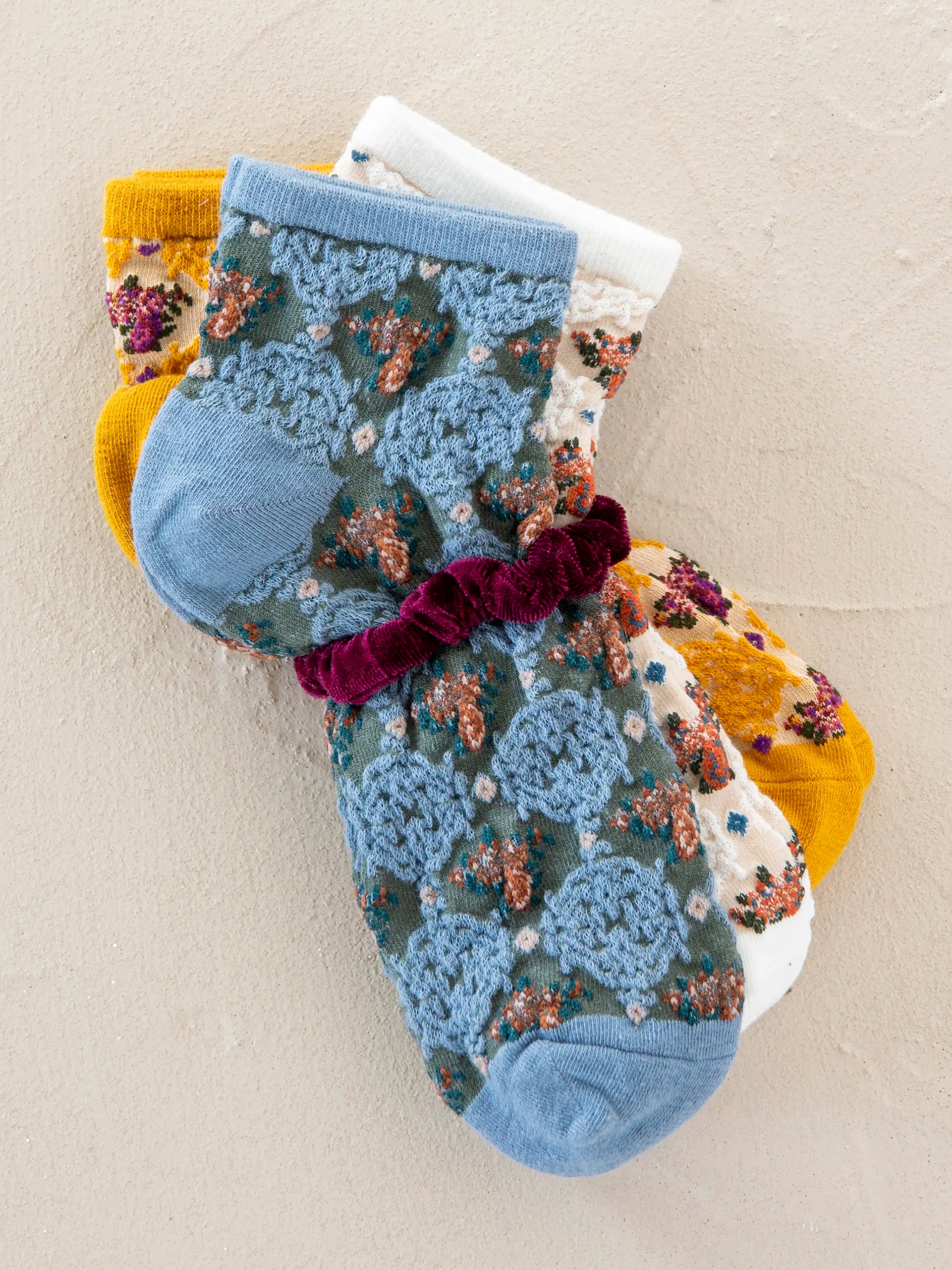 Blossom Ankle Socks & Scrunchie, Set of 3 - Mustard