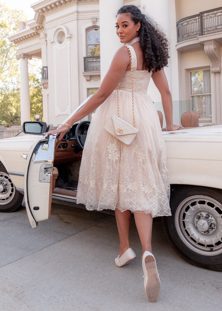 Be the star of the show in our Brigette Dress – a vision of royal elegance that will transport you to a world of festive wonder. As you slip into this golden beauty, you'll find yourself immersed in a dreamy holiday fantasy, where every moment shimmers with magic. Pair it with pearls and heels to complete a look that's timelessly chic and beautifully you.