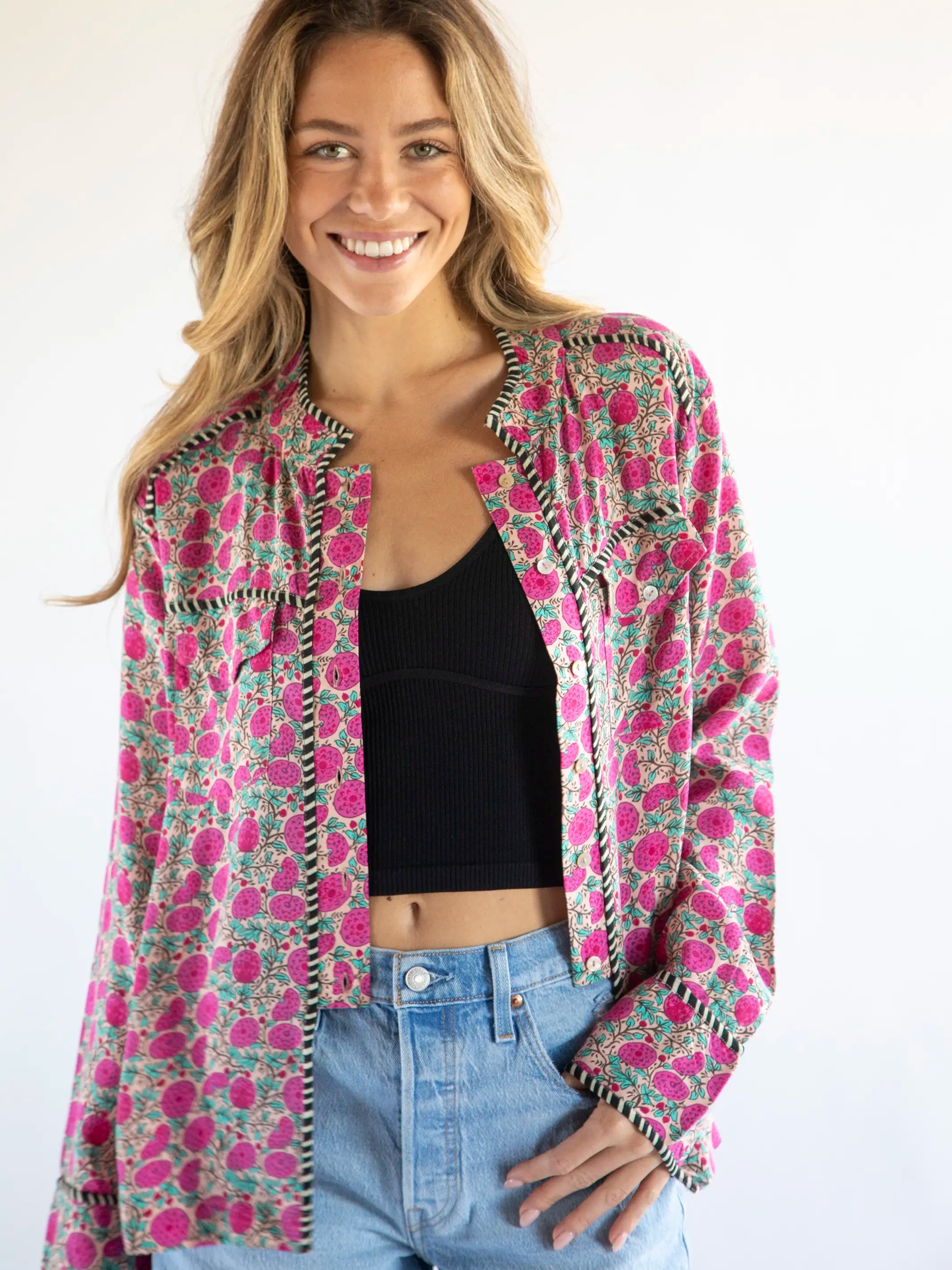 The black and white trim is SO fun... and pairs perfectly with the bright print!