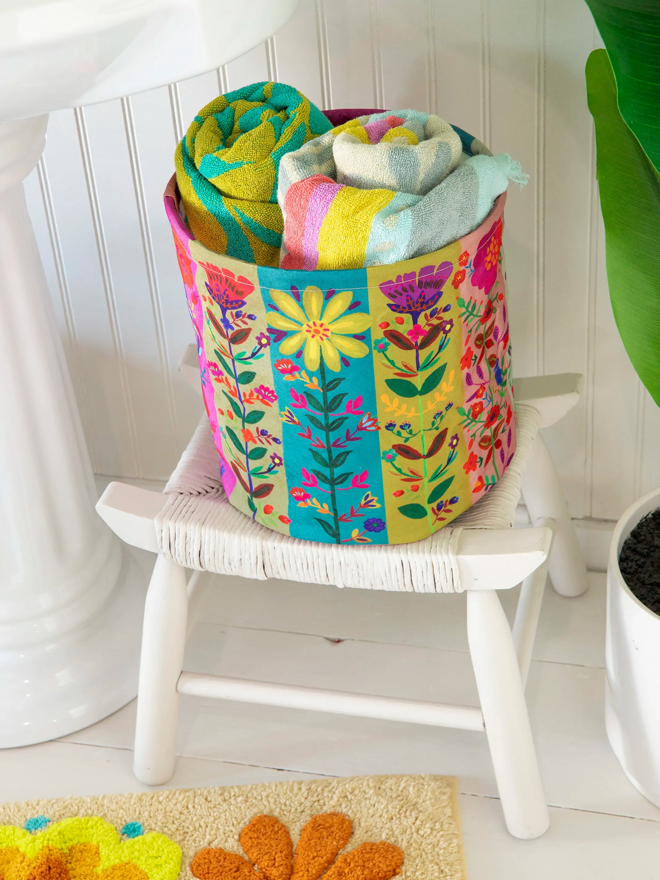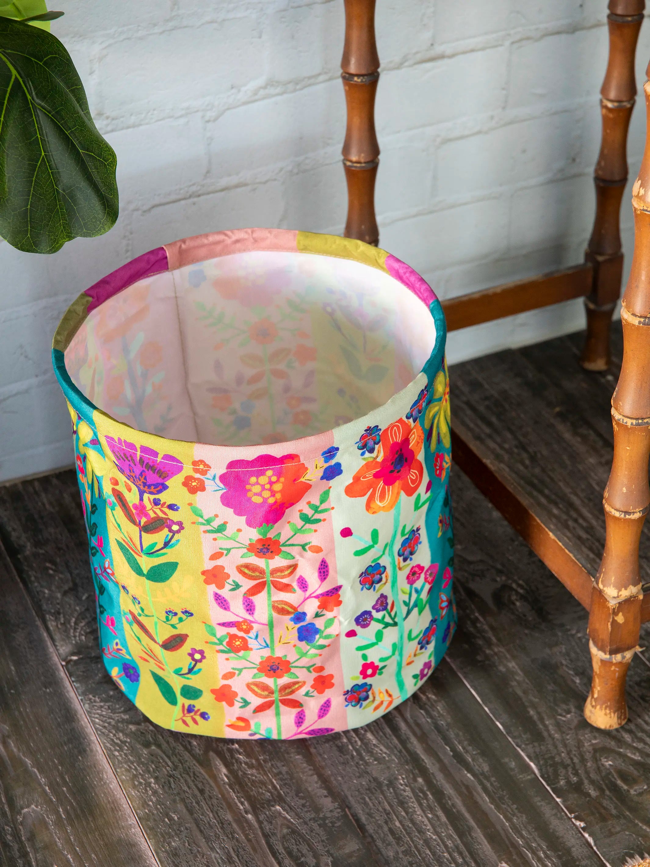 Collapsible Trash / Storage Bin - Teal Folk Flower