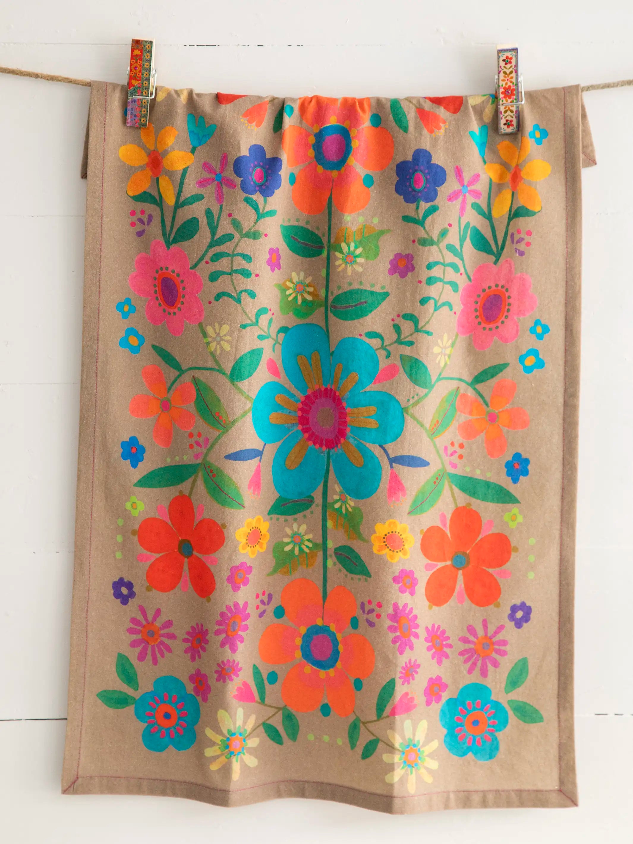Cotton Dish Towel - Cocoa Folk Flower
