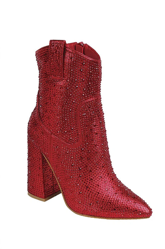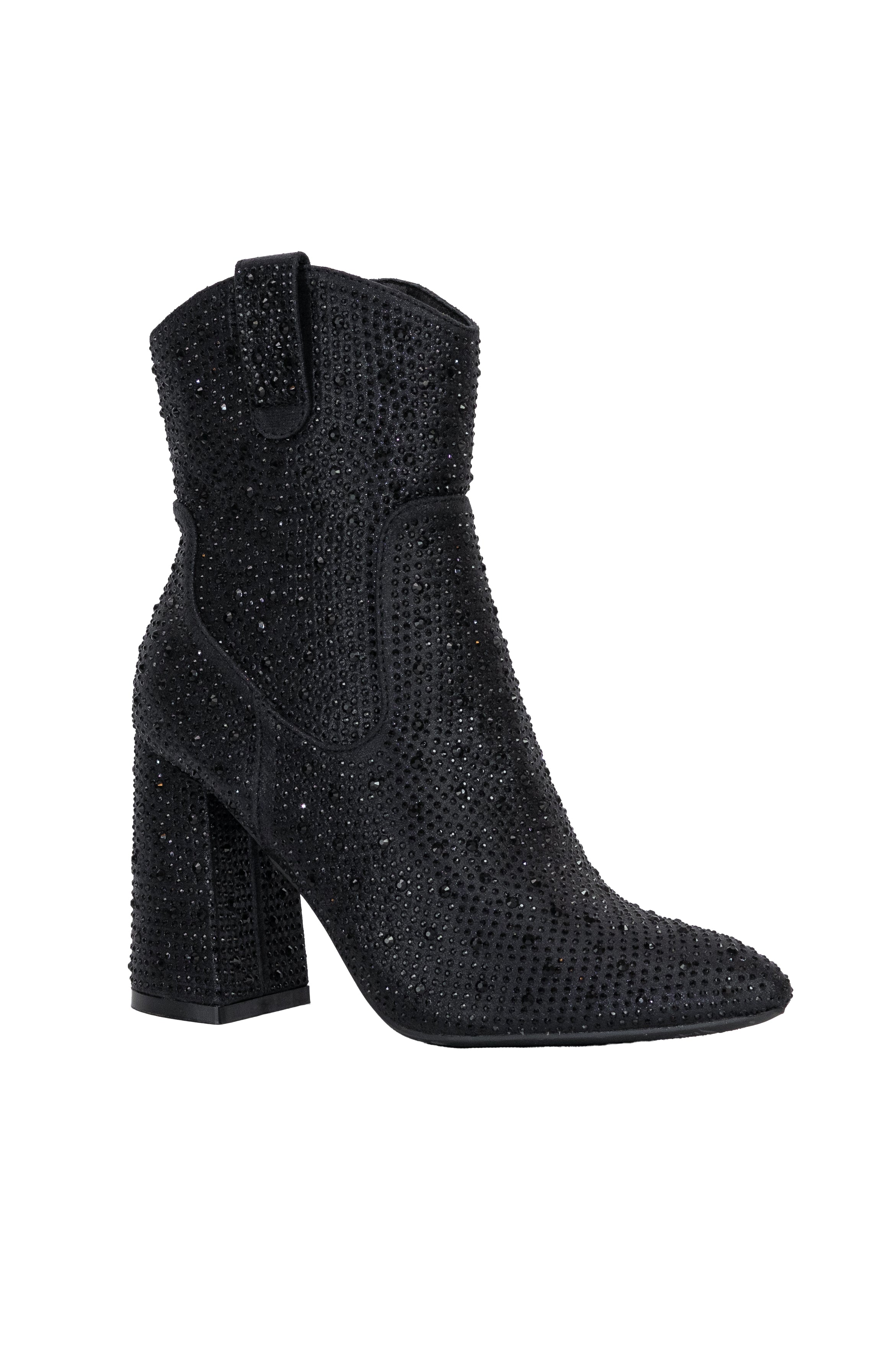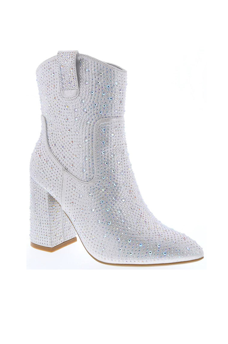 Eclipse Embellished Ankle Boots are perfect for those who love to make a statement. Featuring a light padded insole, chunky heel, inward zipper closure, and all-around embellished detailing, these ankle boots will add the perfect touch of glam to any look. For maximum comfort, they offer true to size fit and pull on styling.