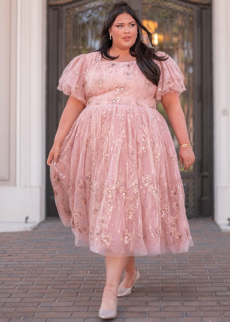 Indulge in the sugary bliss of the Eloise Dress - a dreamy holiday masterpiece in soft pink. Featuring delicate floral detailing and shimmering sparkle embellishments, this dress exudes feminine charm. Whether you're dancing under twinkling lights or attending a holiday party, this dress promises to make you feel enchanting.