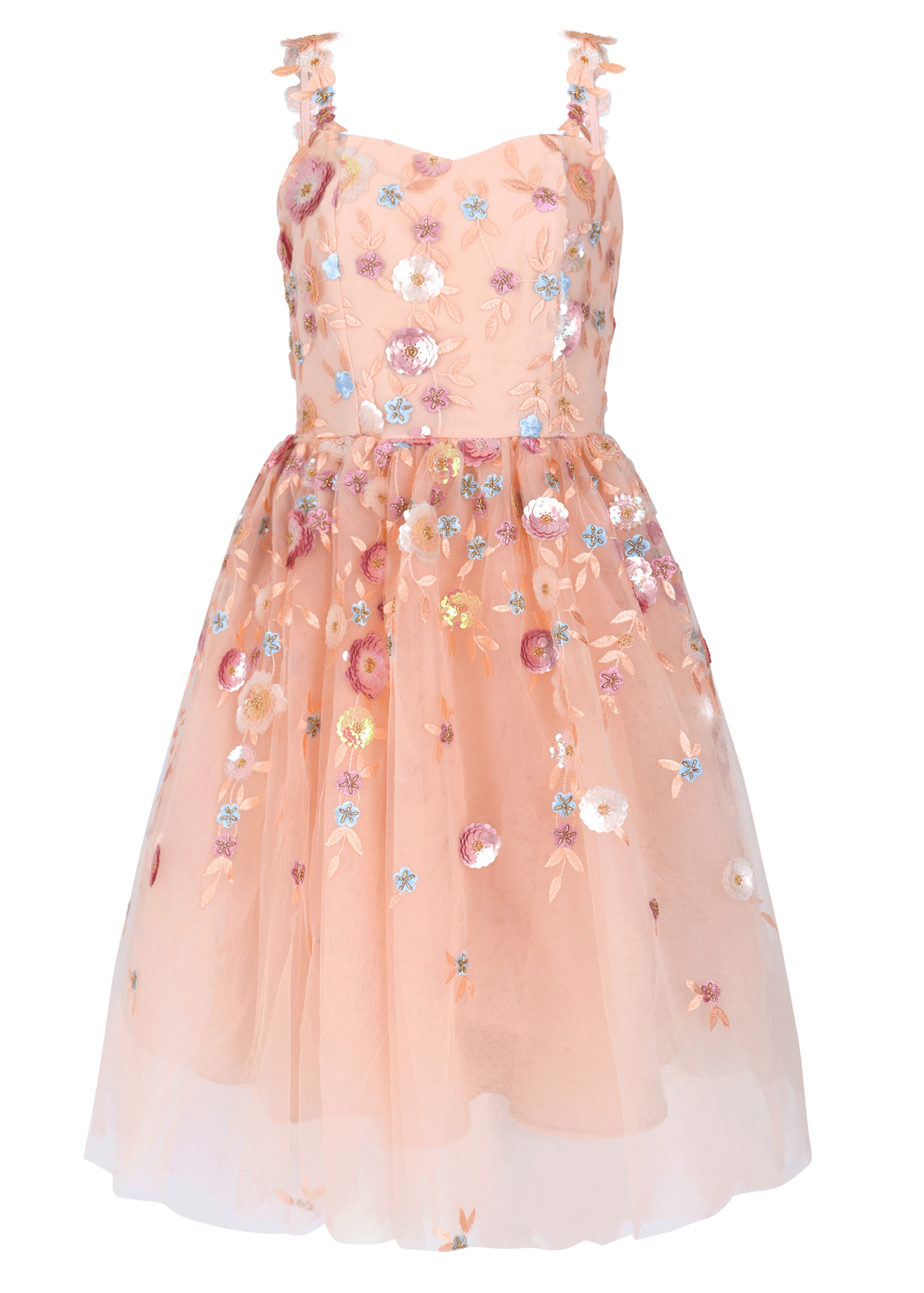 Embrace the magic, and let your inner fairy shine bright in this captivating creation. Features delicate floral embellishments that cascade along the bodice and skirt, creating an exquisite tapestry of petals and foliage. Available in an enchanting shade of teal and pink - allowing you to choose the color that resonates with your unique personality.