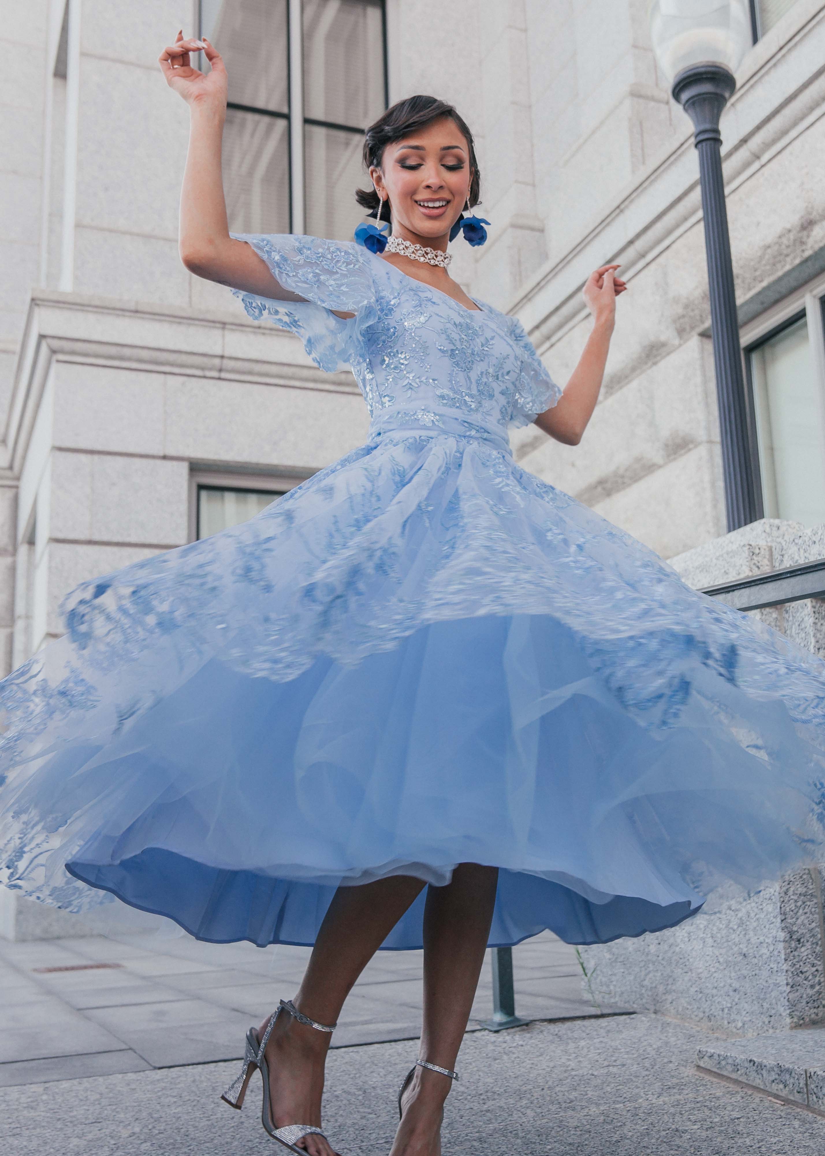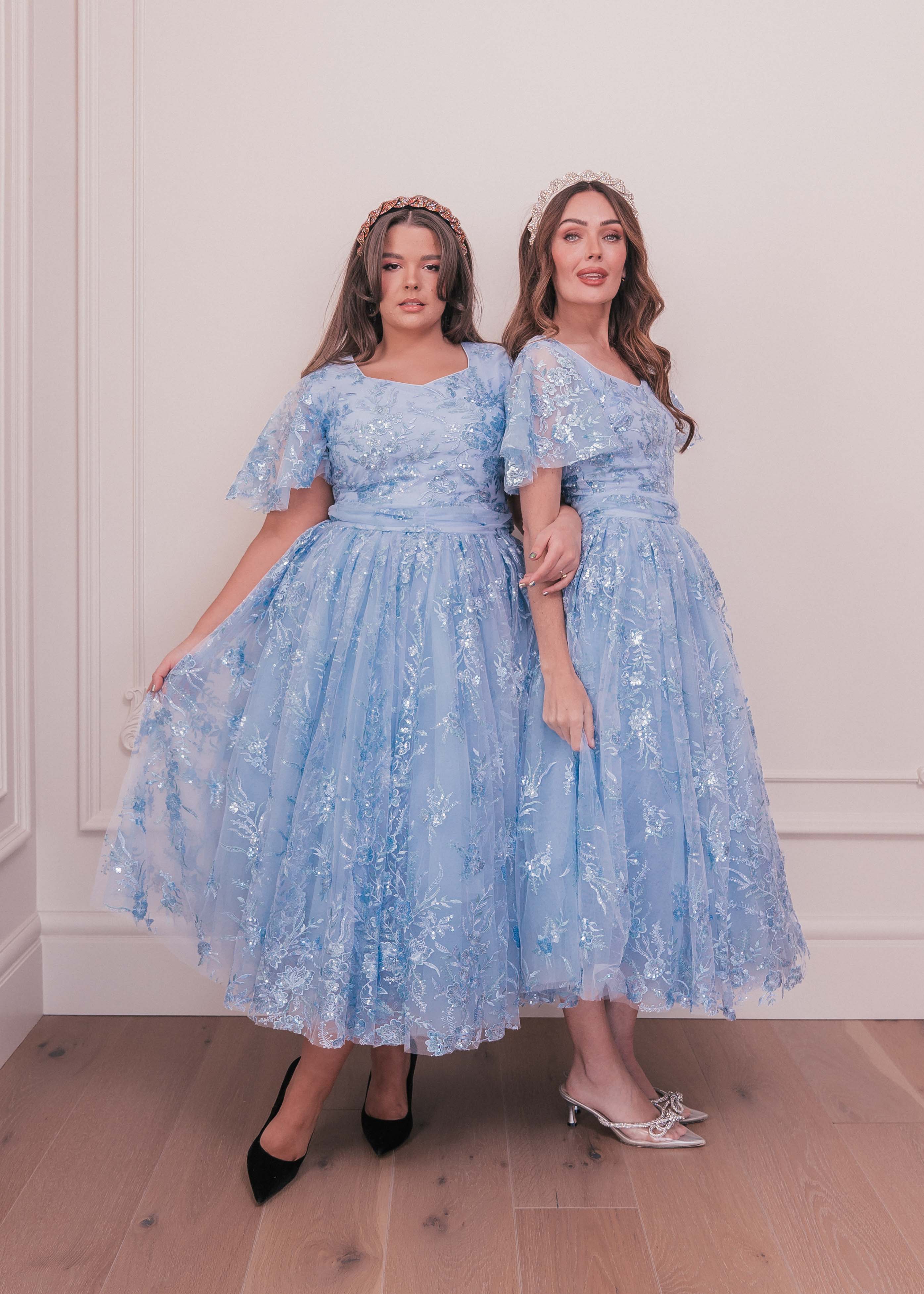 Embellished with delicate and shimmering floral sequins, this dress glistens like freshly fallen snow in the morning sun. The subtle yet mesmerizing details add a touch of magic to your look. Don't miss the opportunity to create your very own winter fairytale this season.