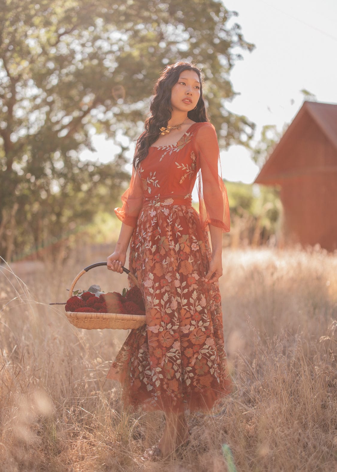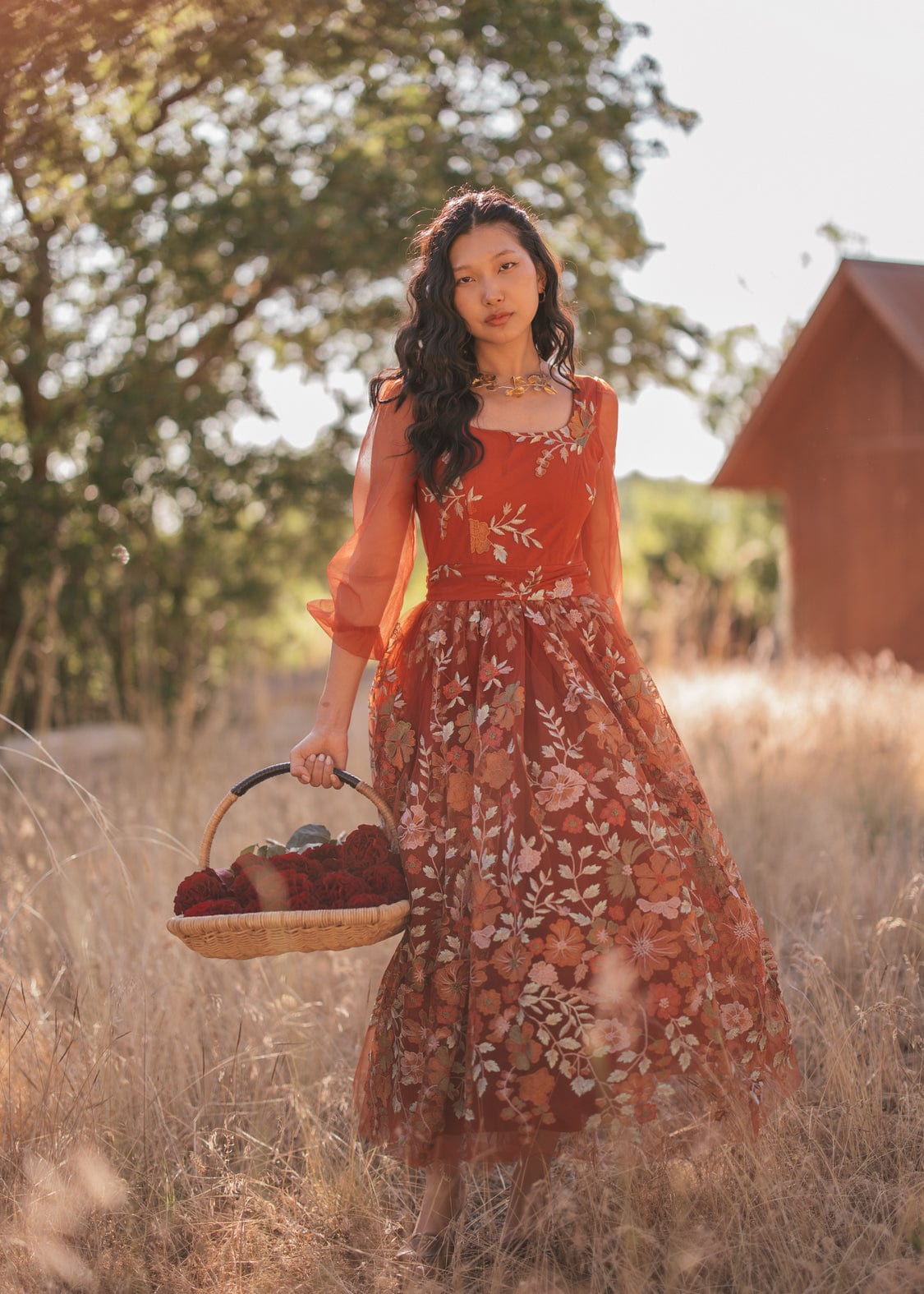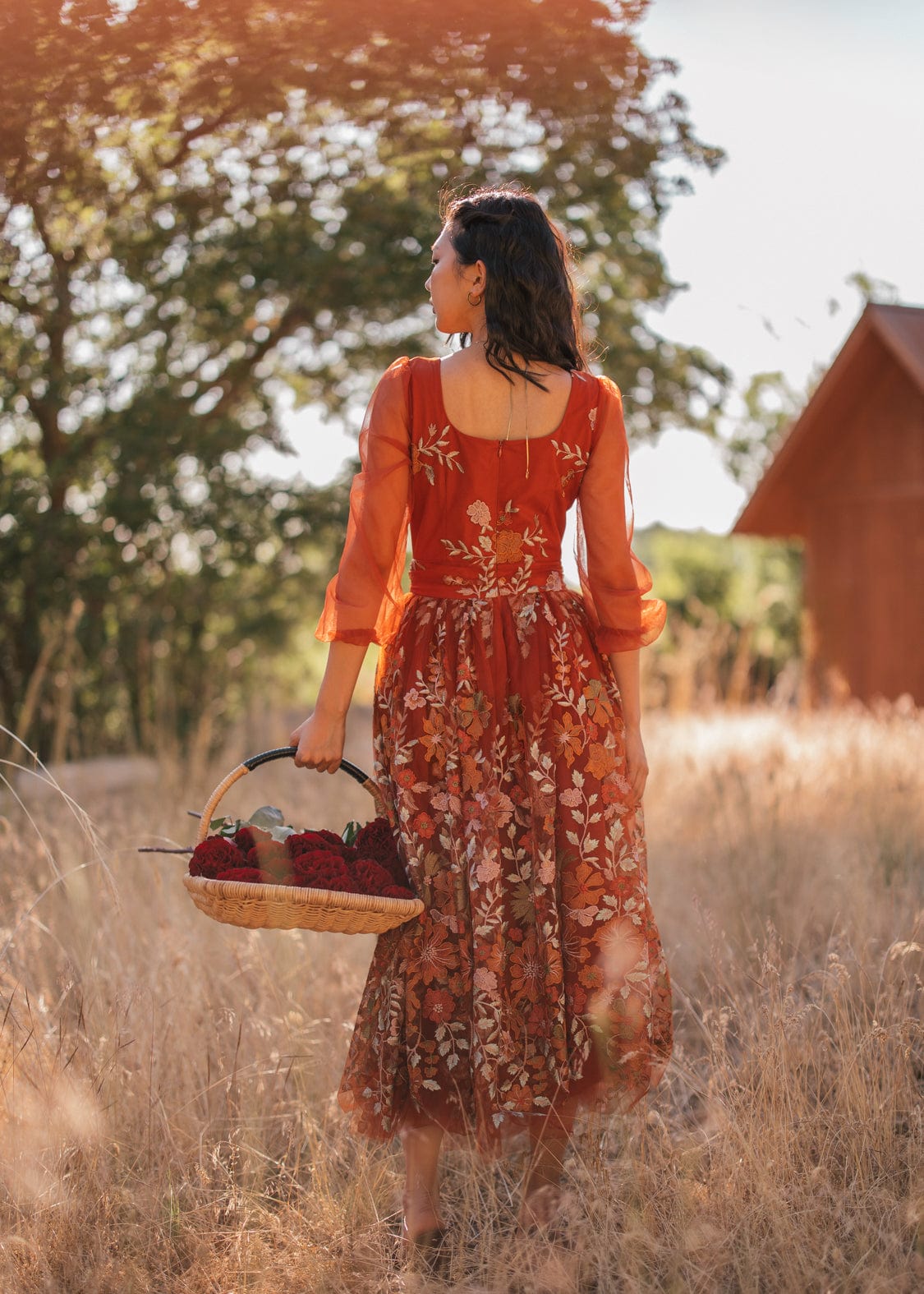 With its blend of rustic hues and chic design, the Ember Dress is a standout piece that exudes timeless beauty and sophistication. Its square neckline and sheer puffed sleeves add elegant charm to this flattering silhouette while the intricate floral embroidery adds a delicate ode to fall. Its stunning rust-orange hue invokes the vibrance of autumn leaves, making this an essential piece for every wardrobe this season!