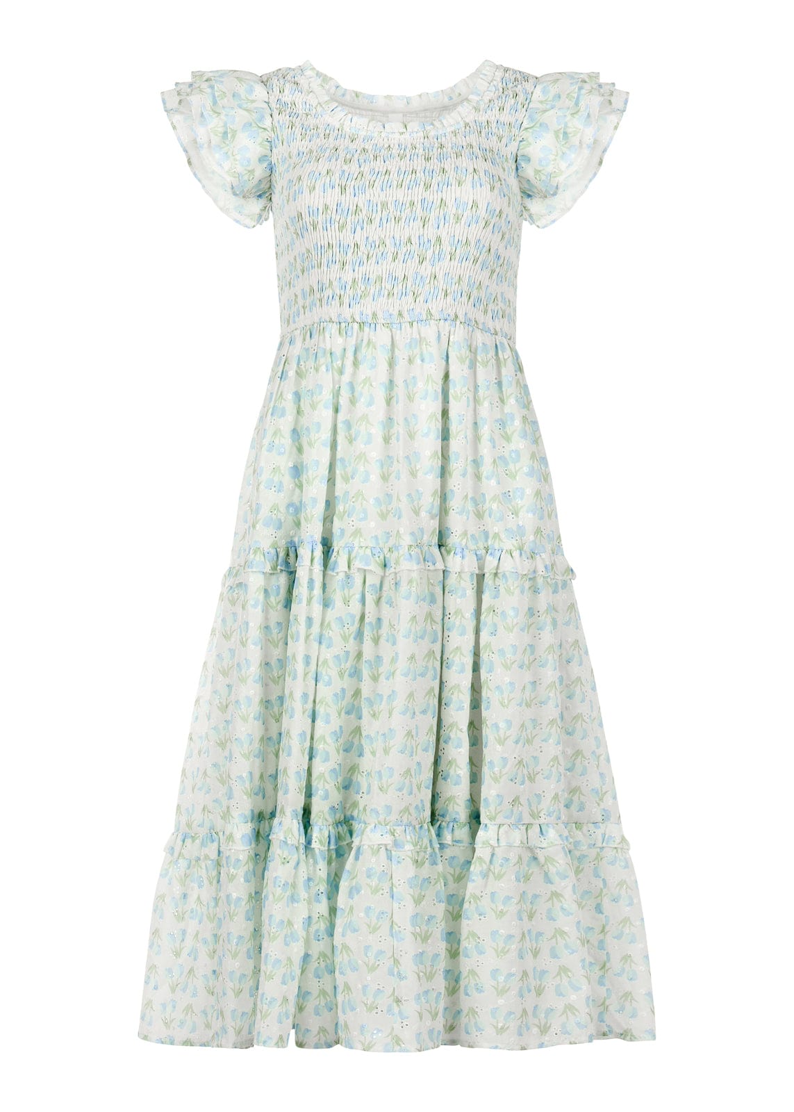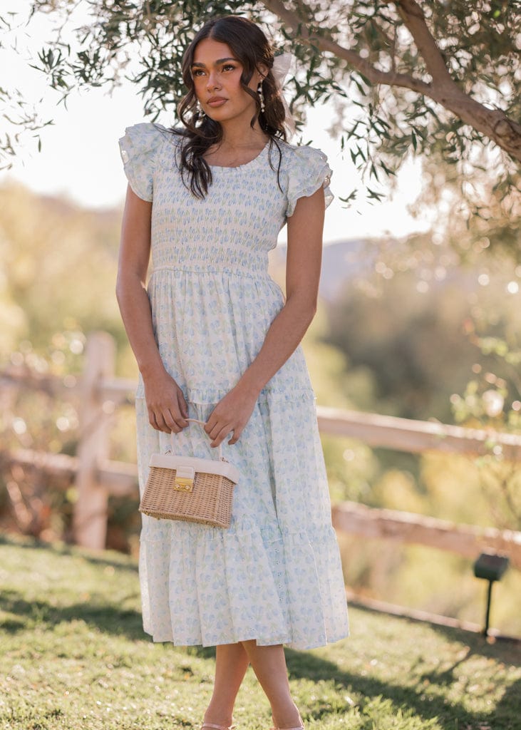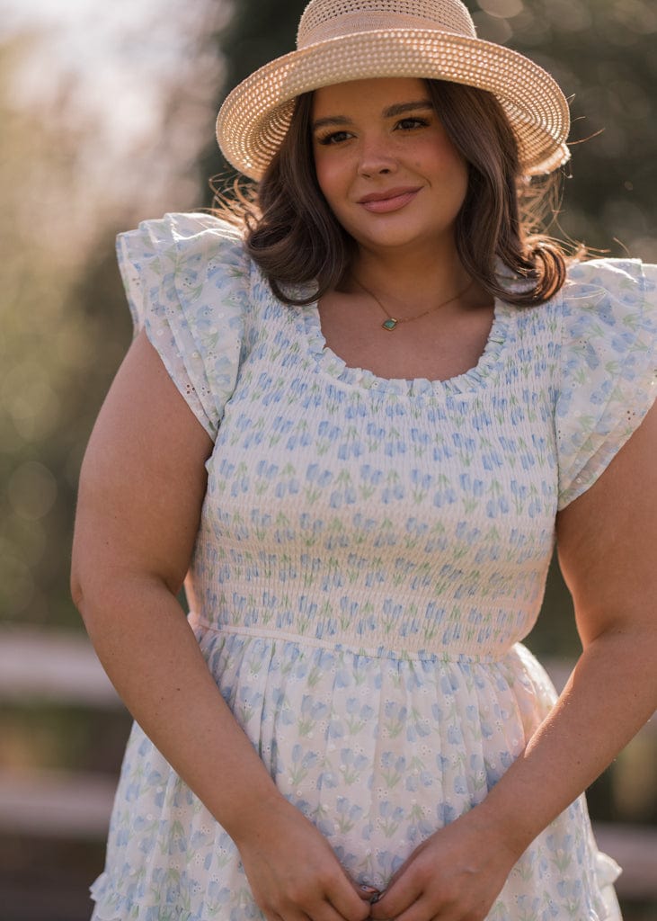 The Florette Dress is a graceful celebration of delicate floral charm. Featuring a smocked bodice, flutter sleeves, and a tiered skirt, it offers a flattering silhouette with effortless comfort. The intricate floral pattern and eyelet detailing make it ideal for garden parties, tea time, or any special occasion. Add a touch of whimsy to your wardrobe with this dreamy design.