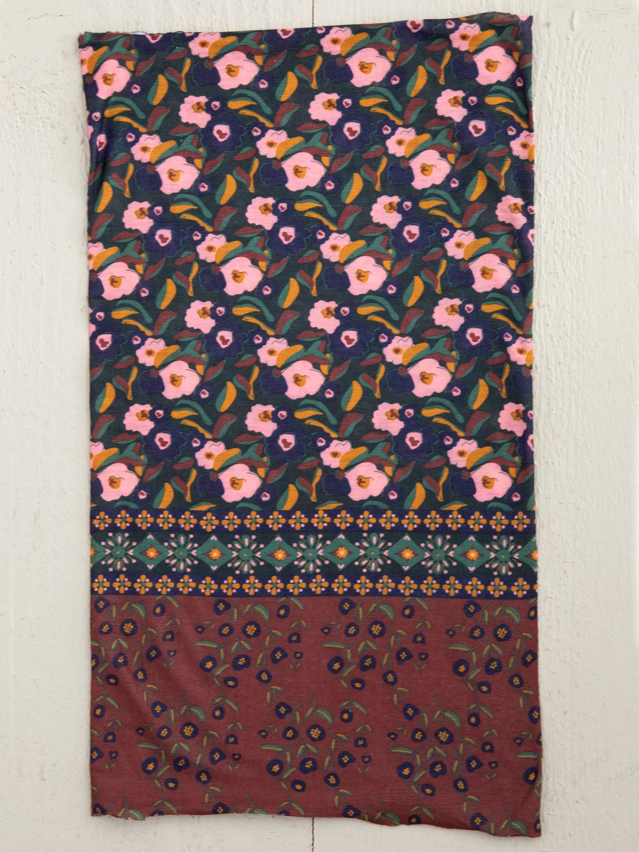 Full Boho Headband - Wine Floral Border