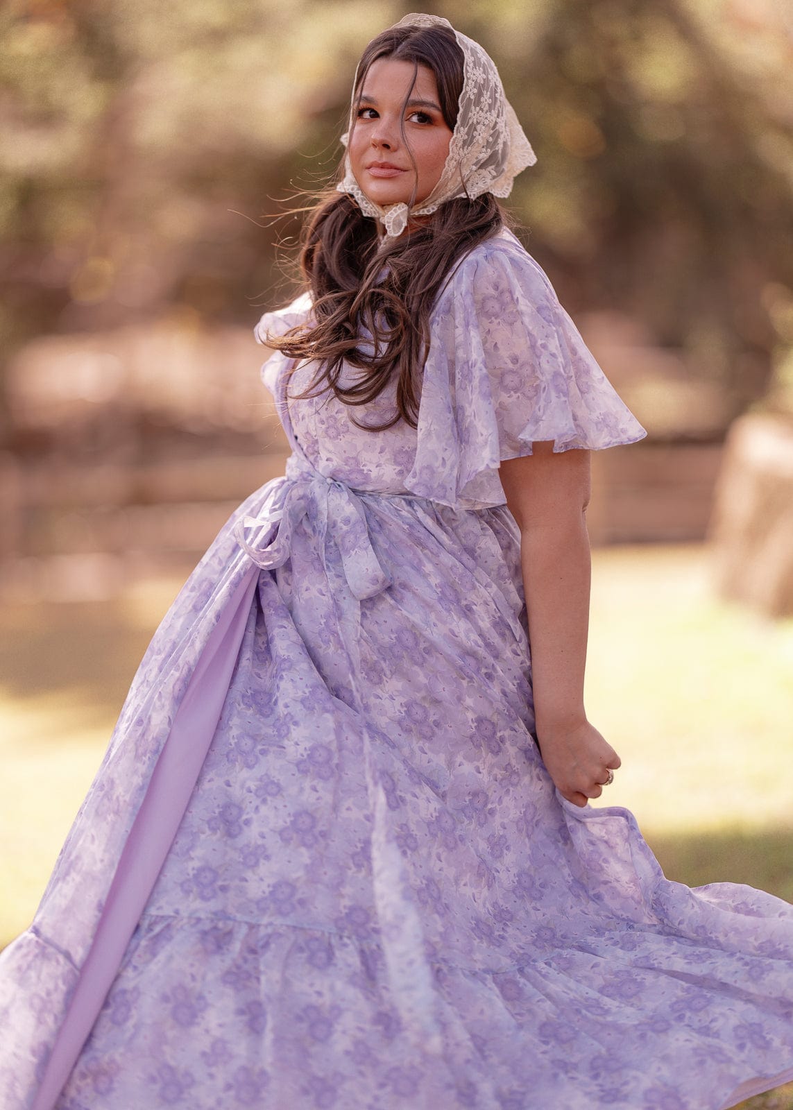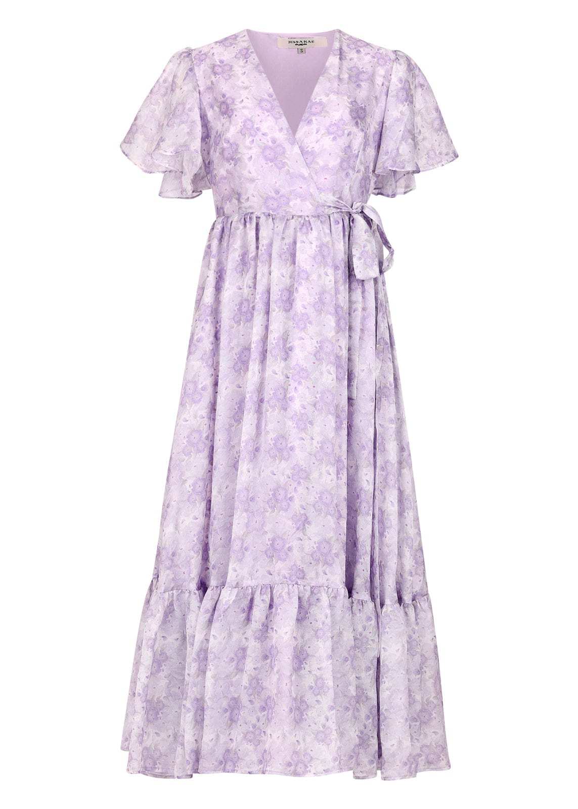 The Gracie Dress is a vision of effortless elegance, featuring a delicate lavender floral print on soft, flowing fabric. With flutter sleeves, a wrap-style bodice, and a self-tie waist, this dress flatters every silhouette while offering a dreamy, romantic feel. The tiered maxi skirt adds graceful movement, making it perfect for garden parties, brunch dates, or twirling under the sun. Light, airy, and timelessly chic, the Gracie Dress is a must-have for any feminine wardrobe.