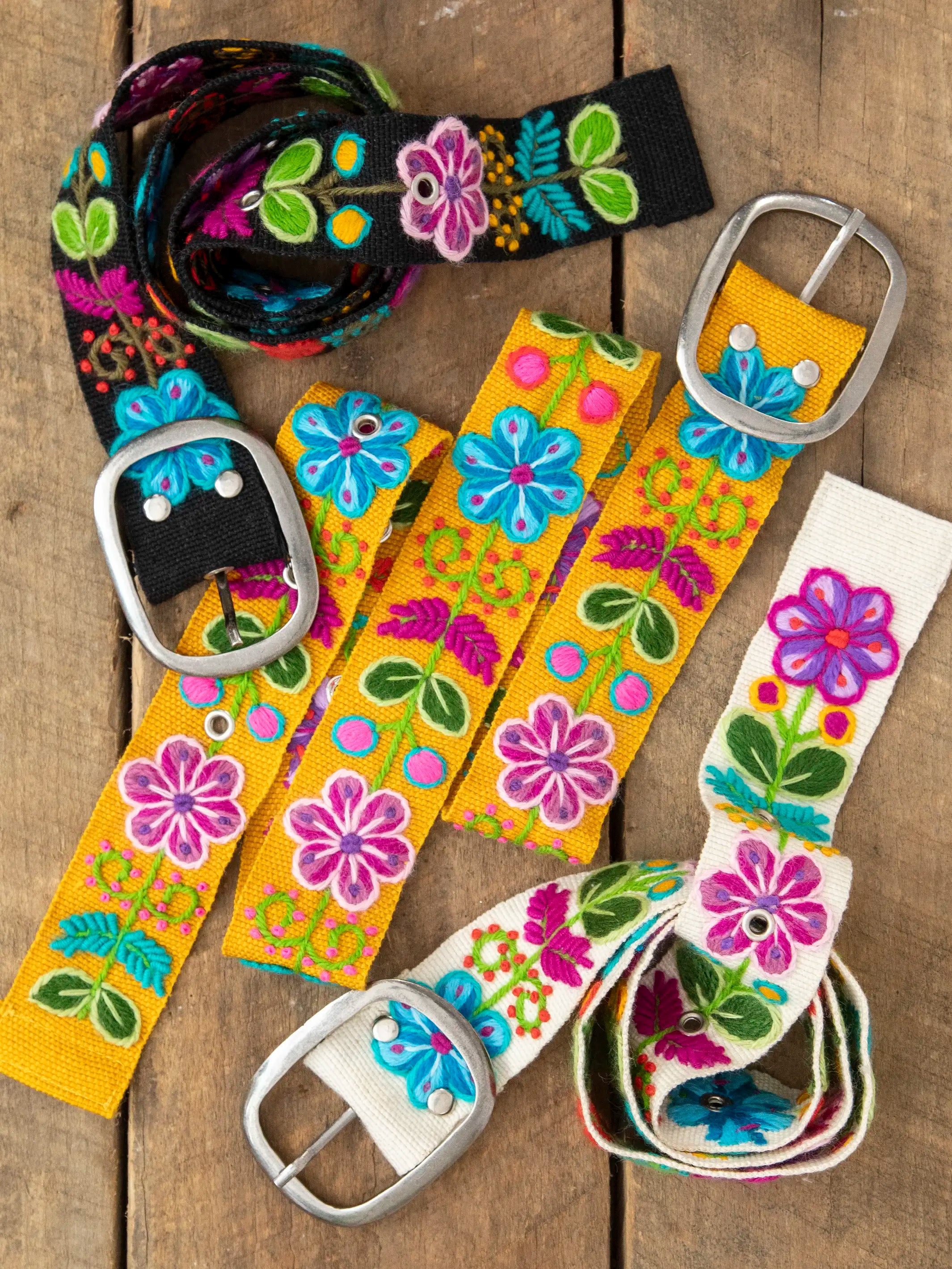The bright colors & vintage flowers hand embroidered by artisans in Peru!