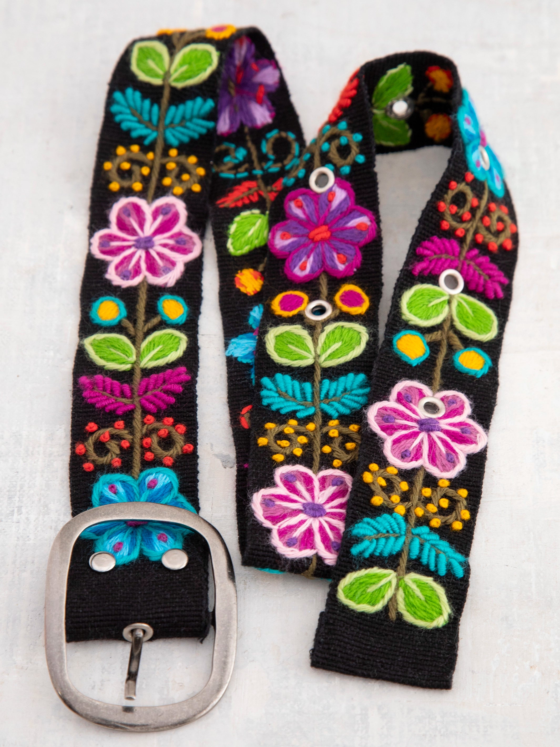 Hand Embroidered Belt - Black