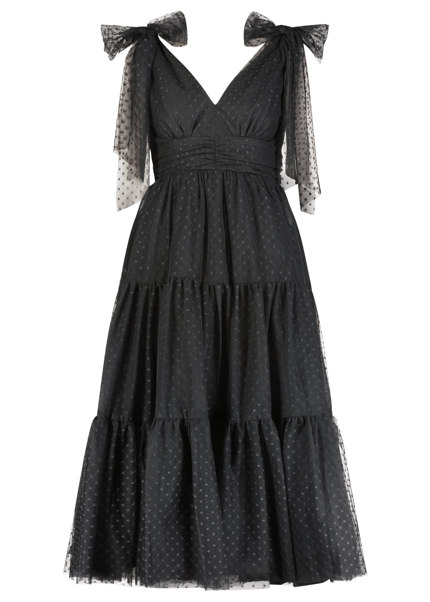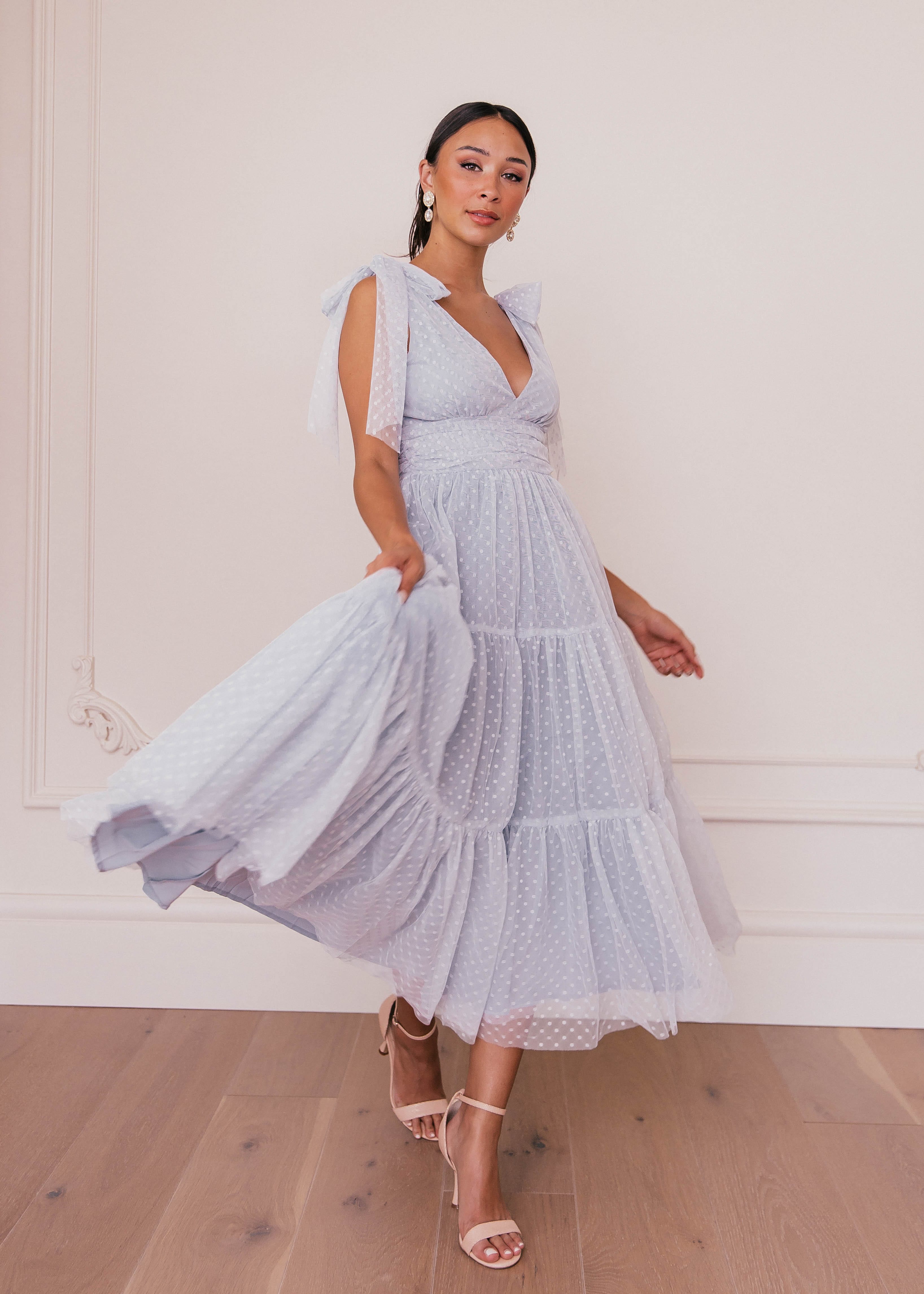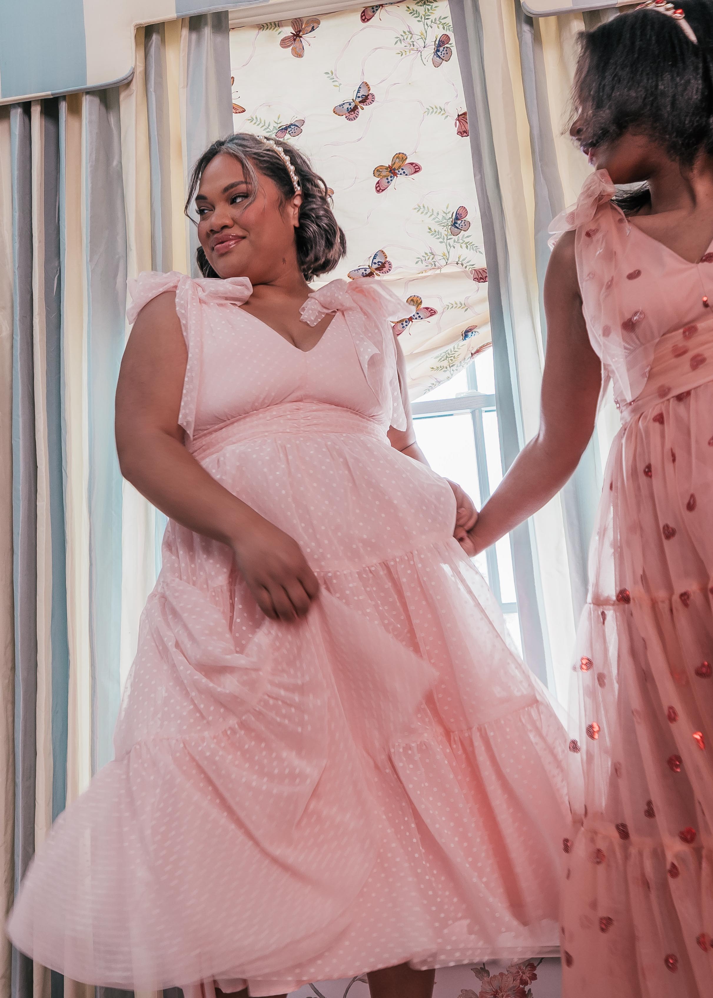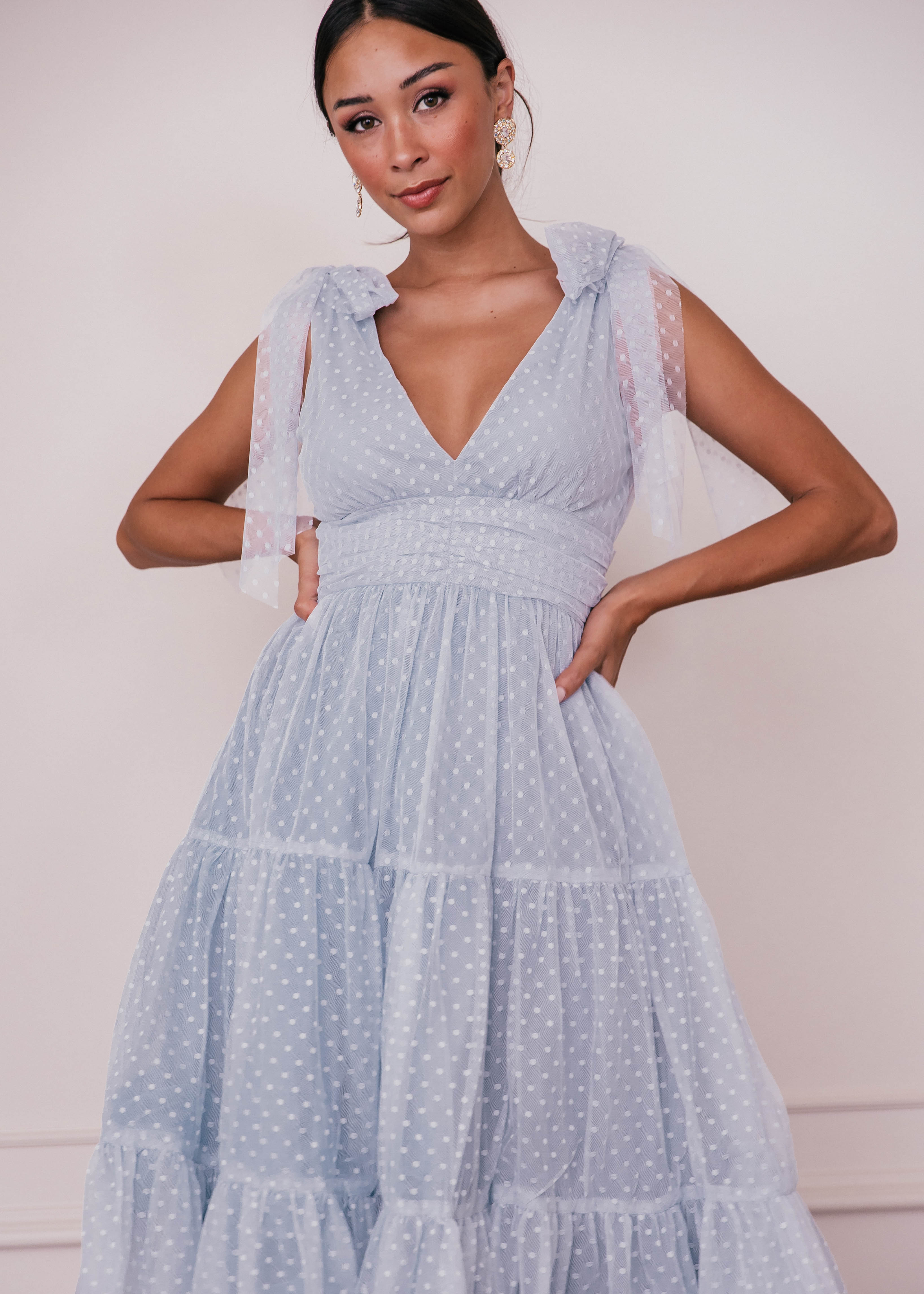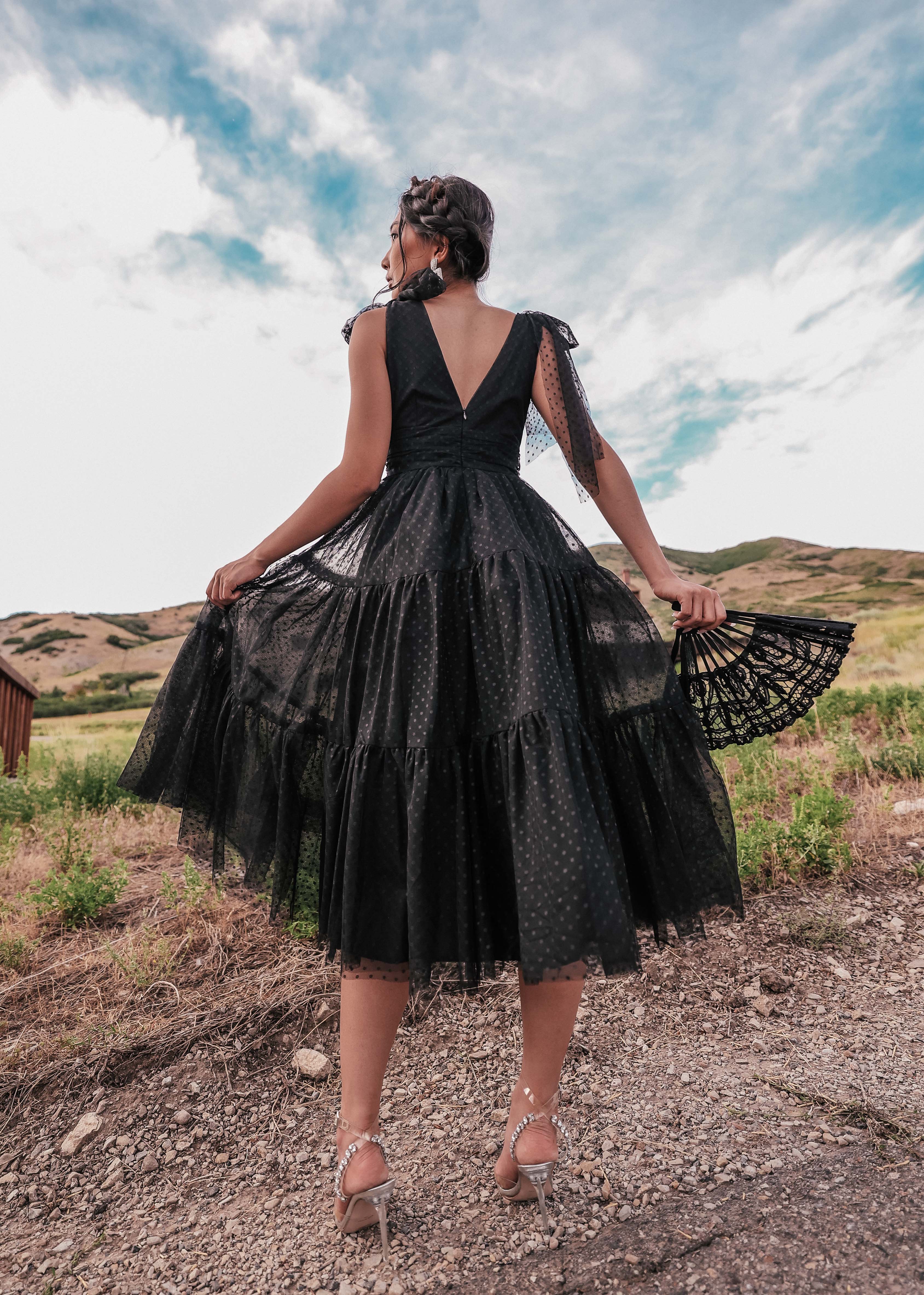 There are dresses, and then there are dresses like this. The Jeanne Dress is a timeless piece that can take you from day to night in an instant. Featuring a swiss dot print, a flattering neckline, and ties on the sleeves, this is a dress designed for the girl who loves to stand out. A slight open back completes the look with feminine charm.