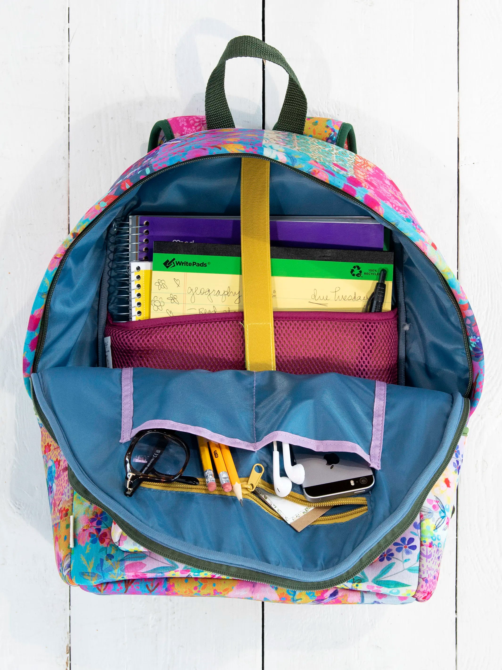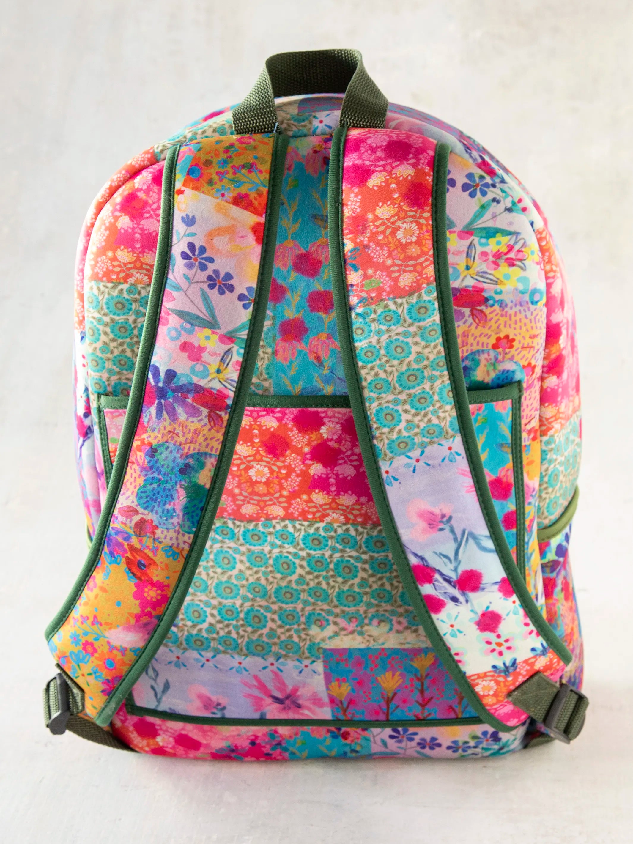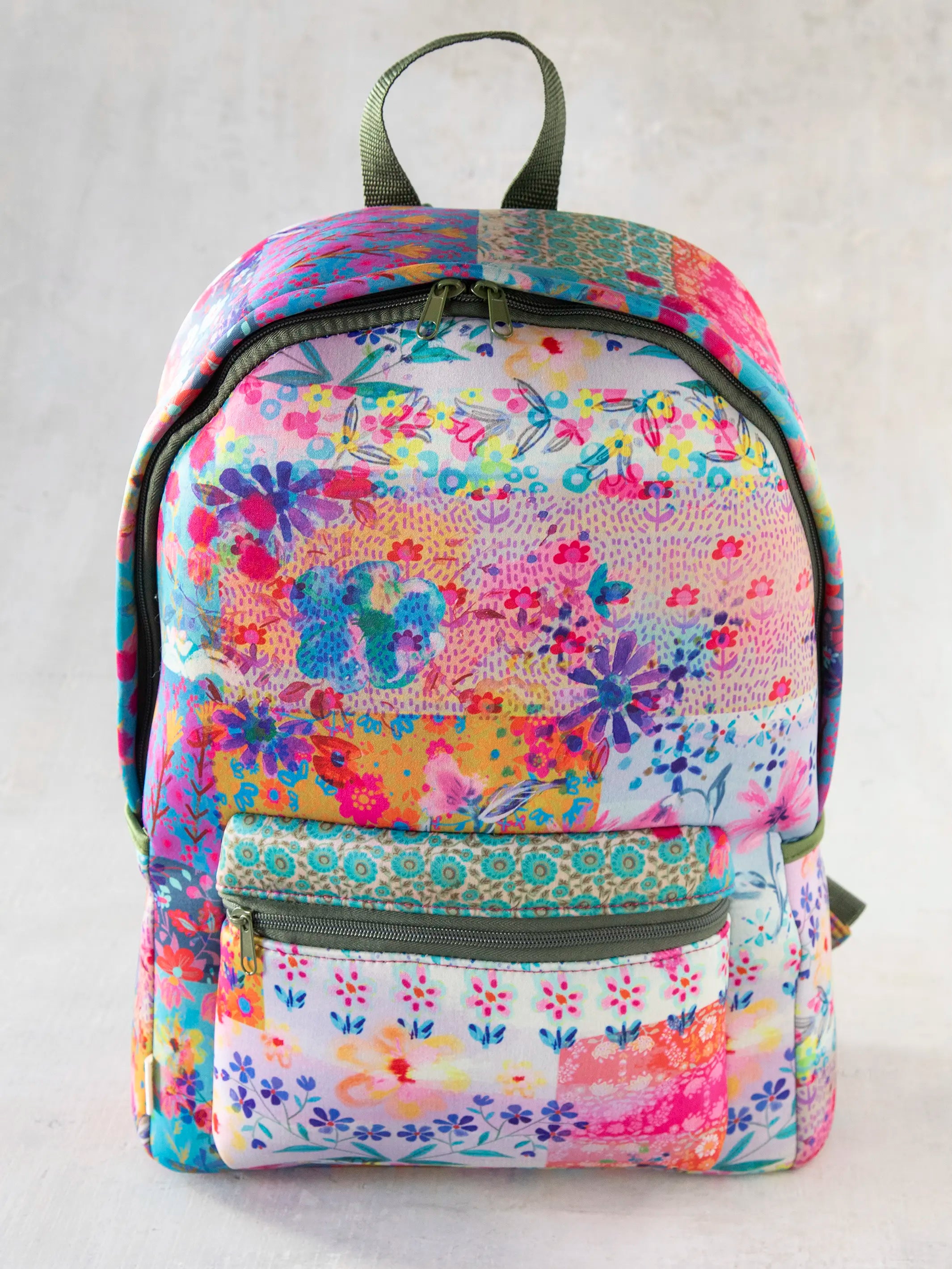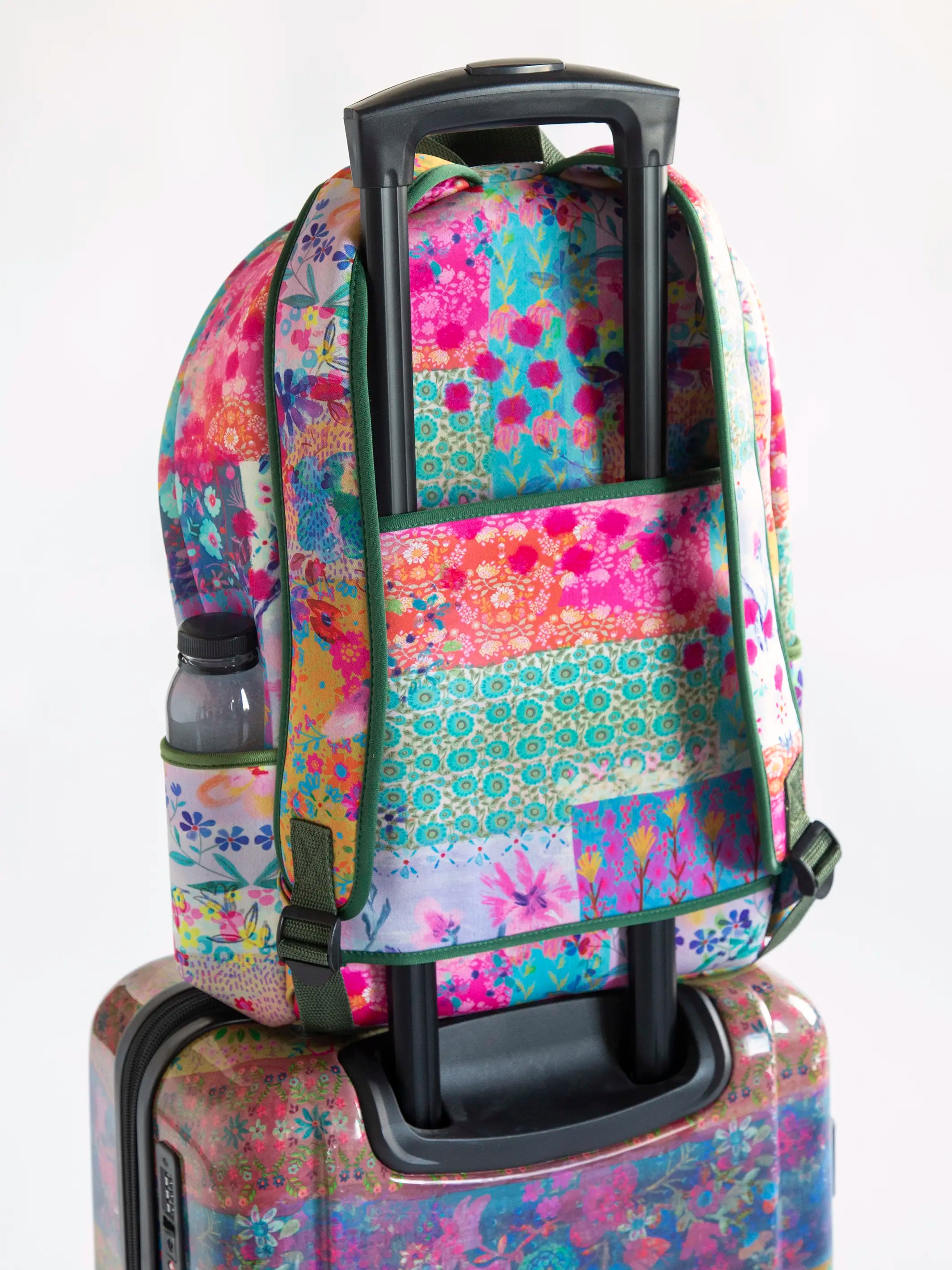 Keep all of your travel essentials (and more) in our Neoprene Backpack! We designed this spacious backpack with plenty of compartments so you can keep everything organized during a flight, train ride or road trip! The exterior has a trolley so you can slip it right over a luggage, two side pockets that are great for holding a water bottle and a front zipper pocket to keep your phone, keys & wallet. The interior has a laptop sleeve with an elastic band to keep it in place, a zipper pocket and two compartments to hold smaller belongings like sunglasses, ear buds, pens and more! The watercolor patchwork-printed, neoprene material is lightweight and durable, plus, we made the adjustable shoulder straps with extra cushion for comfort AND included a top strap as another carrying option. Even when you're not travelling, our Neoprene Backpack is great for everyday use, from holding books and notebooks to a change of clothes after the gym!