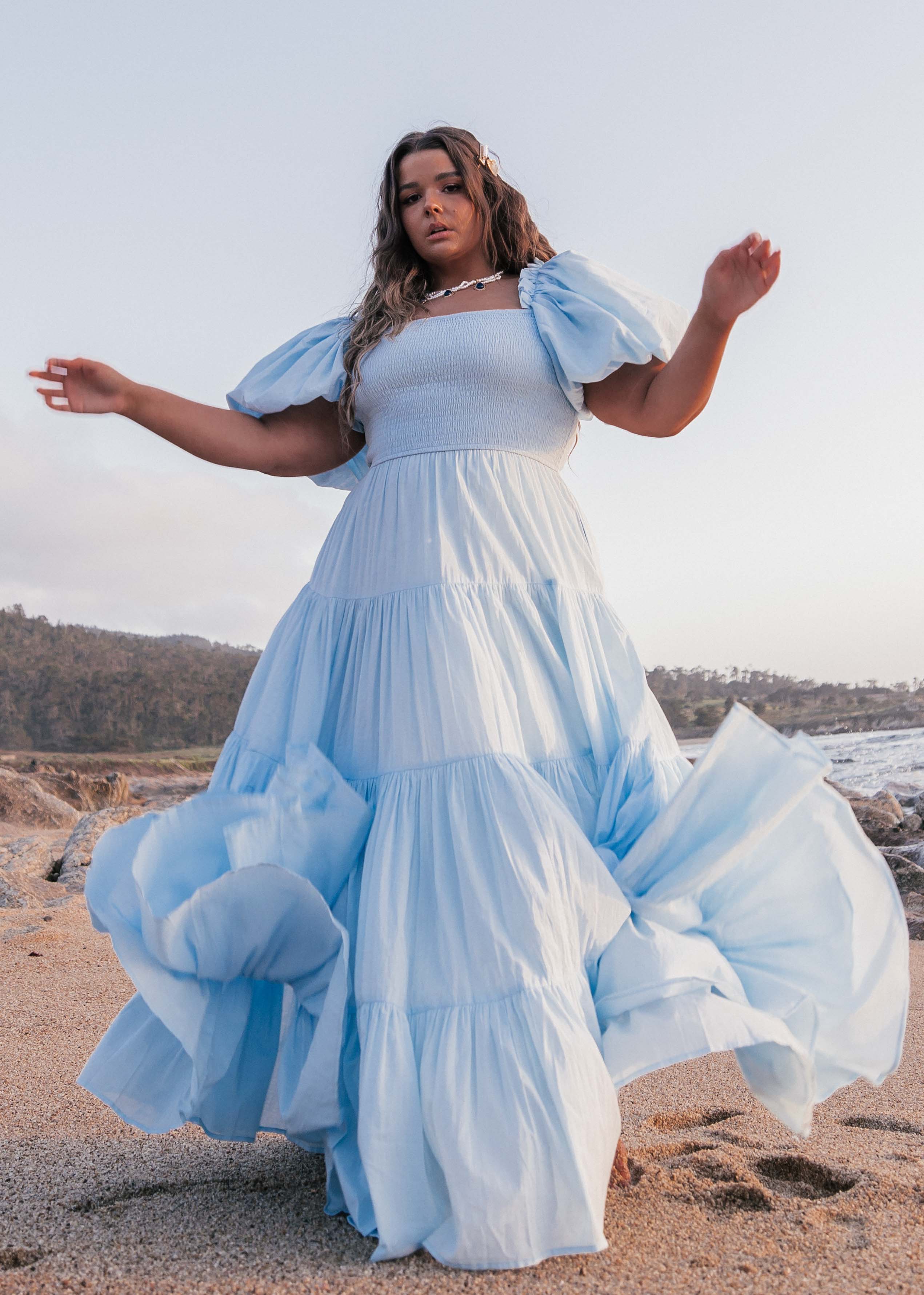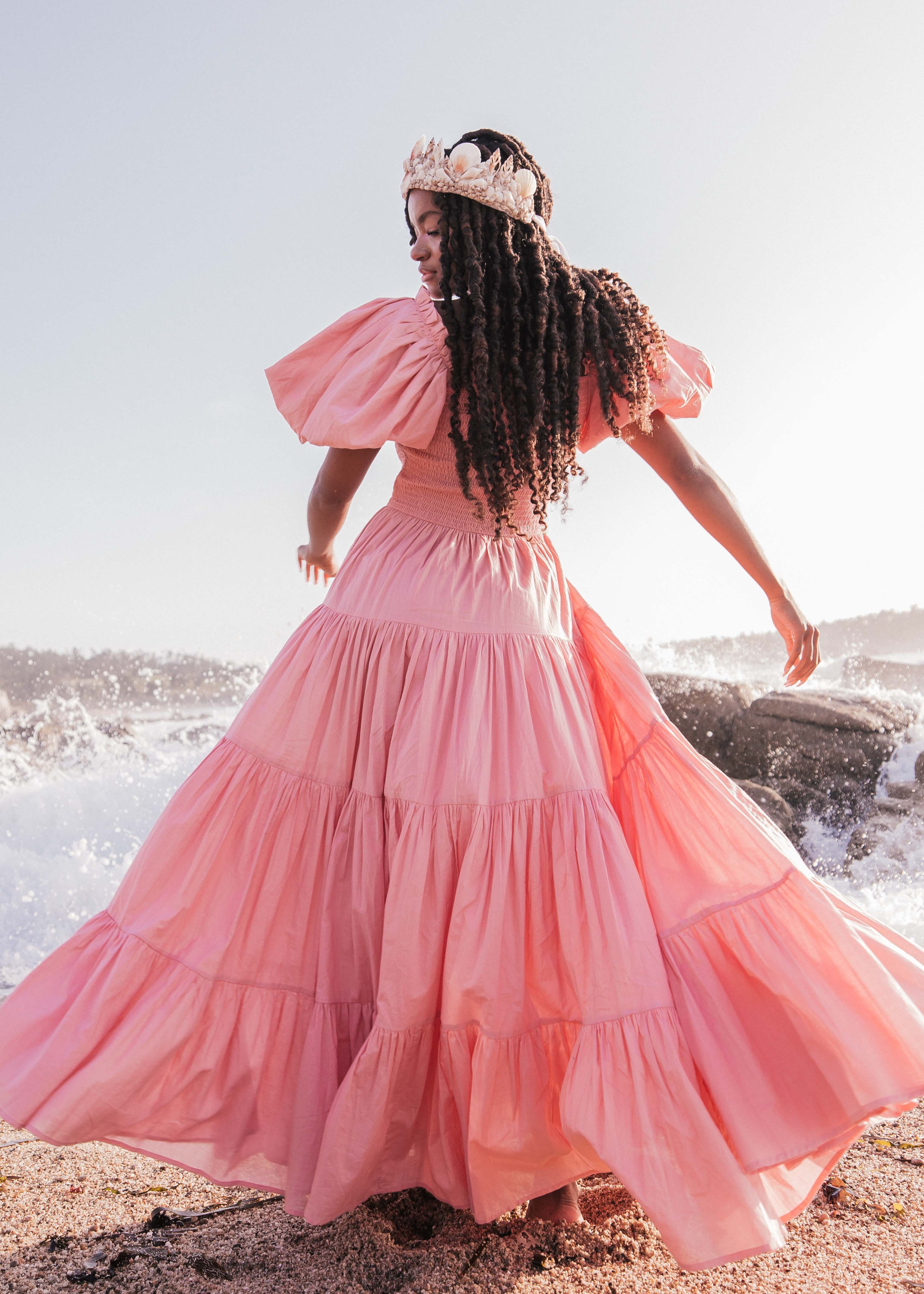 Whether you twirl under the moonlit sky or simply stroll along the shore, you will be an ethereal vision of beauty and confidence in the Luna Dress. See in floral.