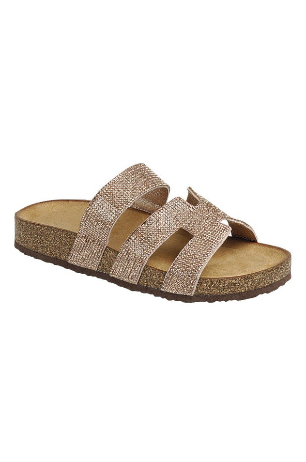 Elevate your style with our Medina slip on sandals, embellished with rhinestone straps for a touch of sparkle. The open round toe and lightly padded insole provide comfort for all-day wear. These sandals have a low heel height of 1" and easily slip on for convenience. Perfect for any occasion, true to size.