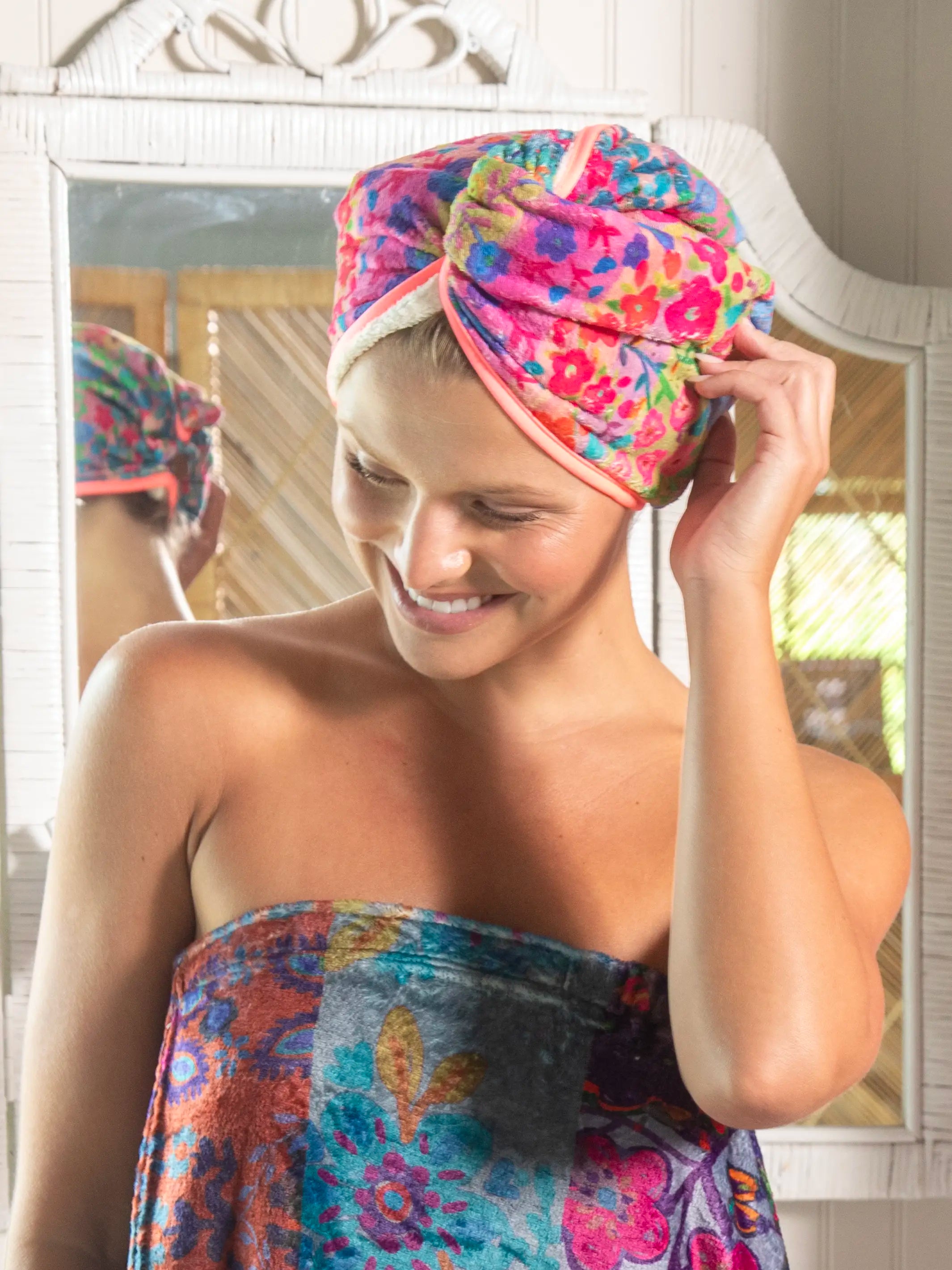 Microfiber Hair Towel Wrap - Rainbow Floral Rows