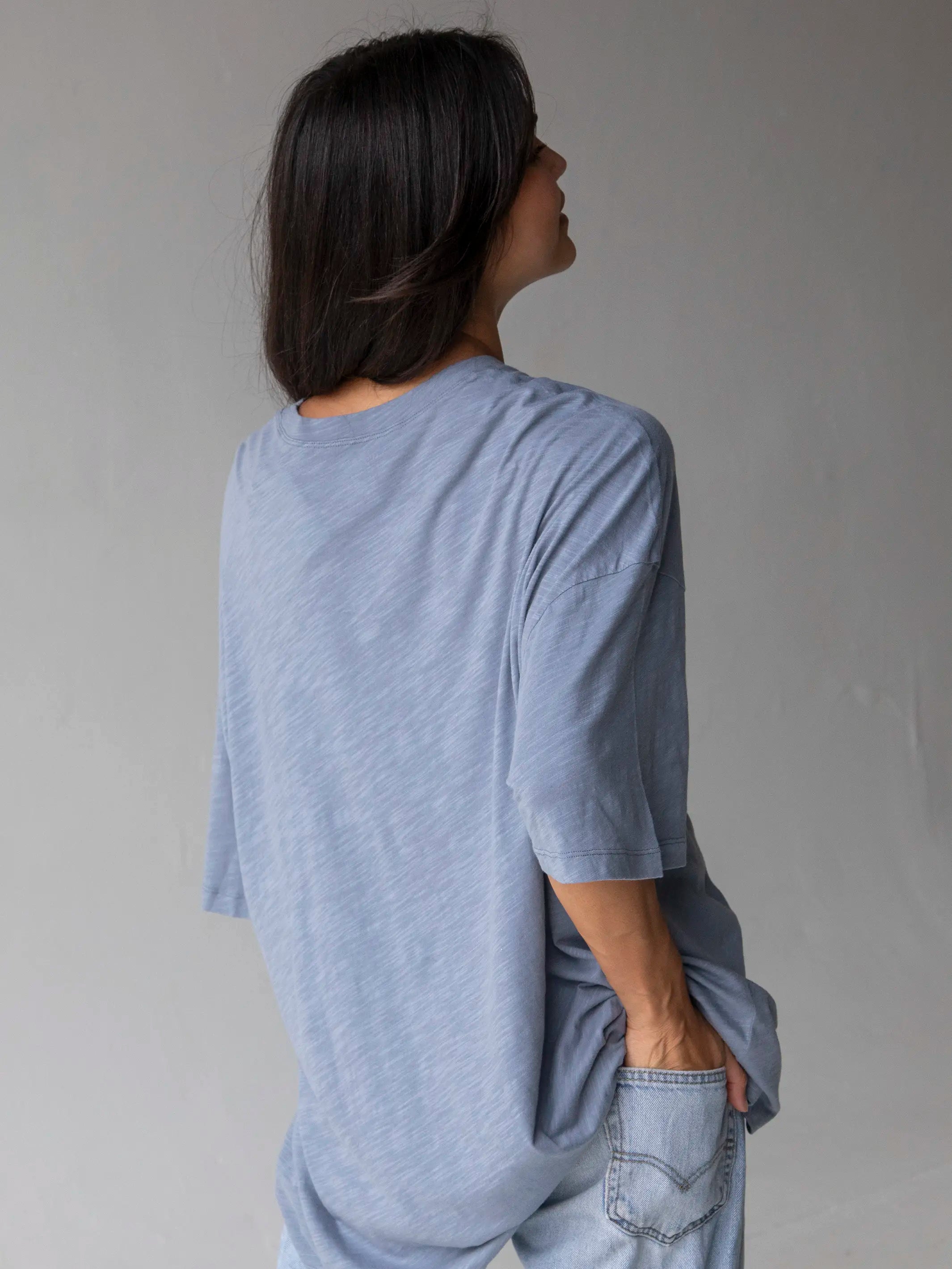 Oversized Cotton Applique Tee - Dusty Blue Love