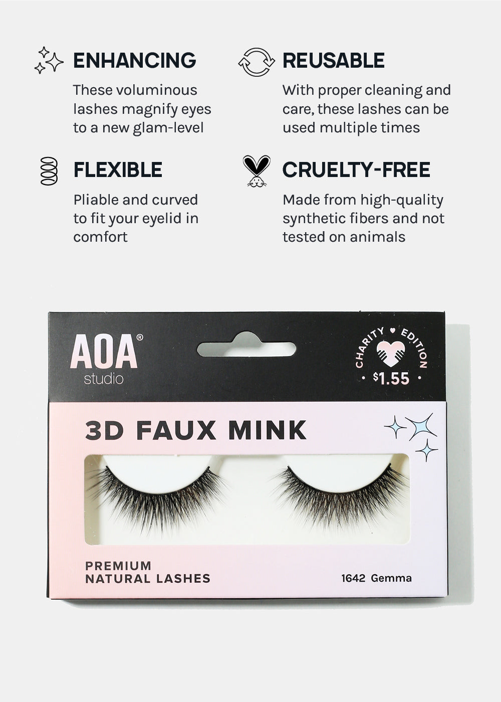 These lashes are vegan, cruelty-free, and made from synthetic fibers. The band is thicker, therefore can be reused multiple times with proper care and cleaning!