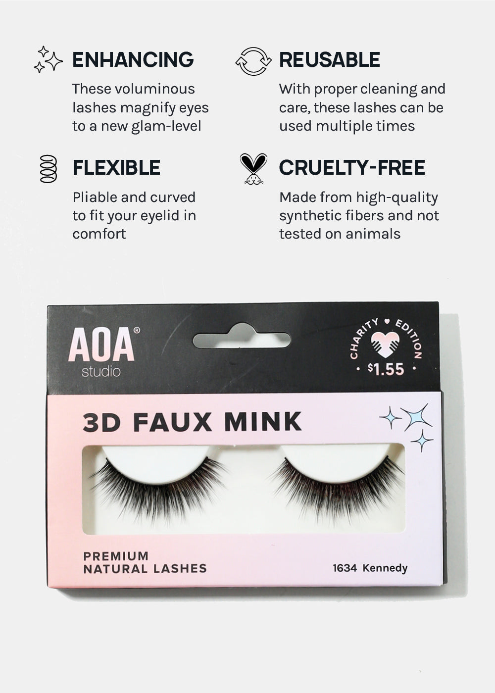 These lashes are vegan, cruelty-free, and made from synthetic fibers. The band is thicker, therefore can be reused multiple times with proper care and cleaning!