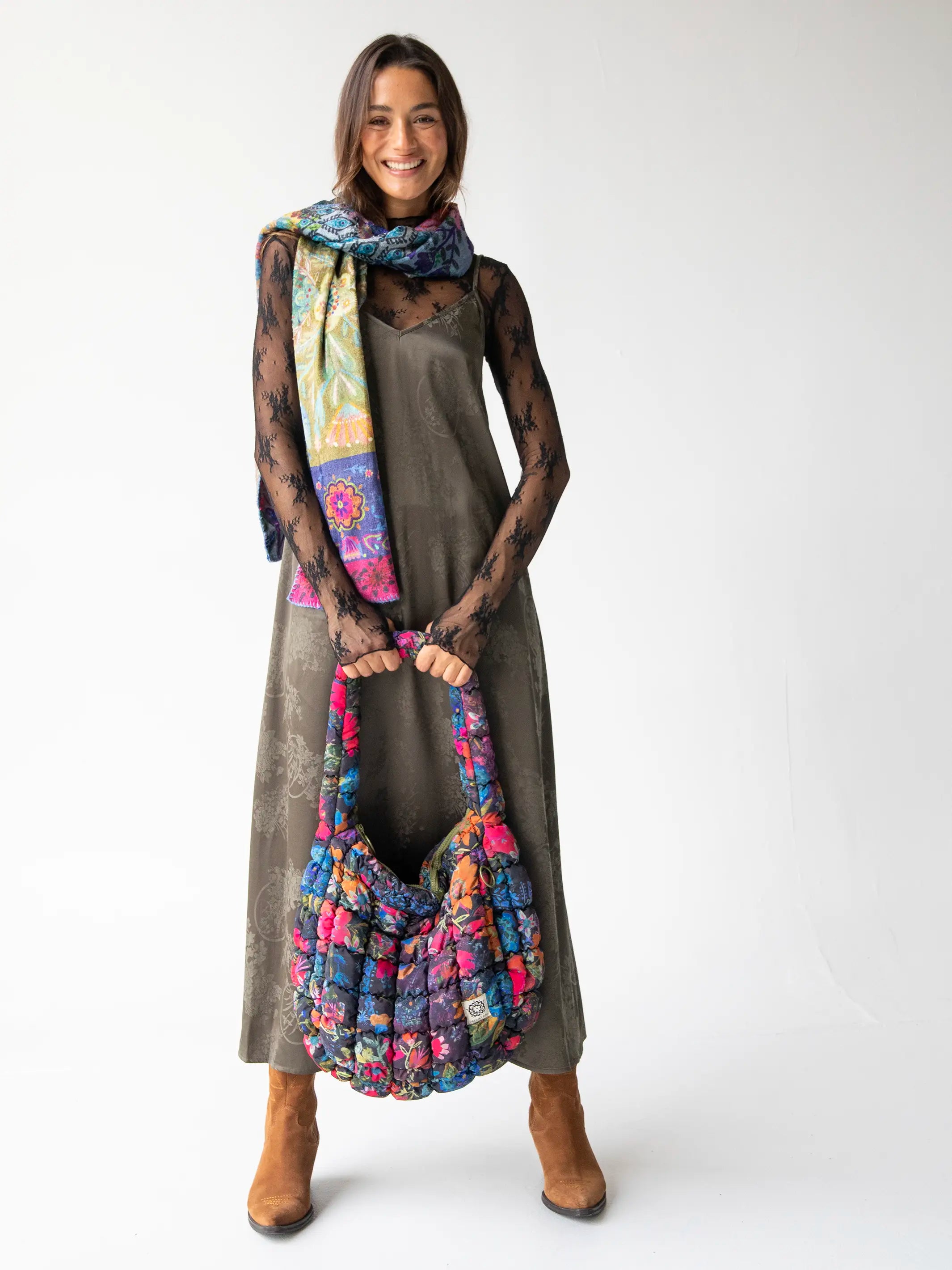 Literally holds EVERYTHING! The perfect everyday bag! Love the soft, puffy fabric!