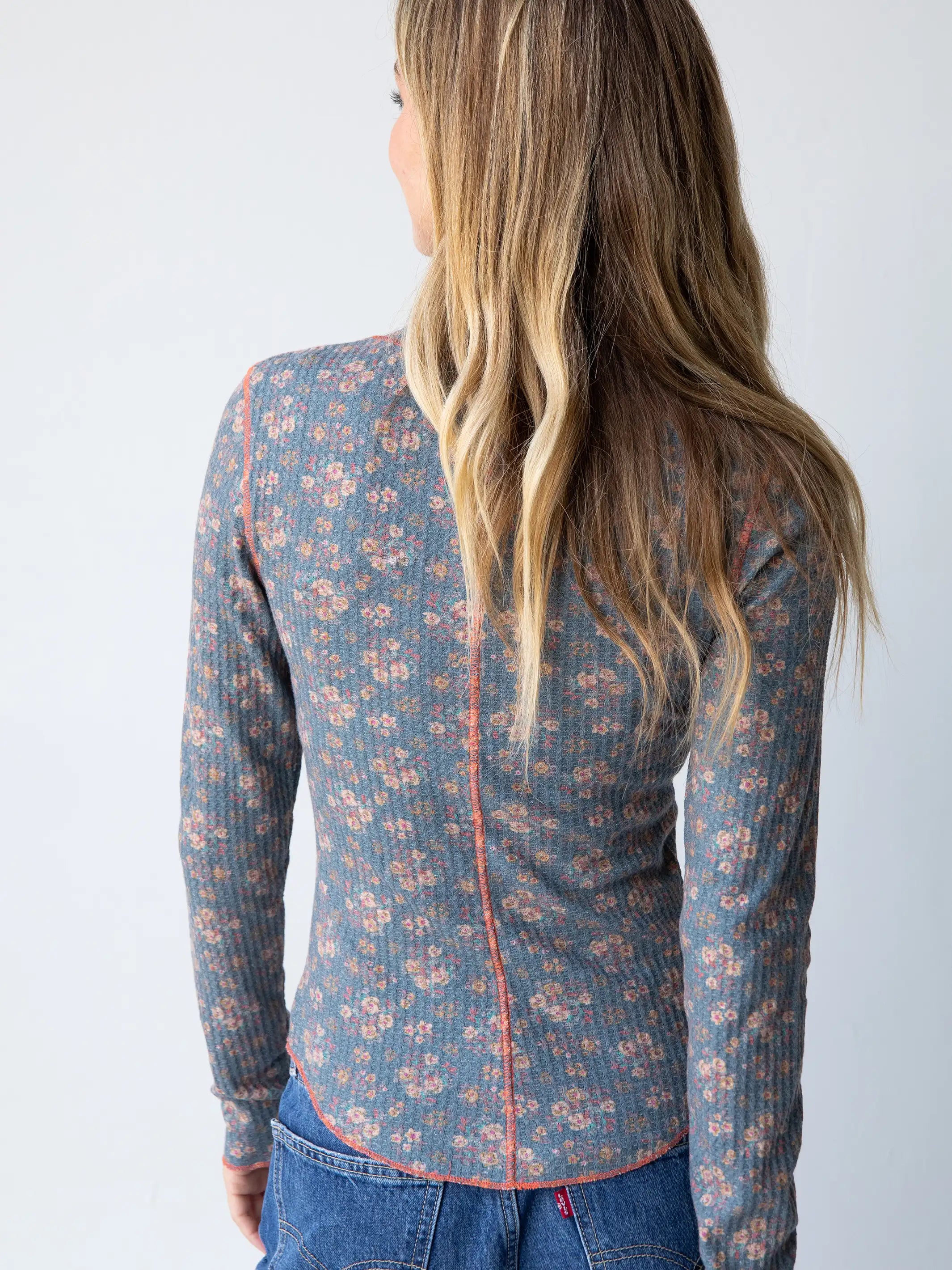 Reagan Thermal Henley - Slate Floral Blooms