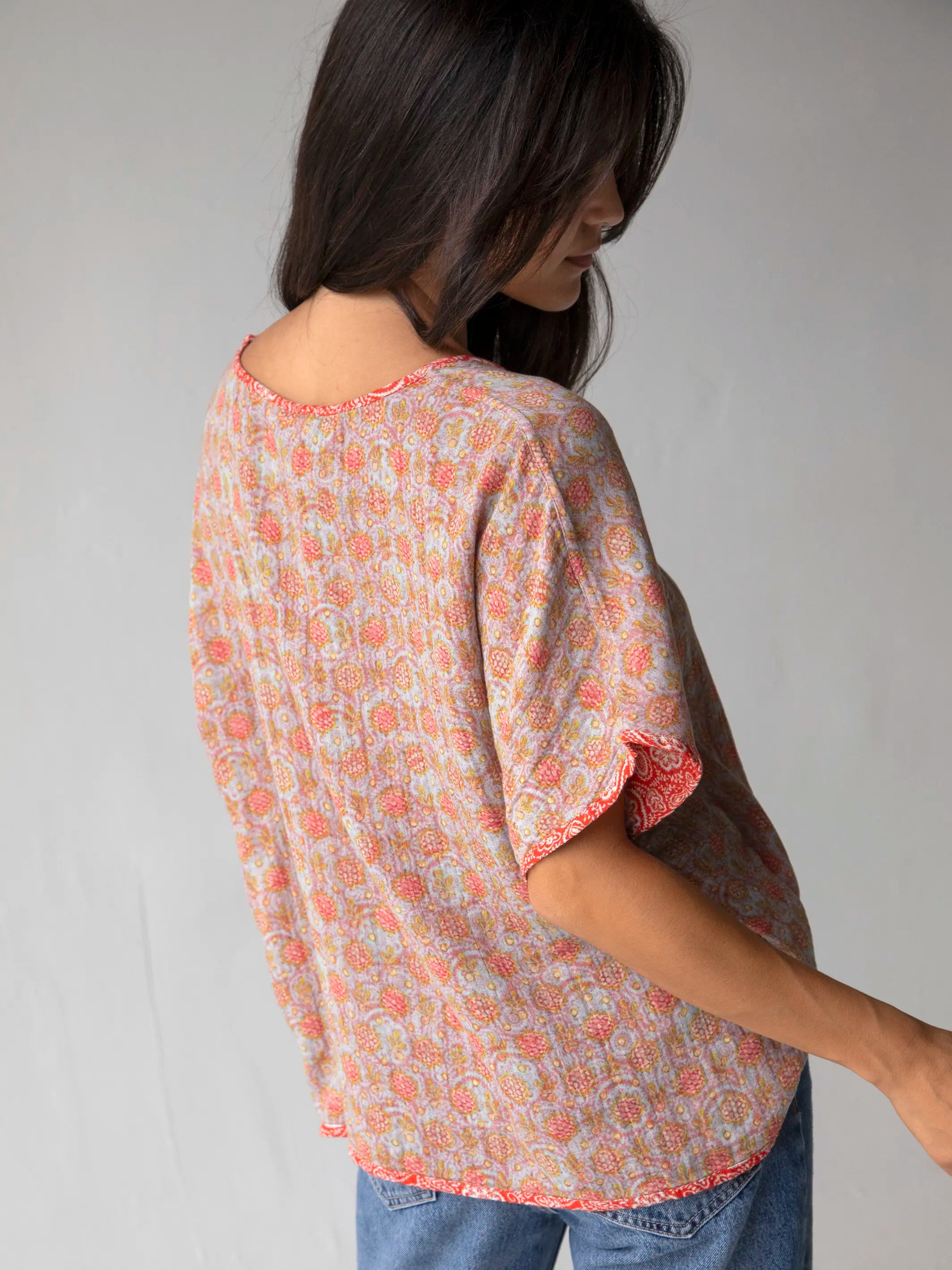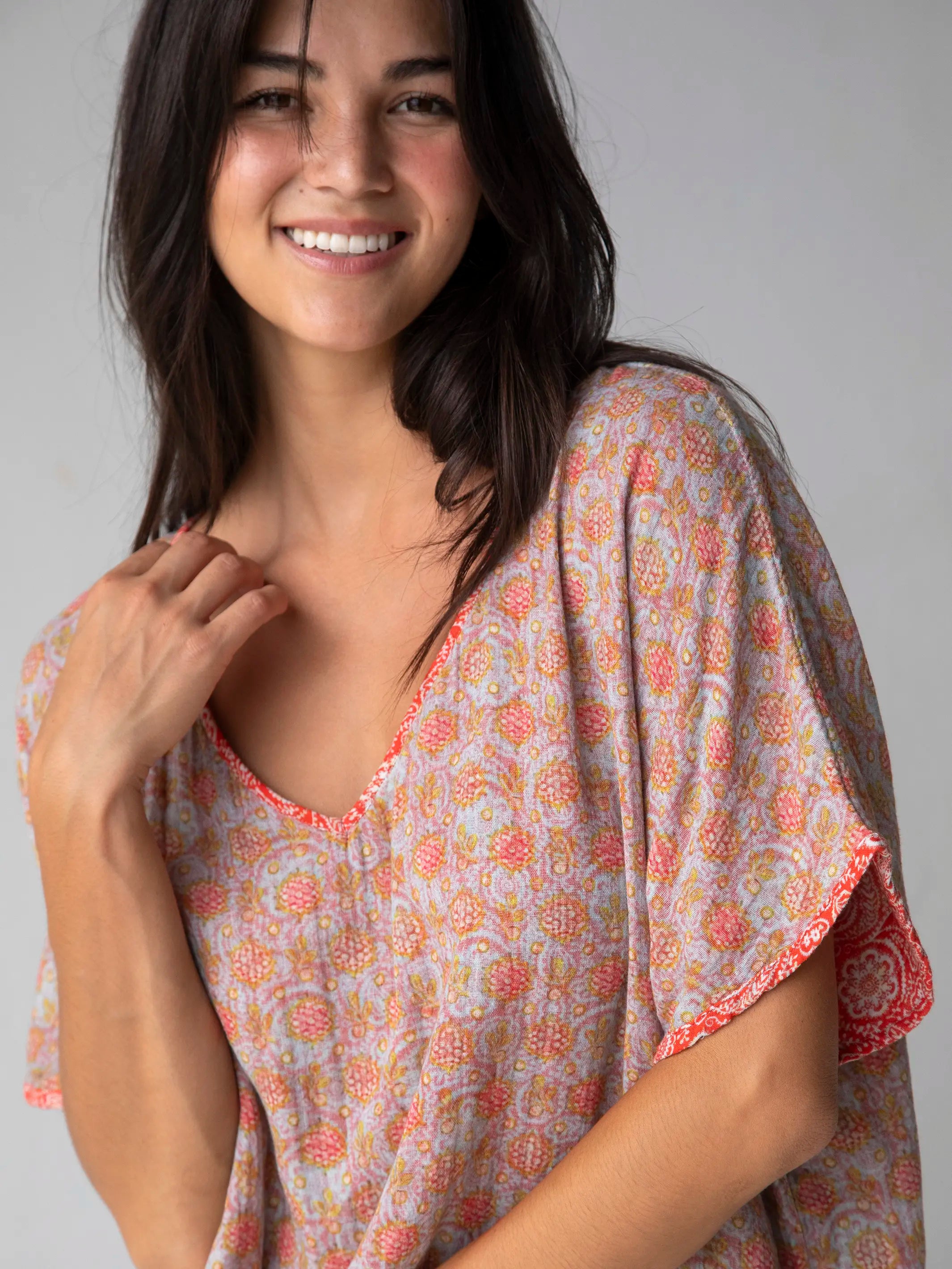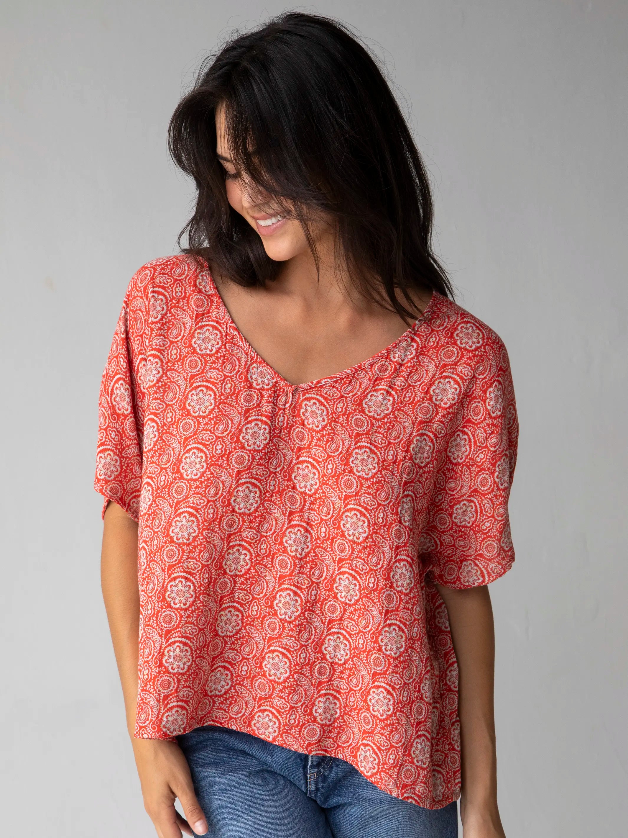 The unique all-over print and flattering fit make this top so EASY to dress up or down!