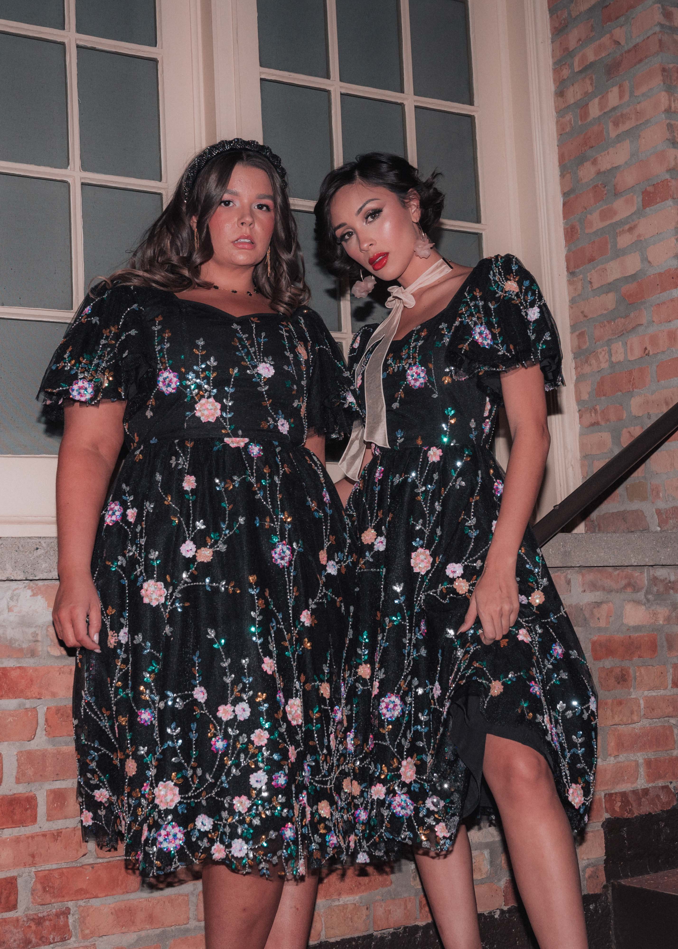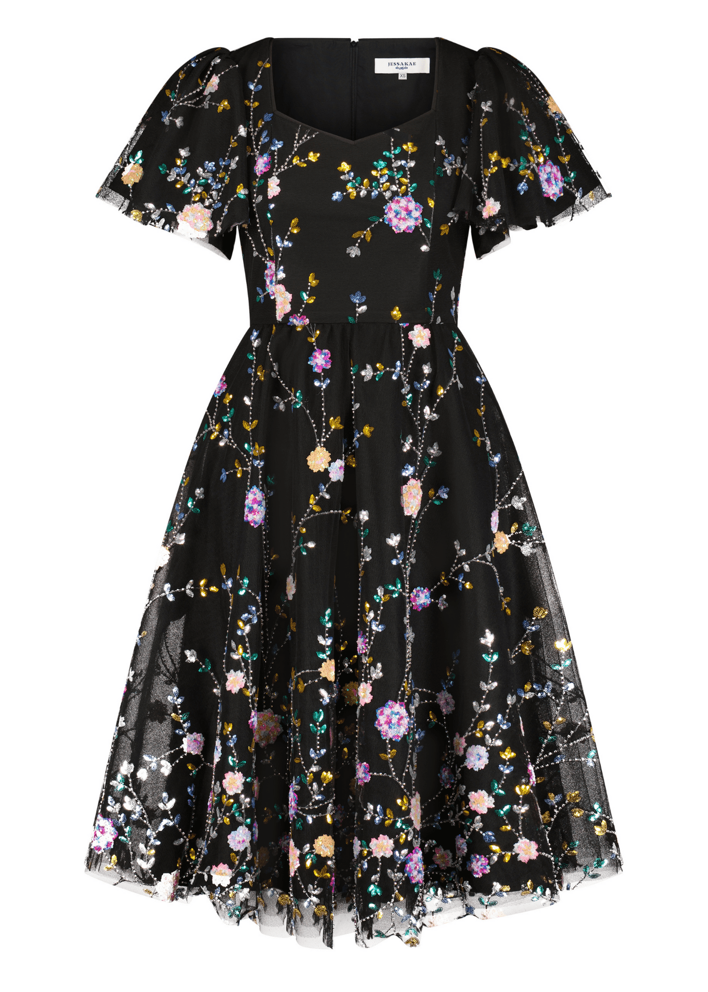 Adorned with delicate sequin floral patterns, our Shimmer Dress brings a touch of nature's beauty to your attire. The intricate detailing adds a touch of romance and whimsy to your look, making it perfect for weddings, garden parties, or any occasion where you want to radiate charm.