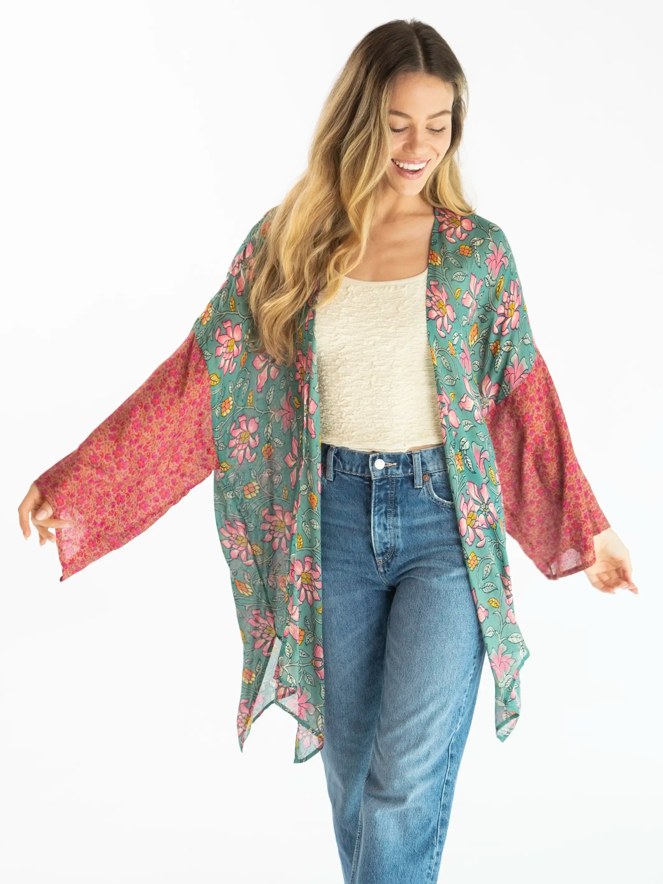 Sierra Mixed Print Kimono - Pink Lilies Mix Floral